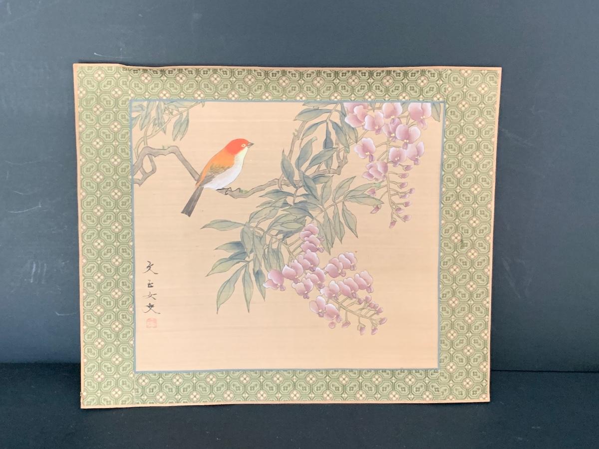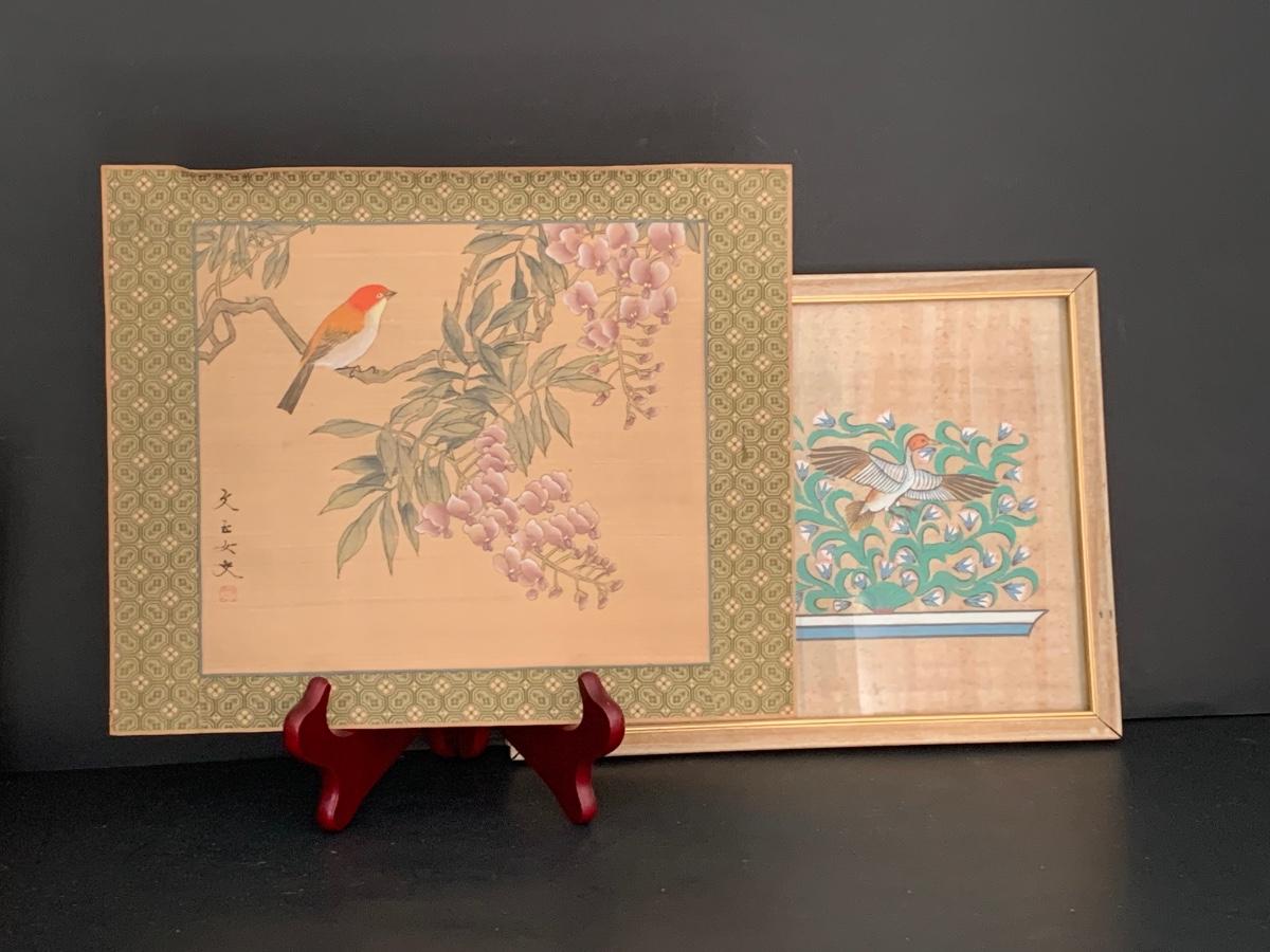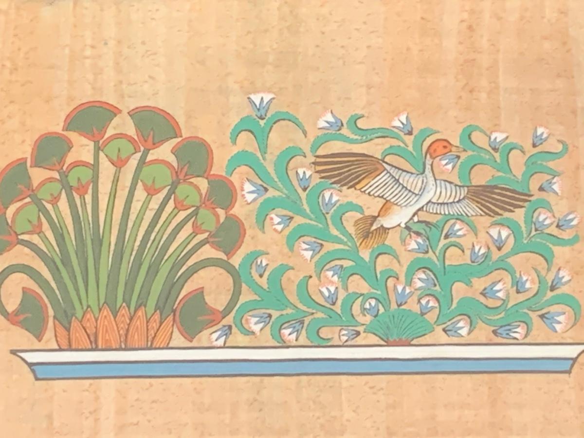 LOT 23: Certified Papyrus Paper Painting & Bird in Tree Painting