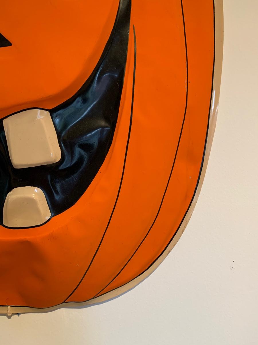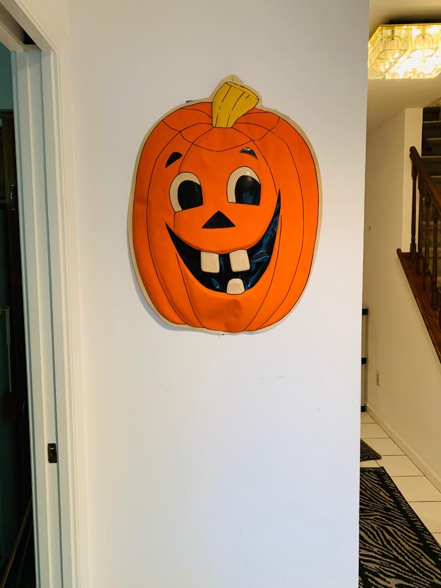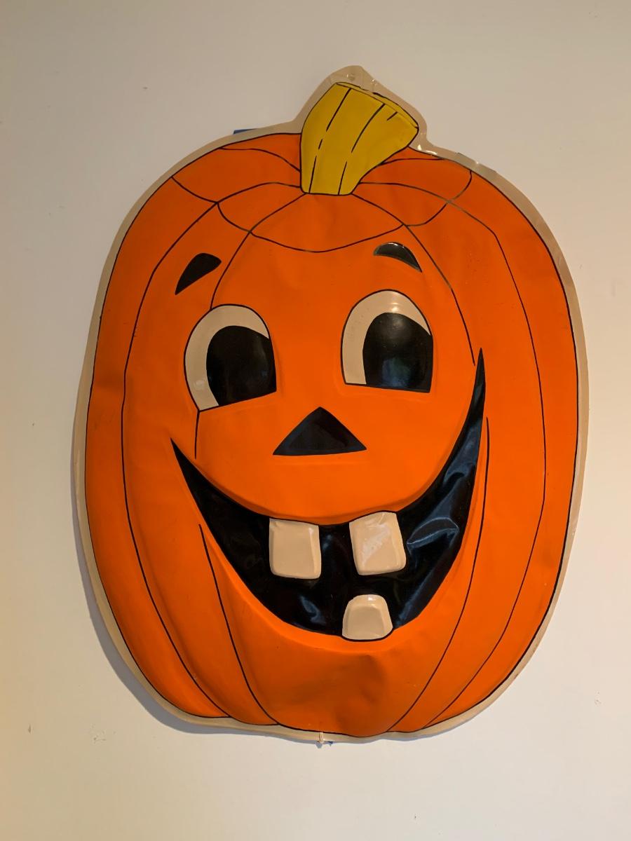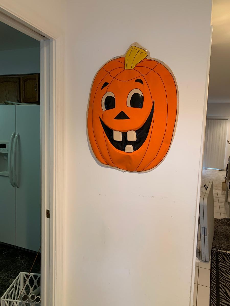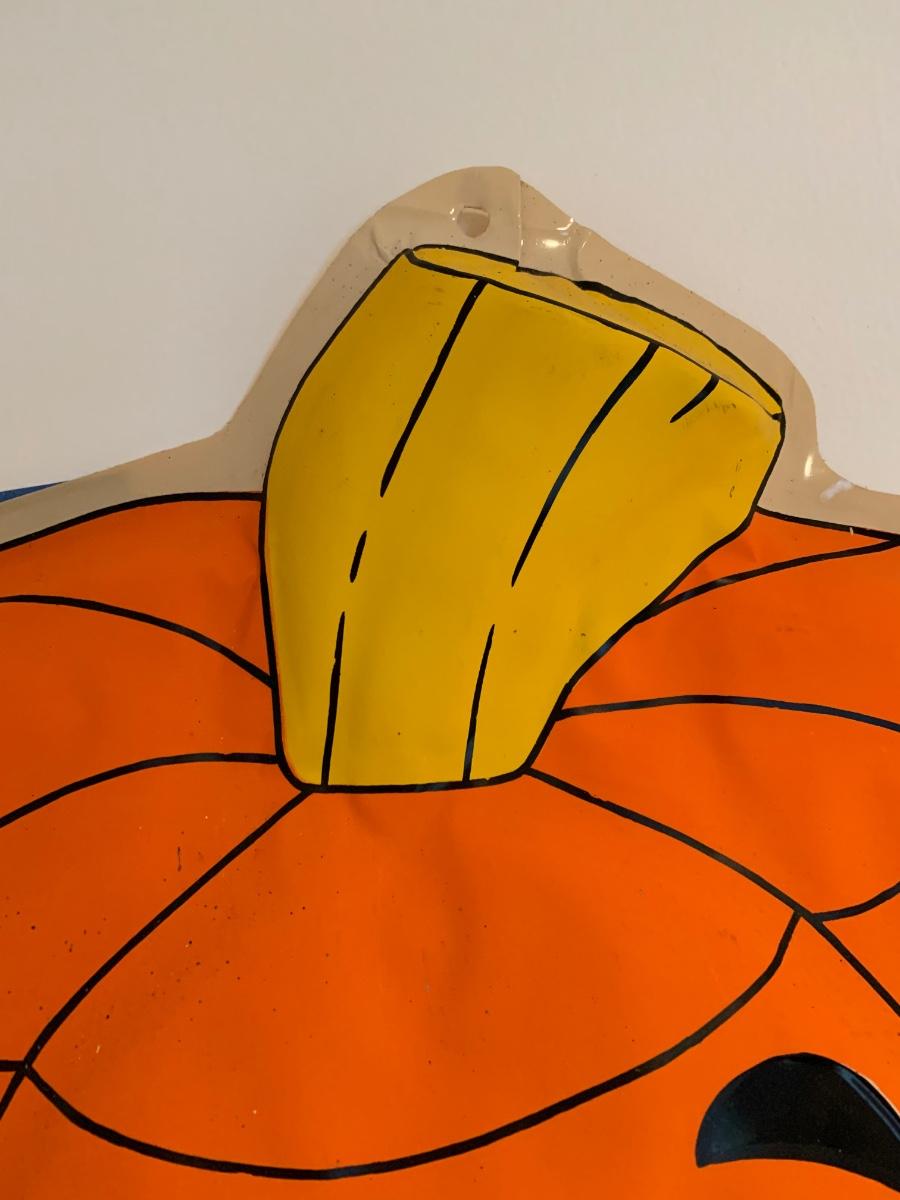 LOT 26R: Vintage Halloween Decoration - Plastic Jack O' Lantern Wall Hanging - 22" x 29"