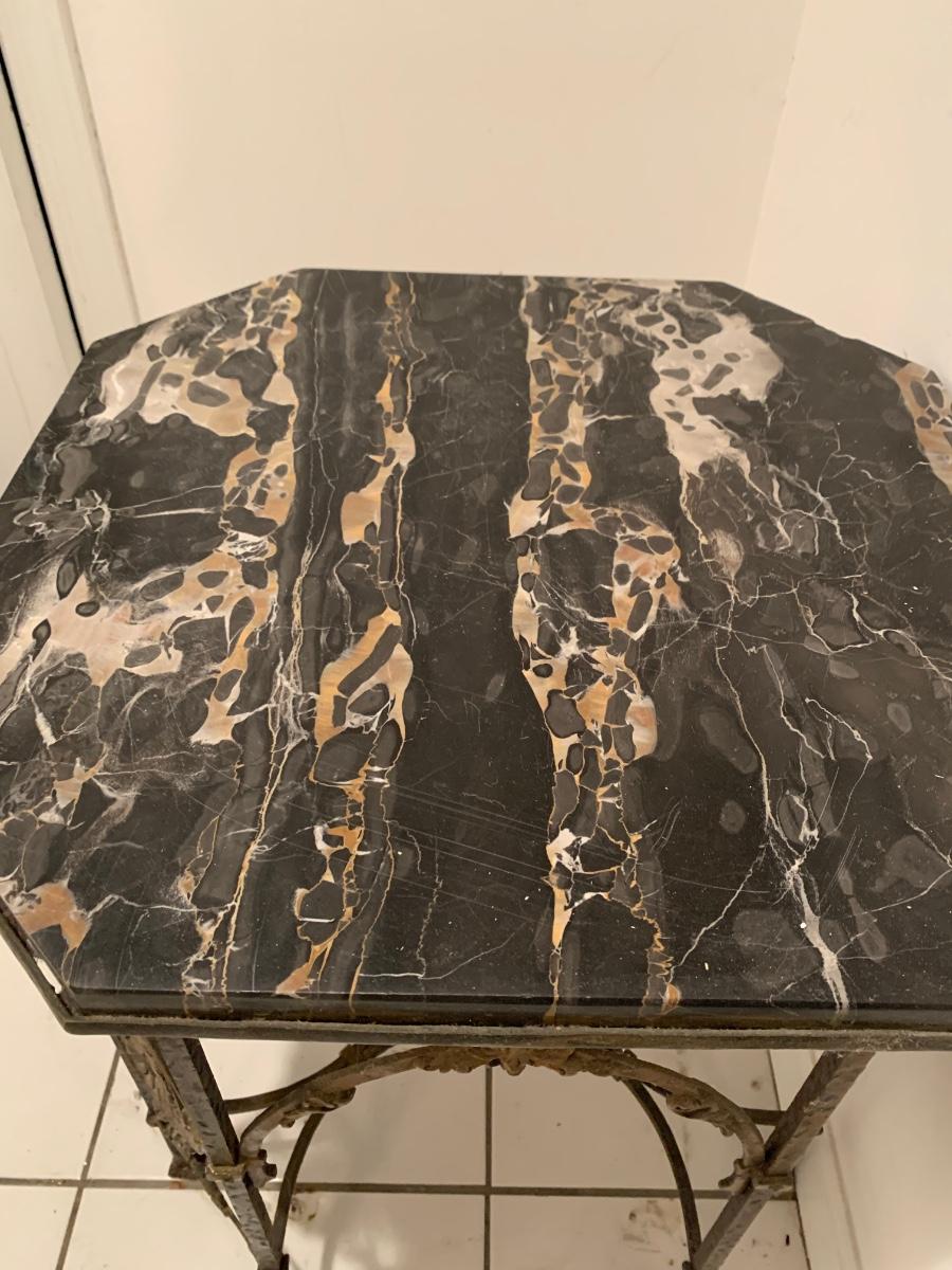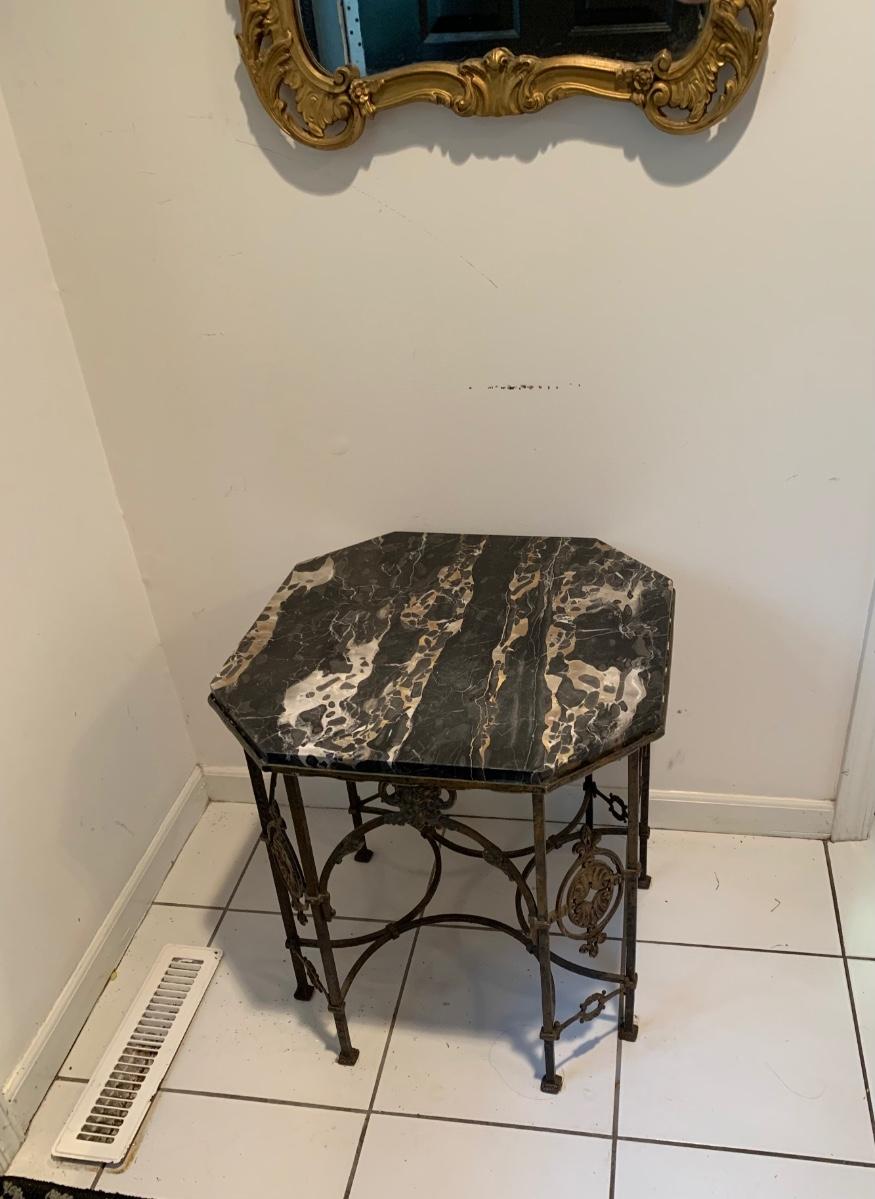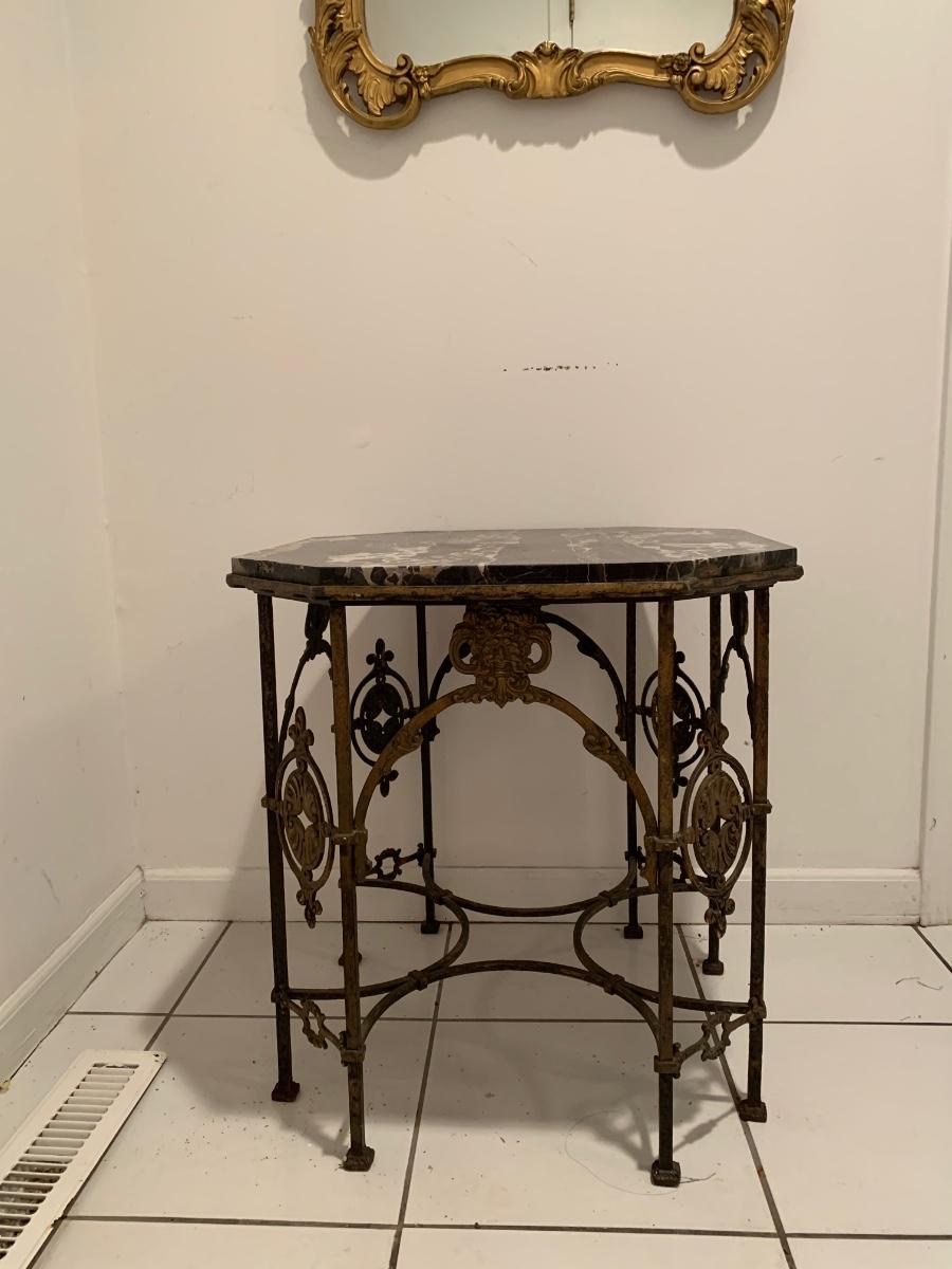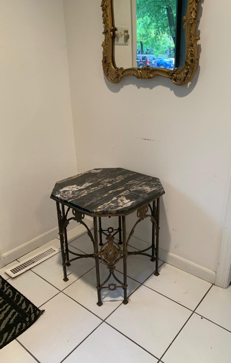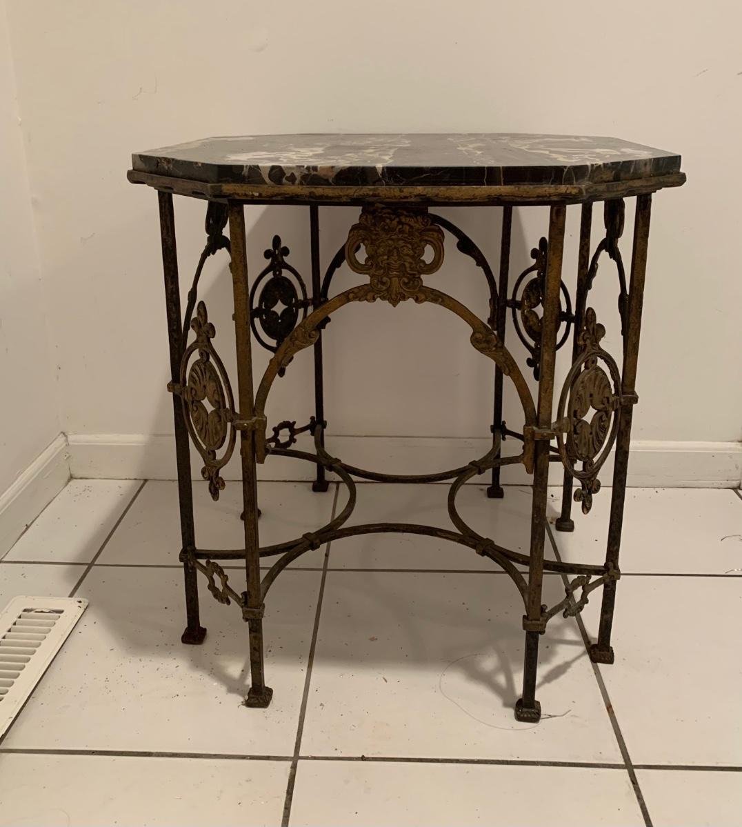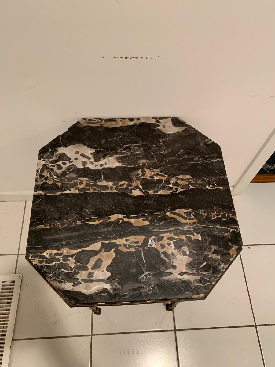 LOT 28R: Marble & Cast Iron Accent Table - 20" X 20" x 20" High