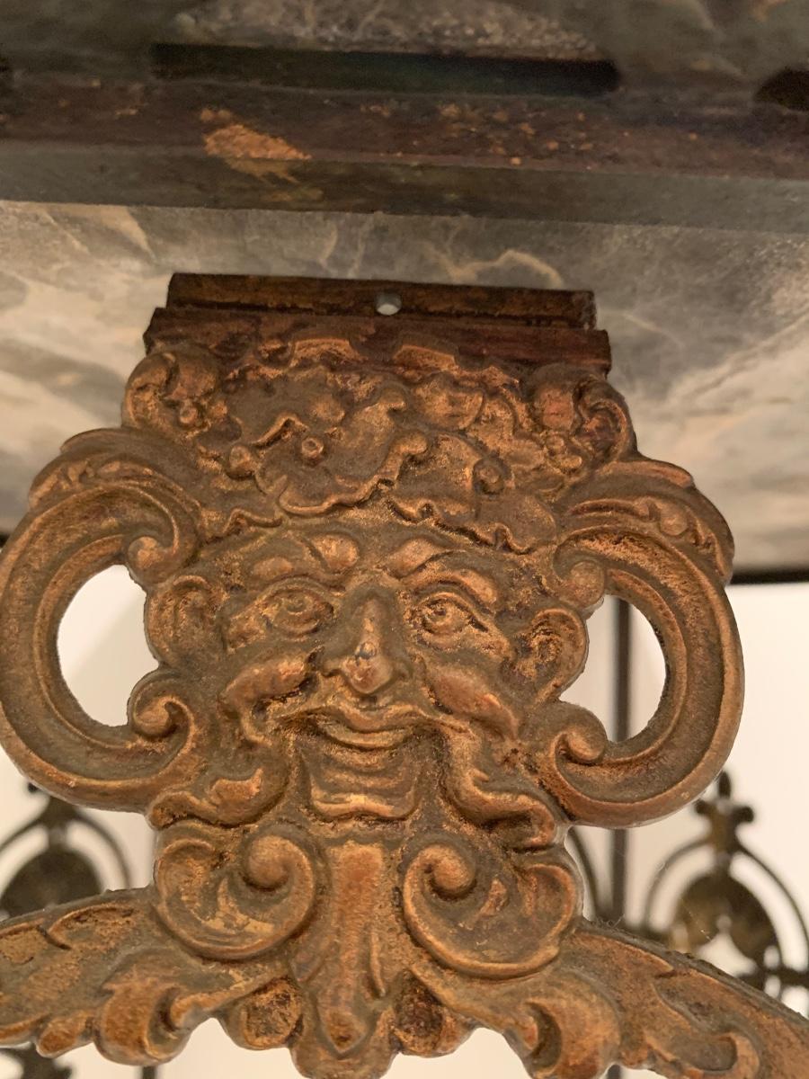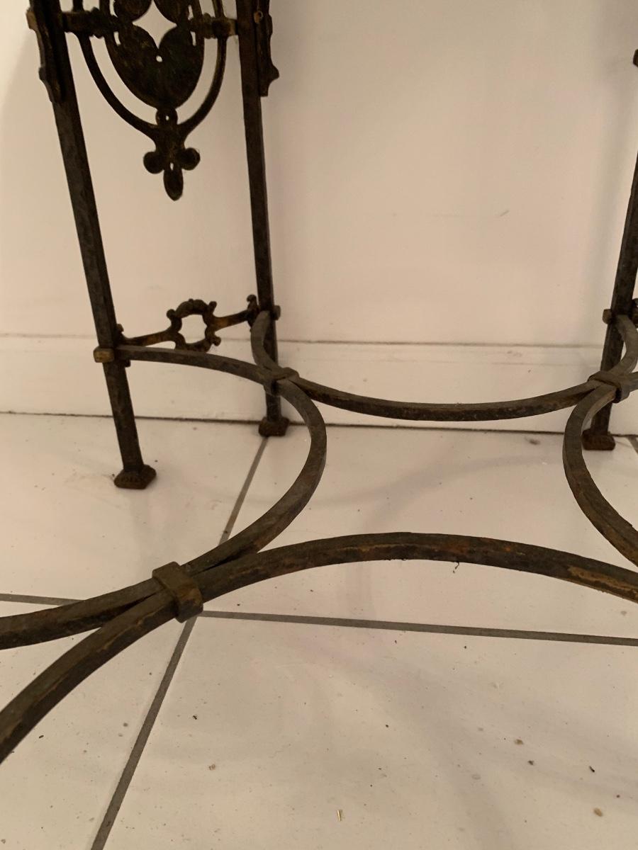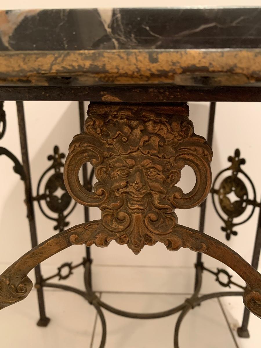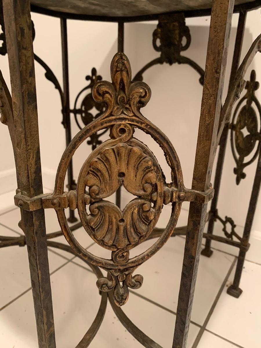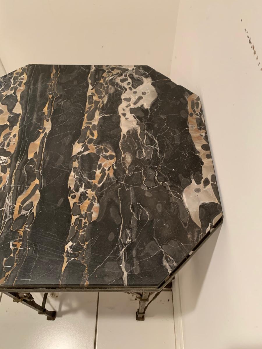 LOT 28R: Marble & Cast Iron Accent Table - 20" X 20" x 20" High