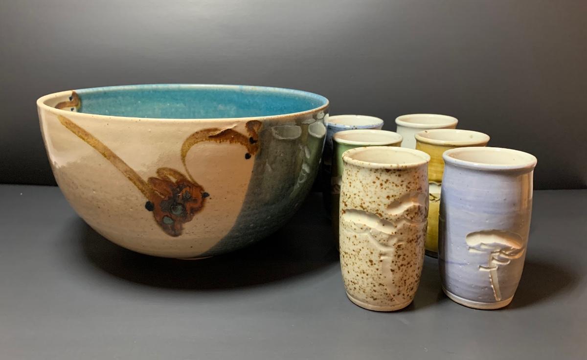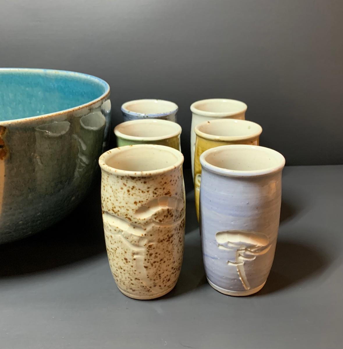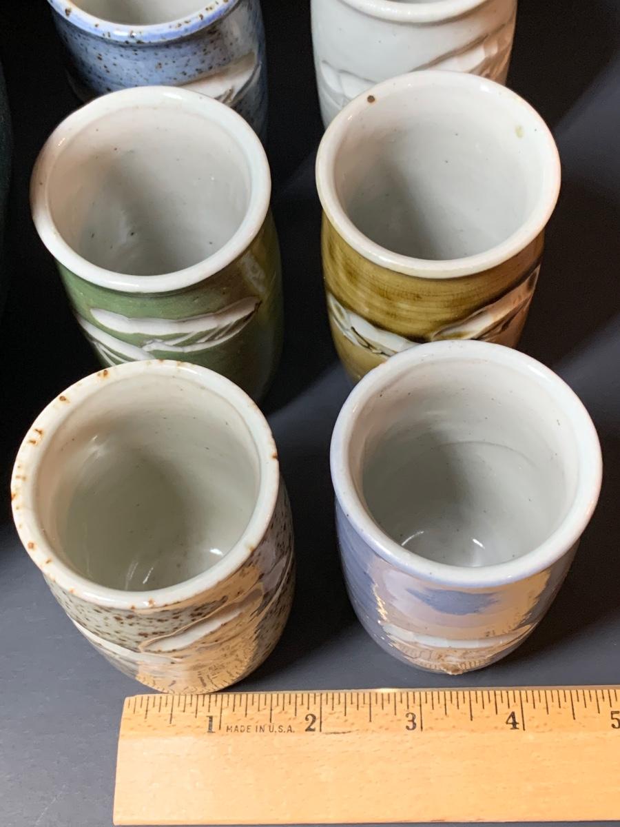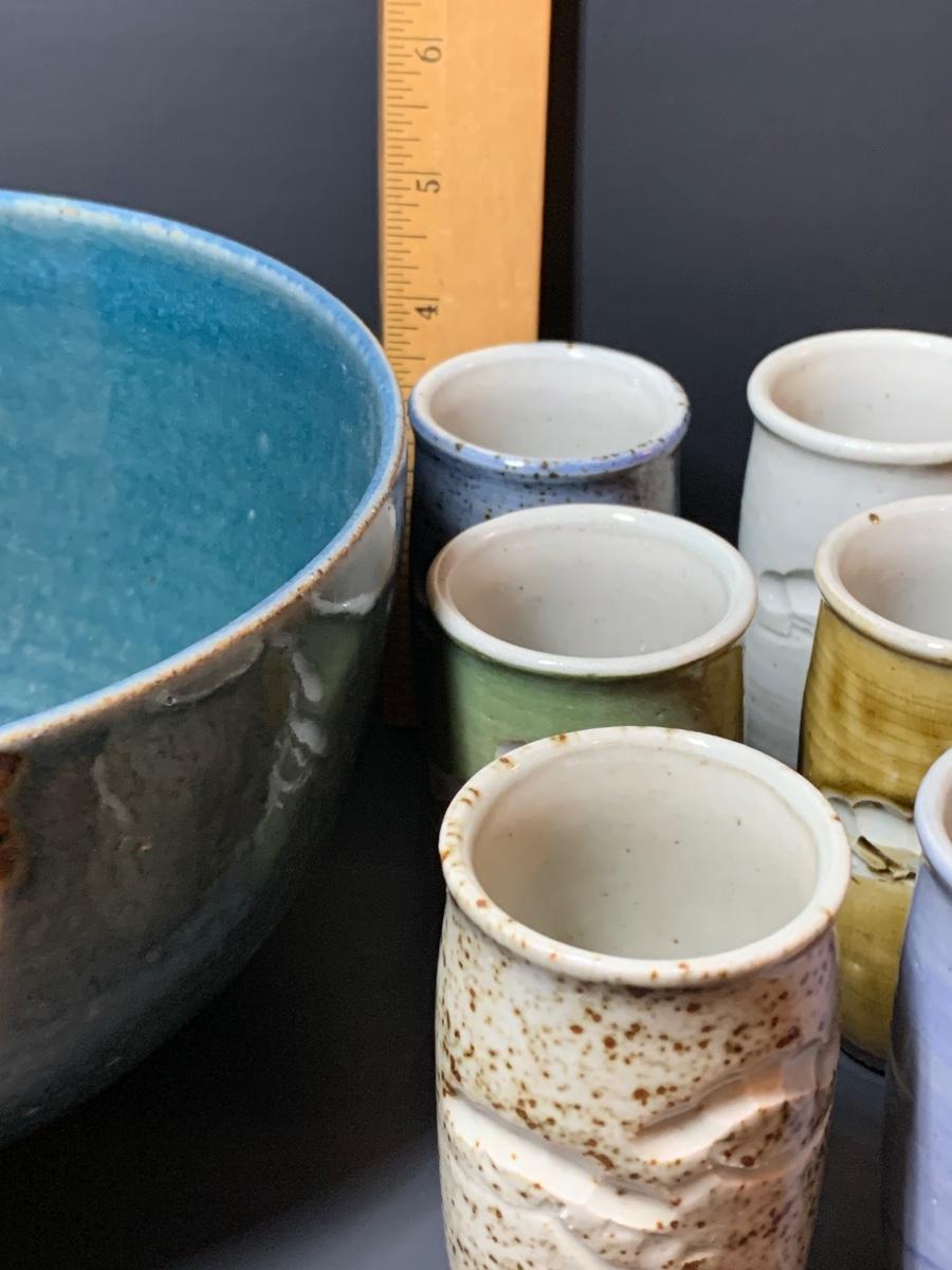 LOT 29R: Collection of 6 Pottery Cup along with a Signed Pottery Bowl