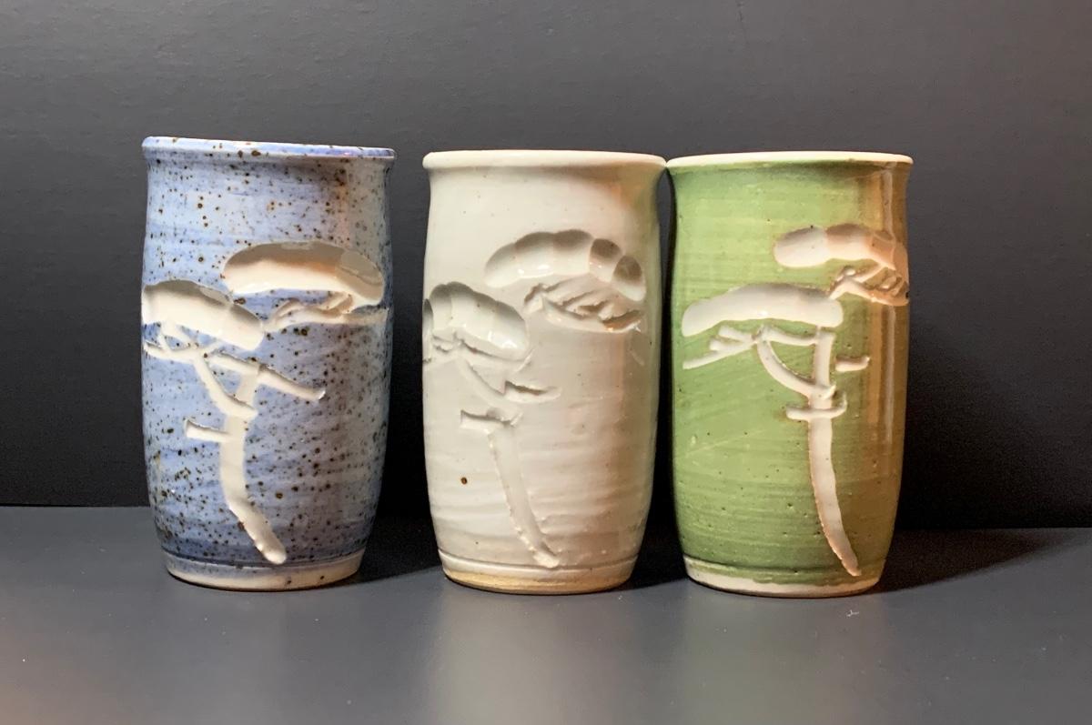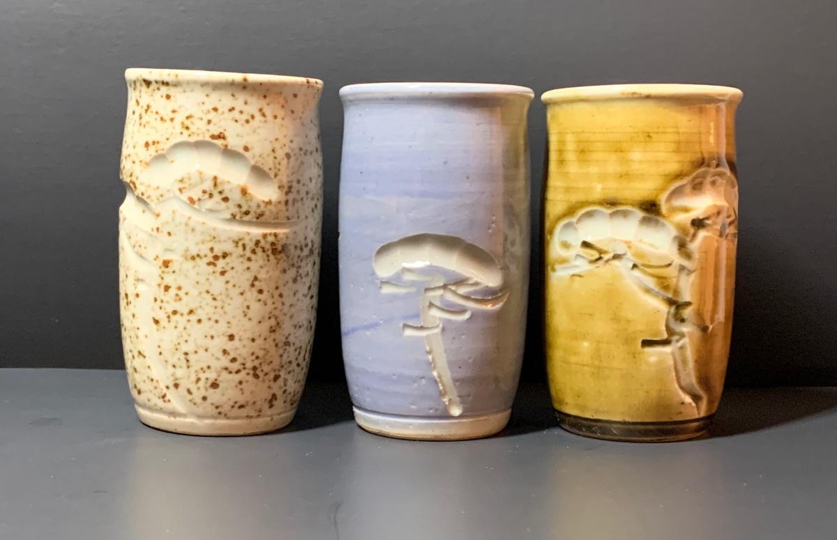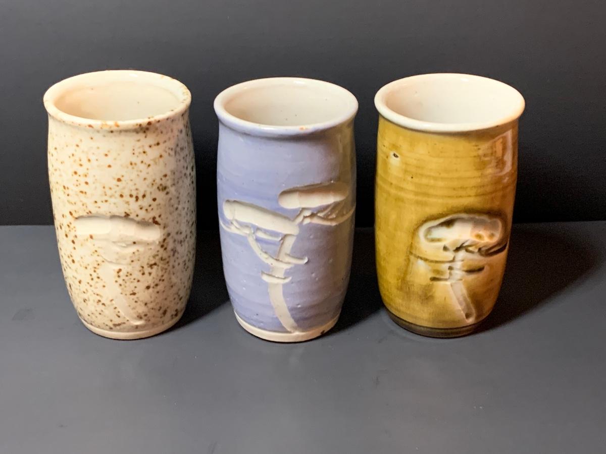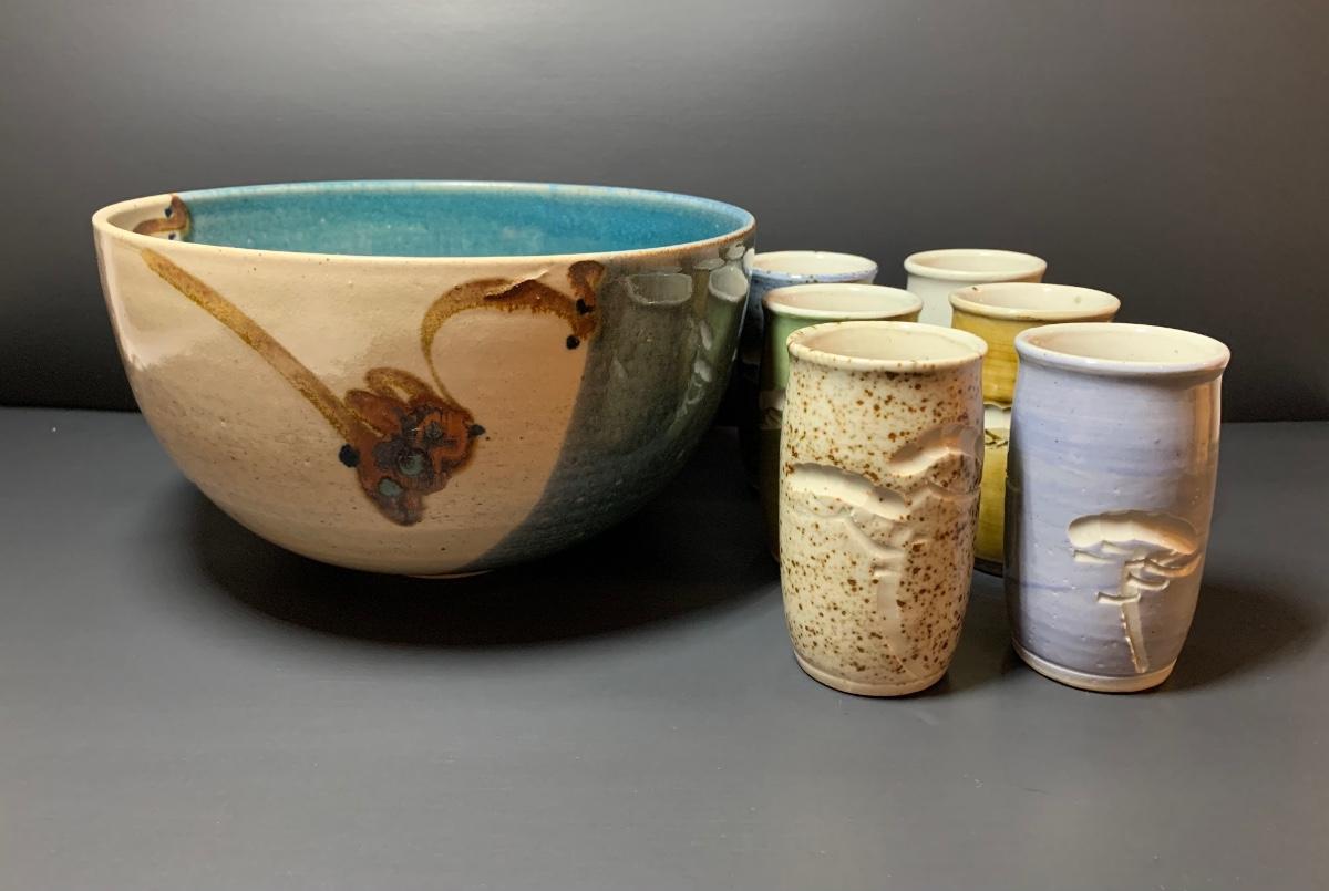 LOT 29R: Collection of 6 Pottery Cup along with a Signed Pottery Bowl
