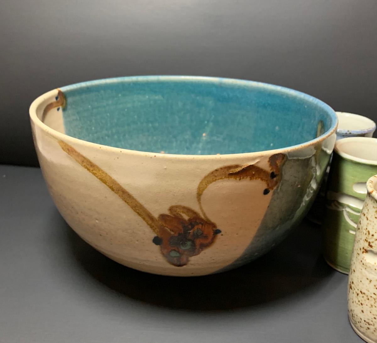LOT 29R: Collection of 6 Pottery Cup along with a  Signed Pottery Bowl
