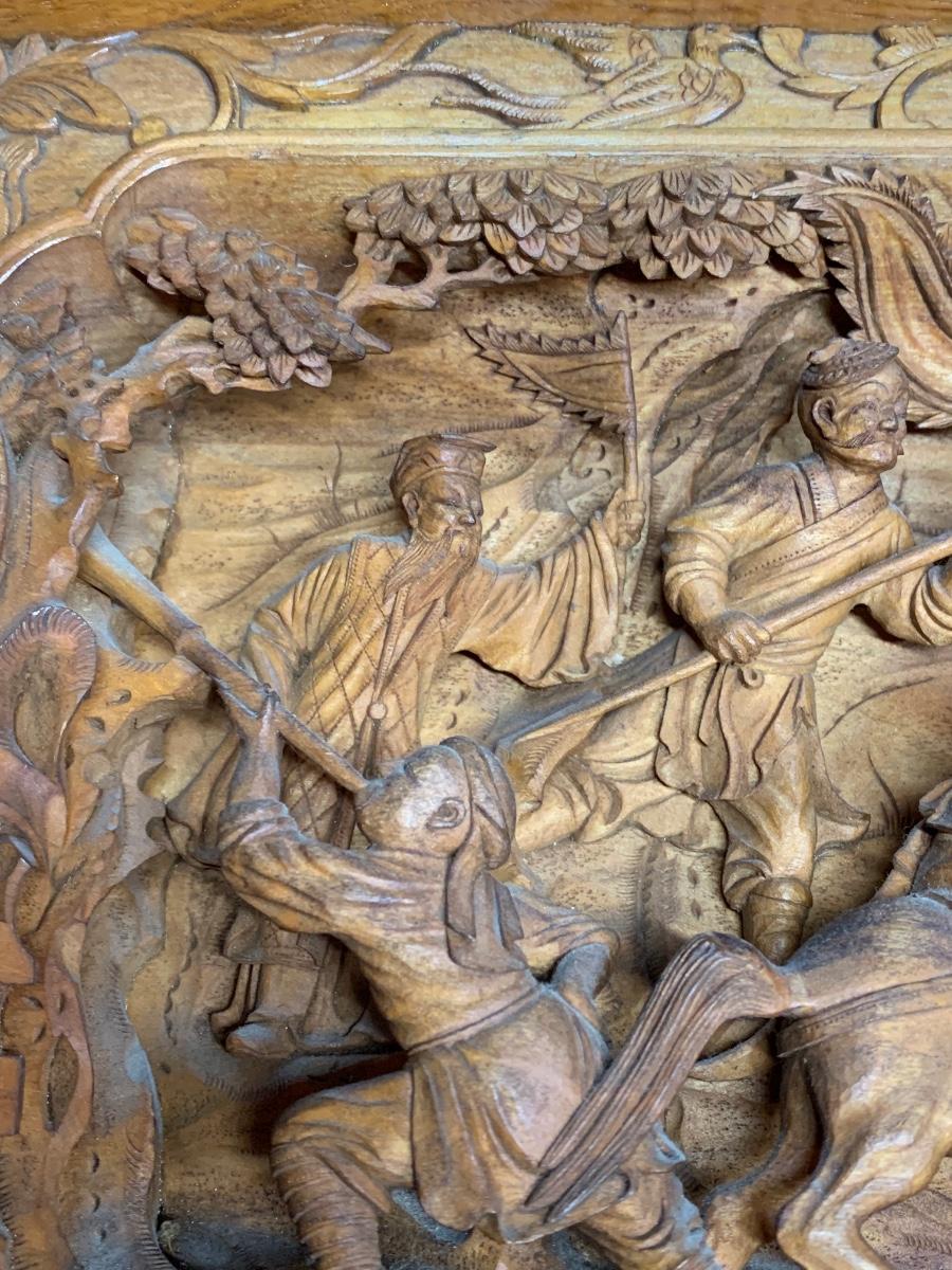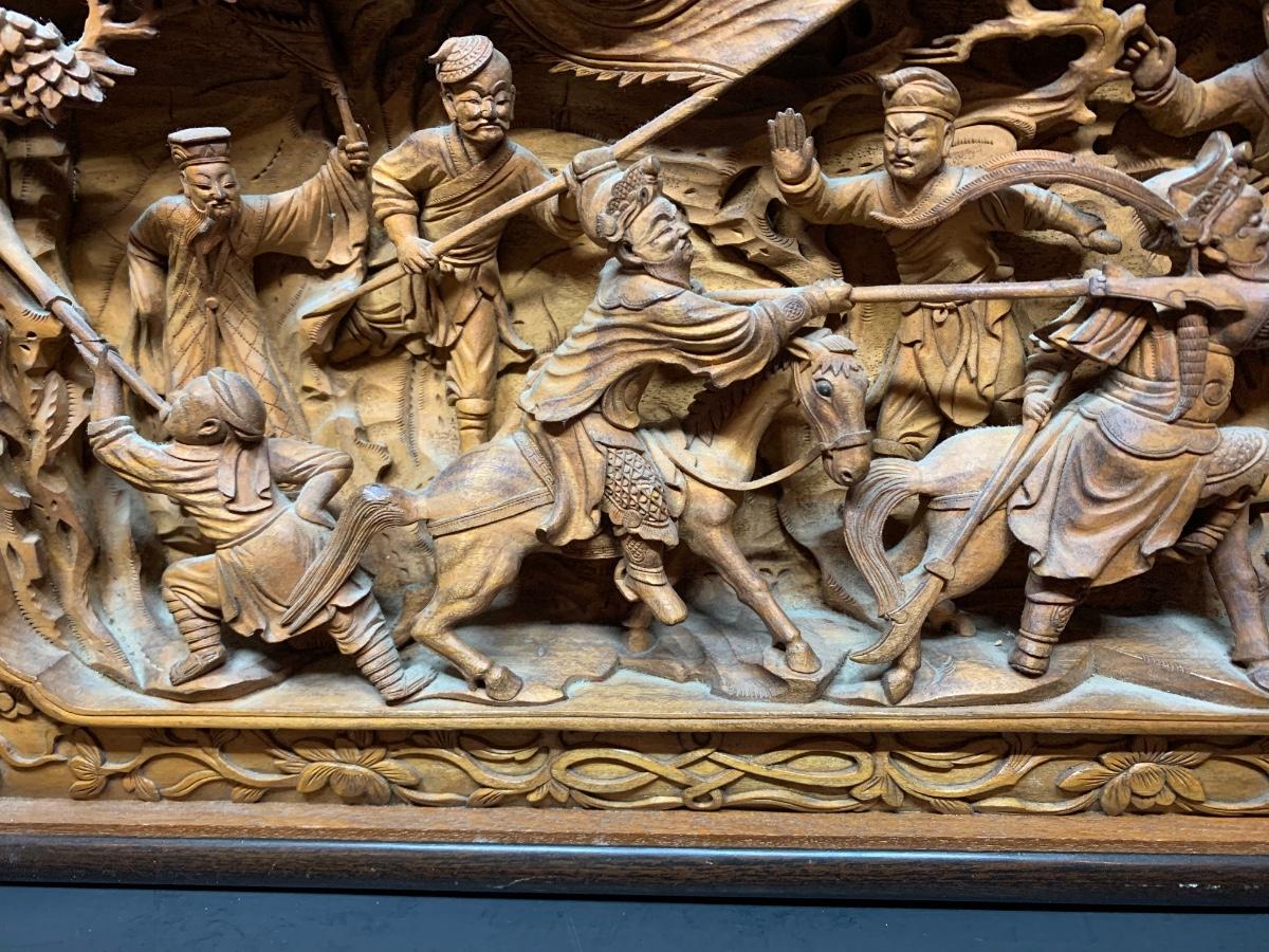 LOT 32R: Asian Themed 3-D Carved Wooden Decorative Wall Art - Stunning Piece of Craftsmanship