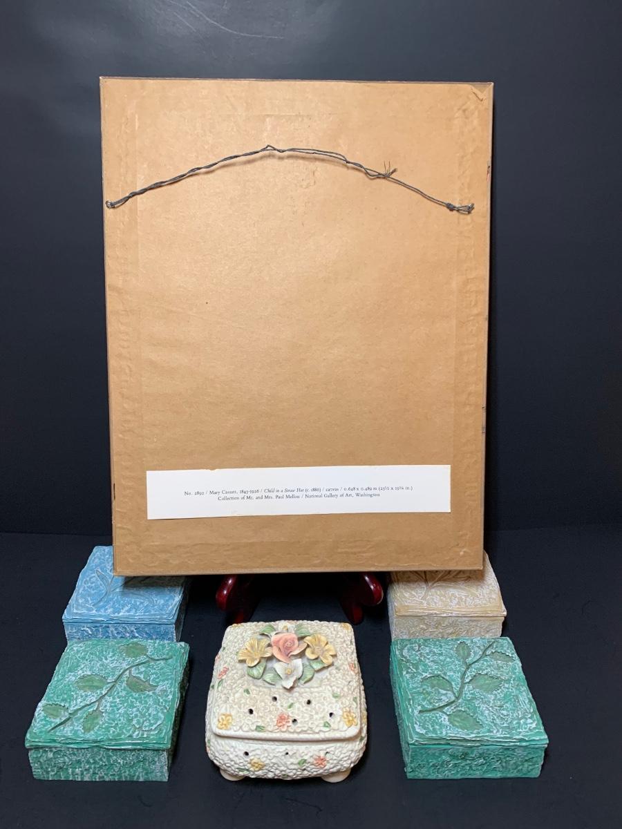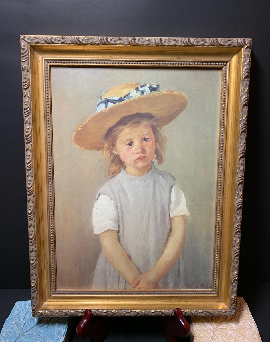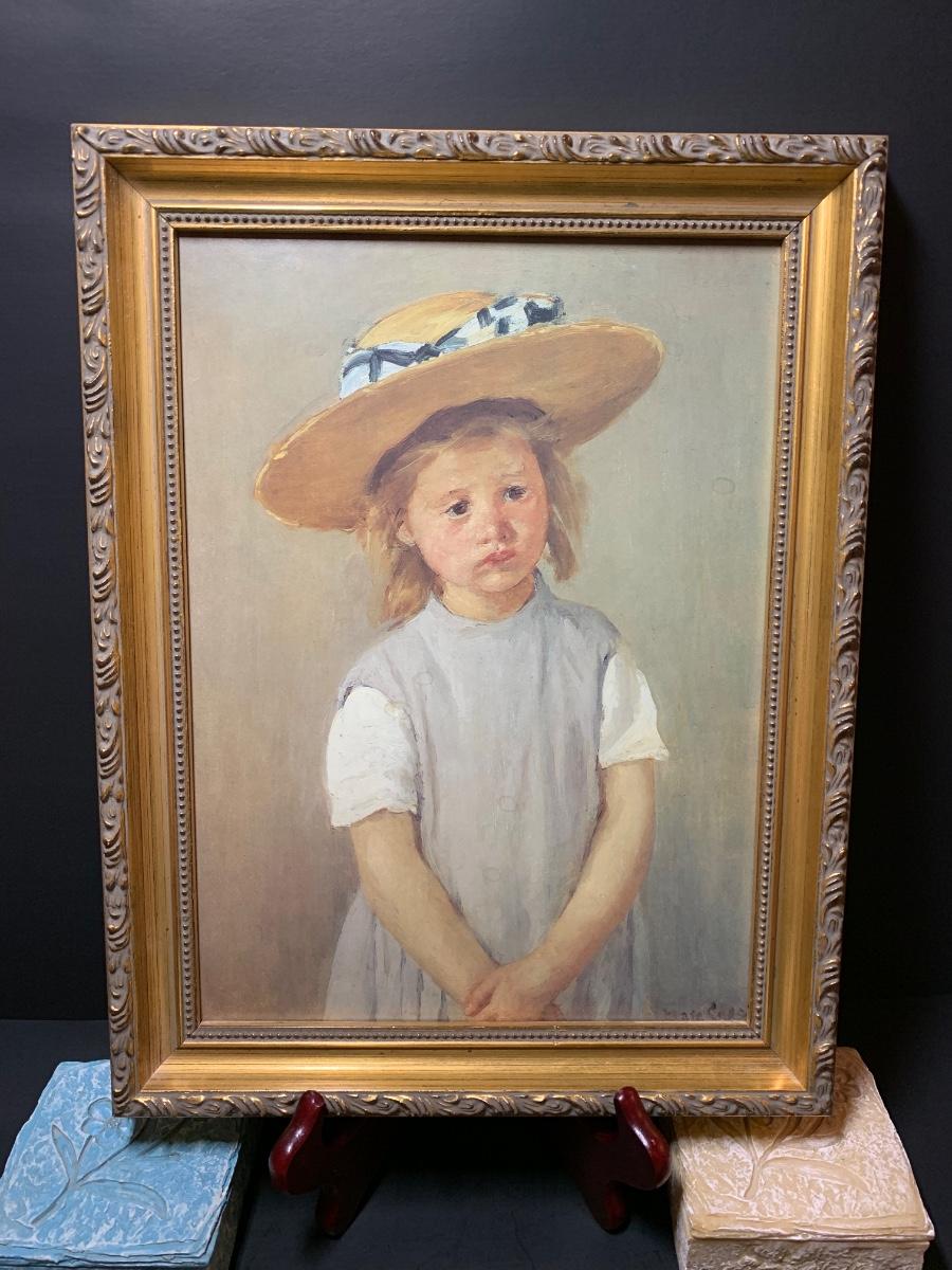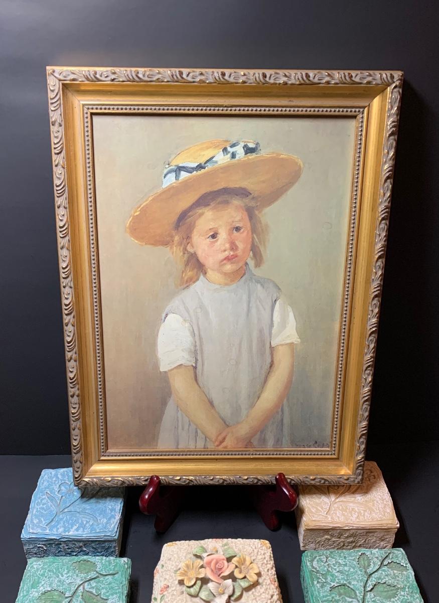 LOT 35R: Framed Numbered Print of Mary Cassatt's Child in a Straw Hat & Collection of Decorative Trinket Boxes