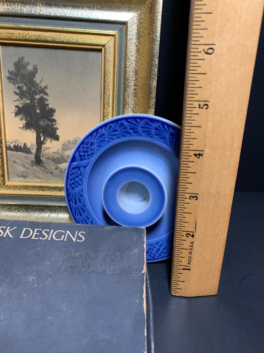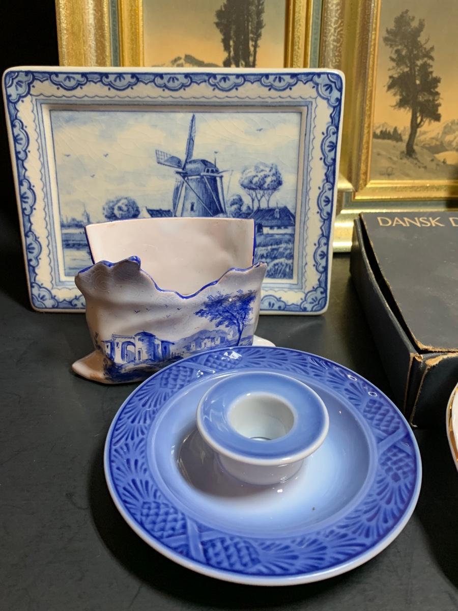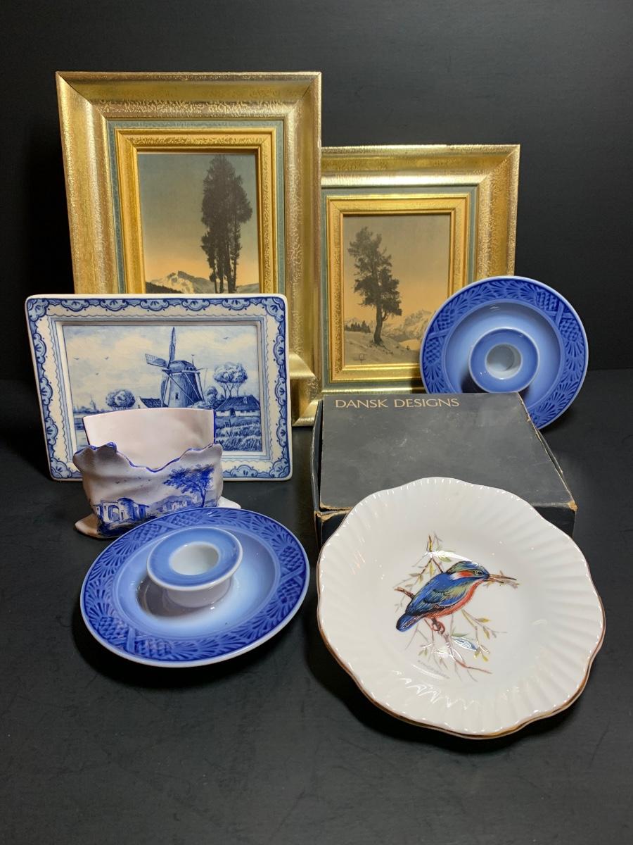 LOT 39: Delft Hanging Trivet, Royal Copenhagen Candle Holders, Dansk Candle Holder Vintage Art Prints & More
