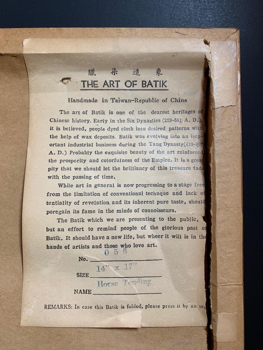 LOT 41R: Framed Batik Taiwanese Art Piece