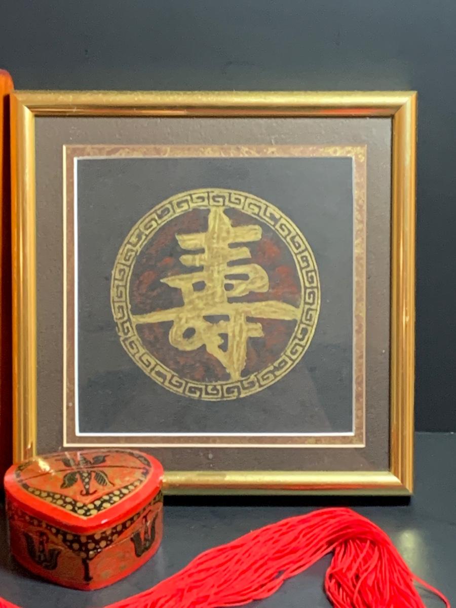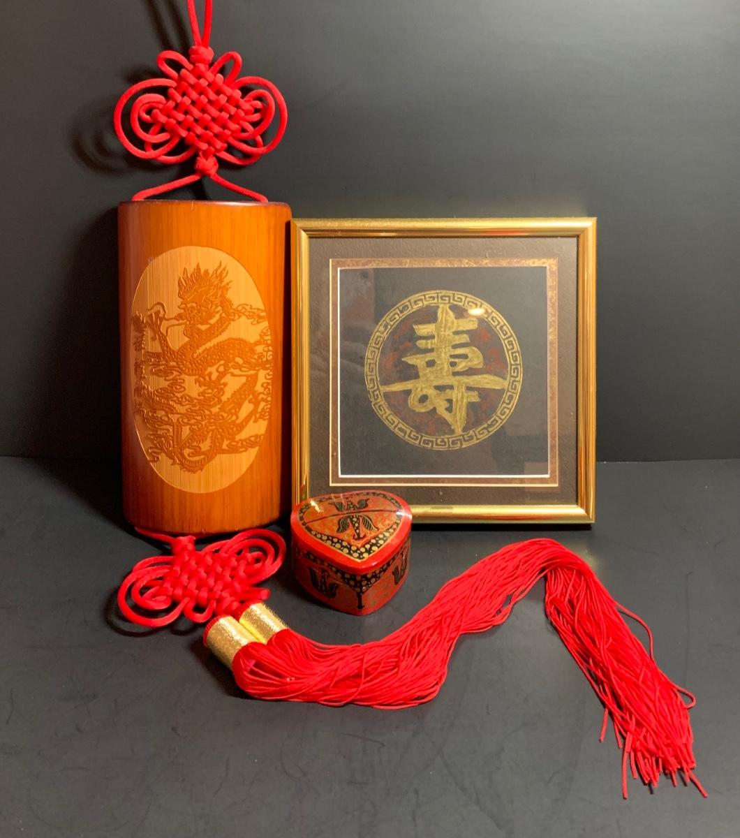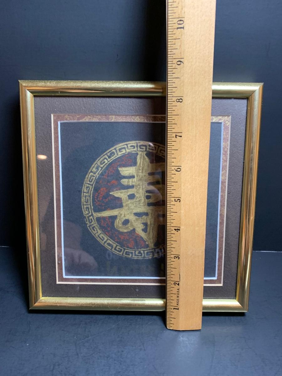 LOT 43R: Asian Themed Decor - Brass Rubbing Wall Art & Carved Wooden Wall Hanging