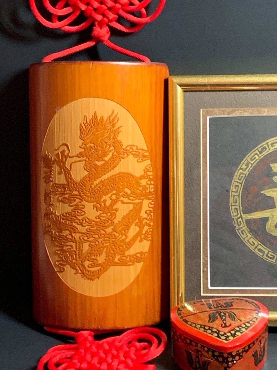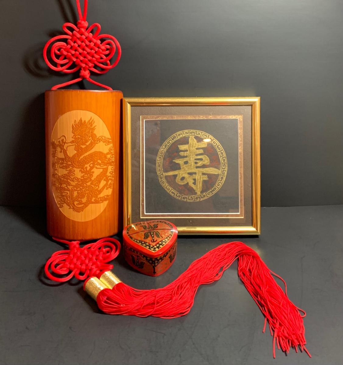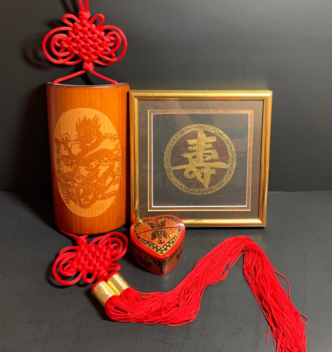 LOT 43R: Asian Themed Decor - Brass Rubbing Wall Art & Carved Wooden Wall Hanging