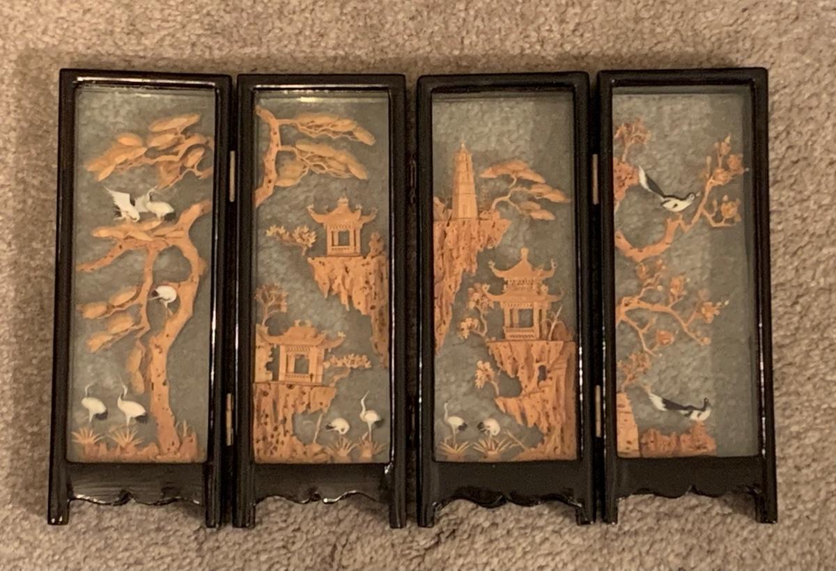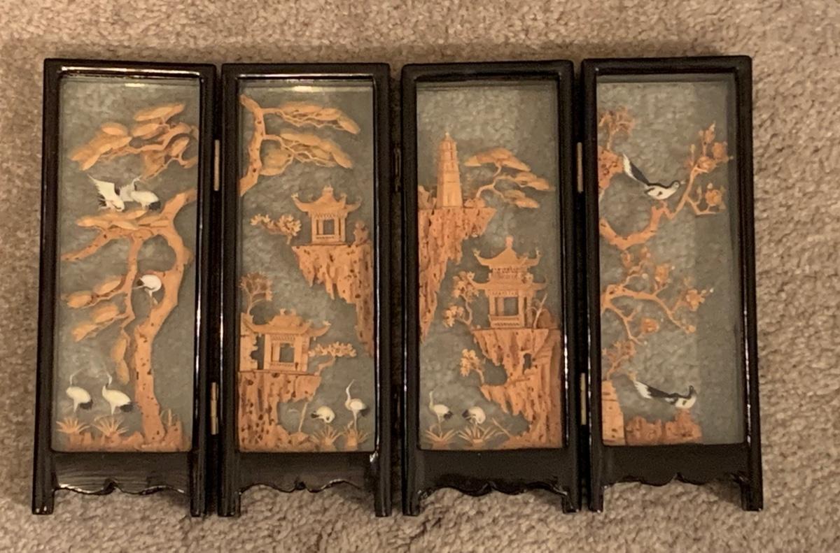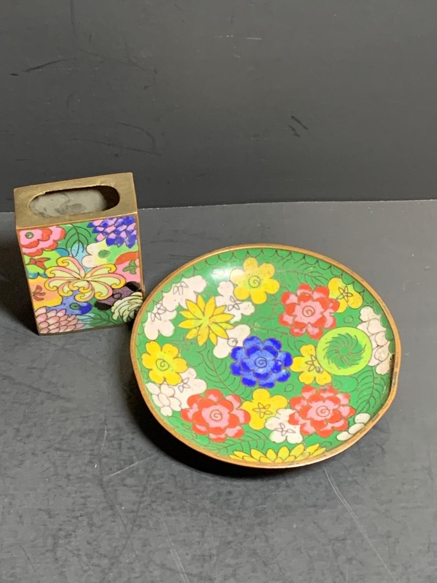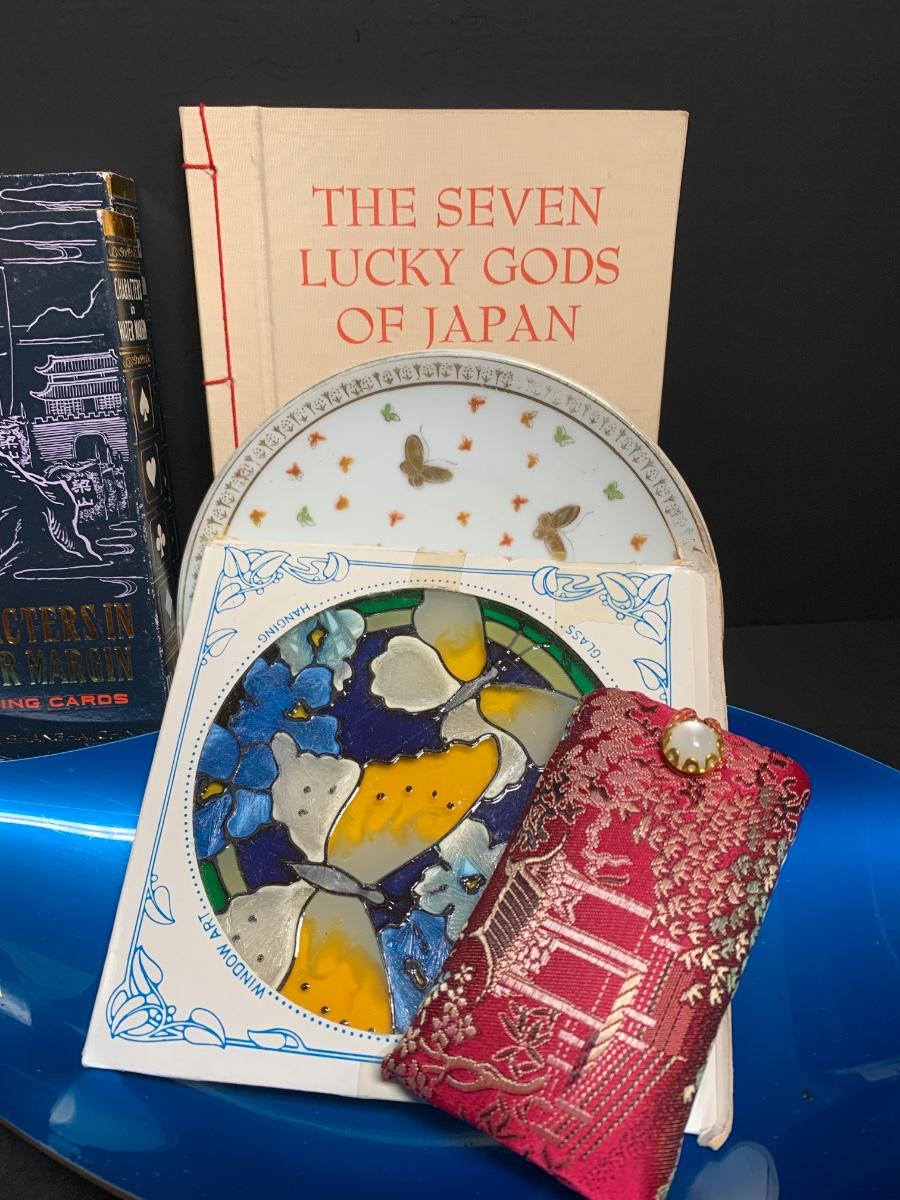 LOT 46R: Asian Themed Decor: Playing Cards, Enamel Overlay, Trinket Box, Sewing Kit & More