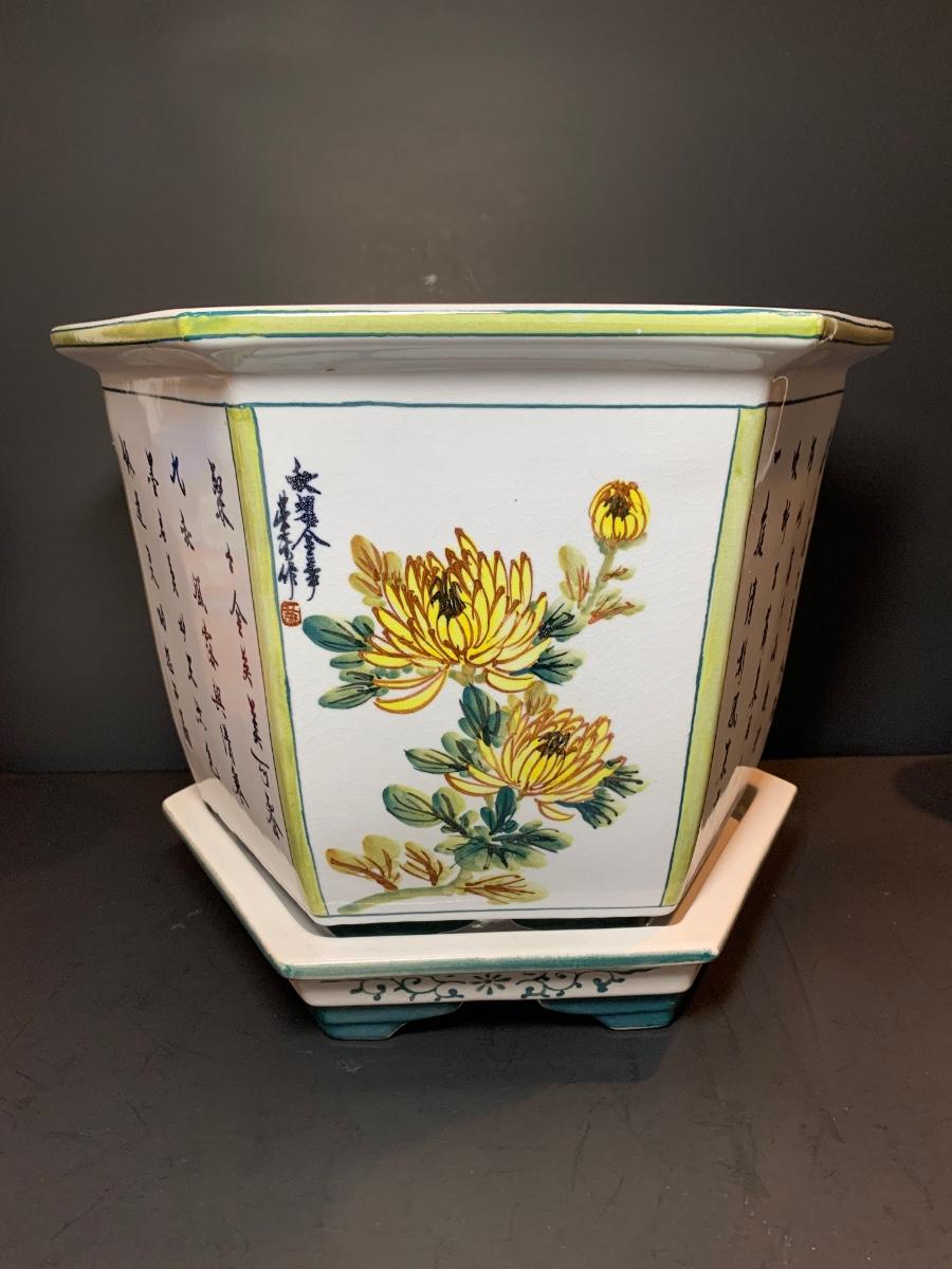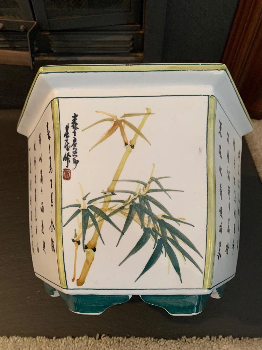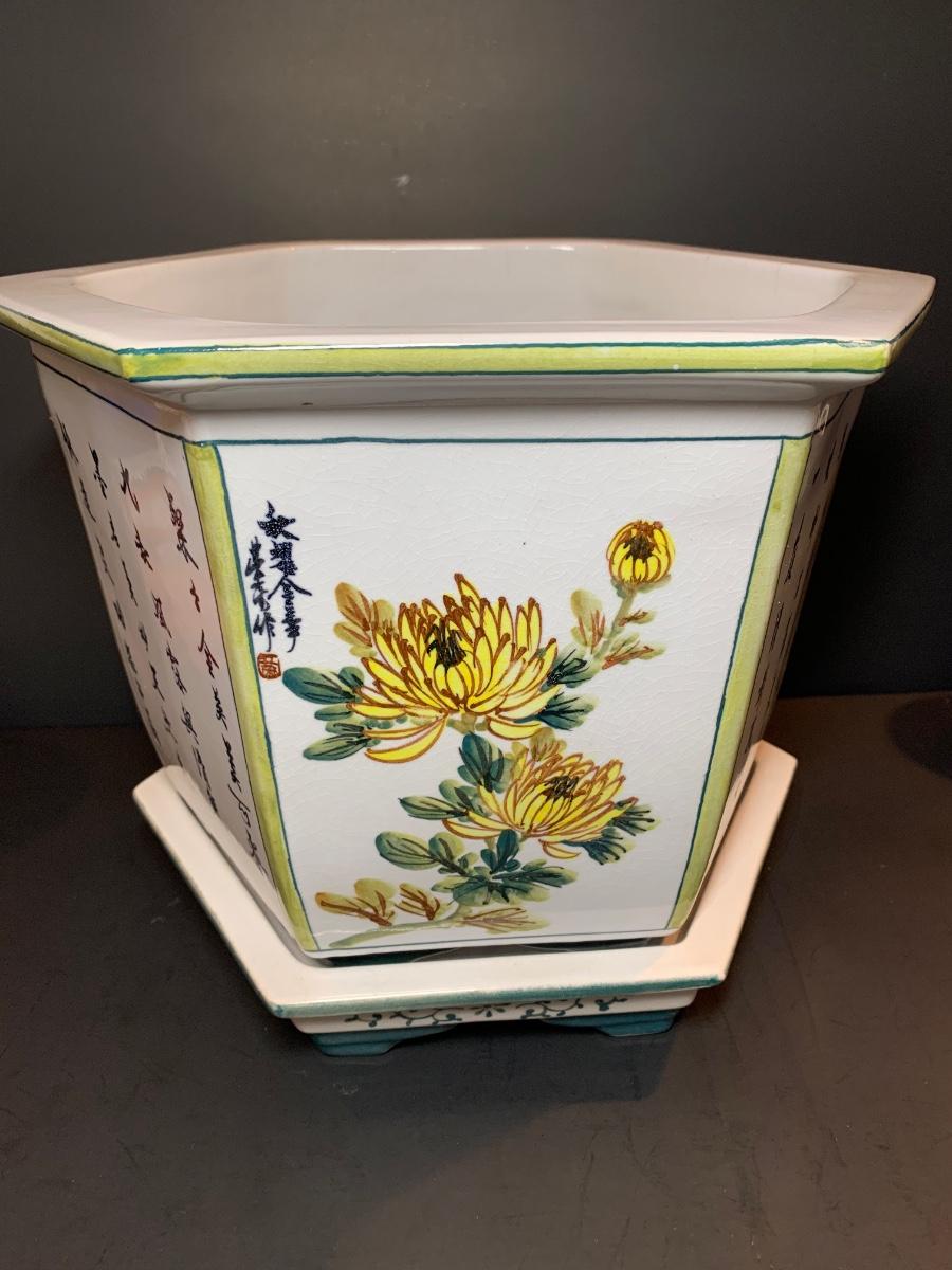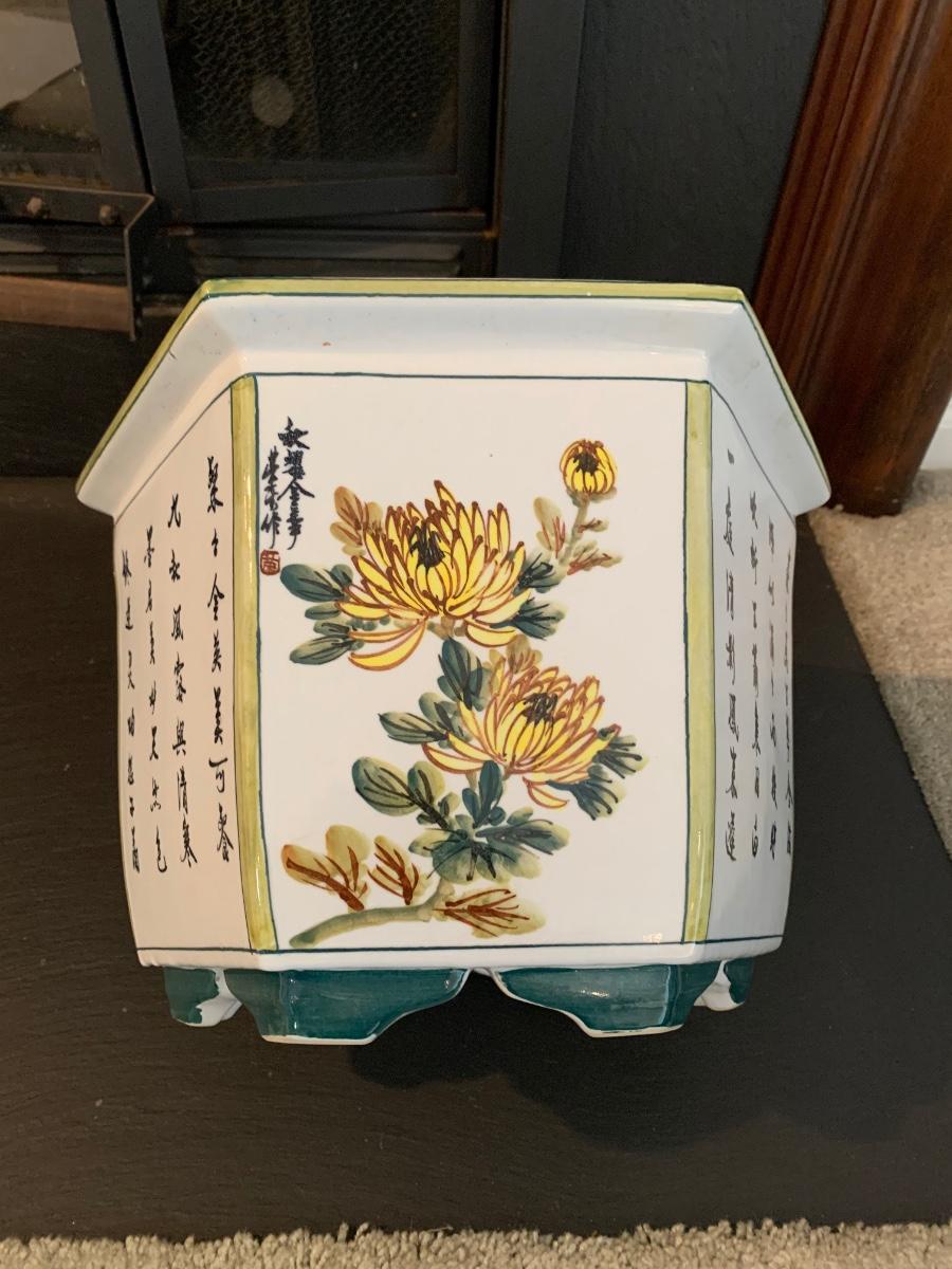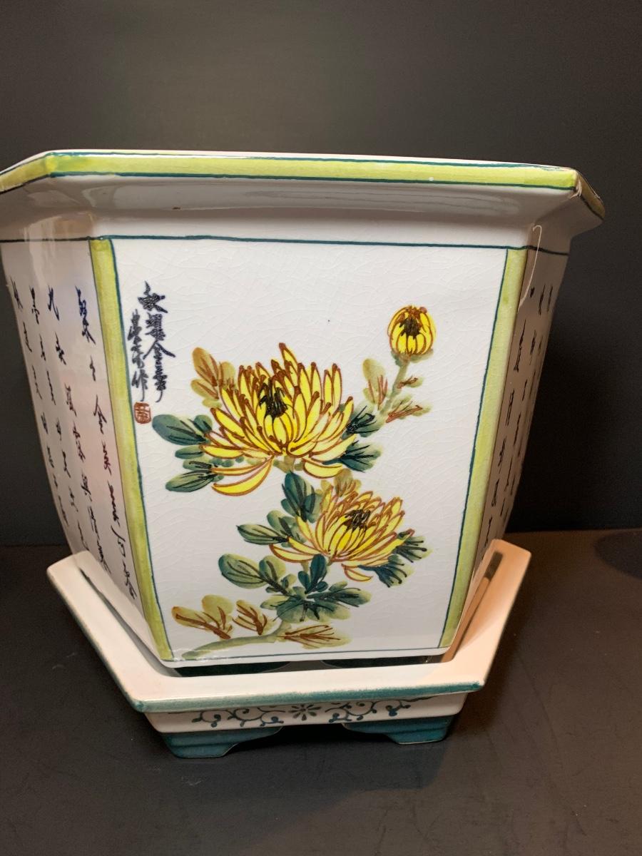 LOT 55R: Painted Ceramic Planter - Asian Themed
