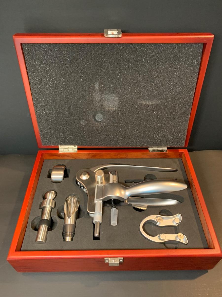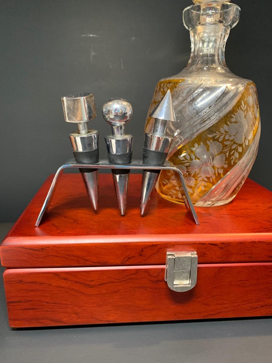 LOT 65R: Wine Accessories - Decanter, Bottle Stoppers, Opener Set