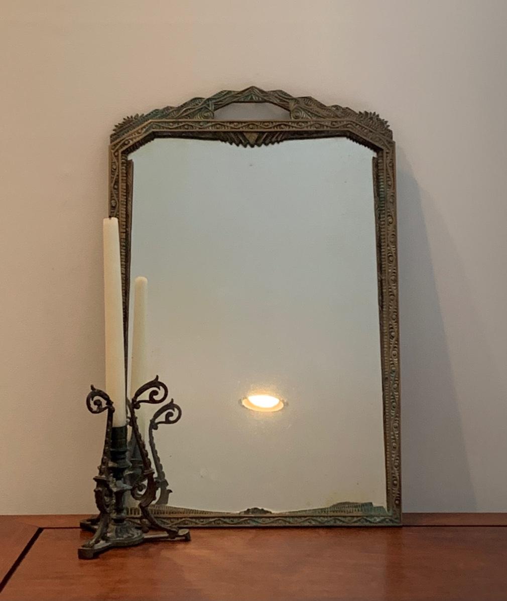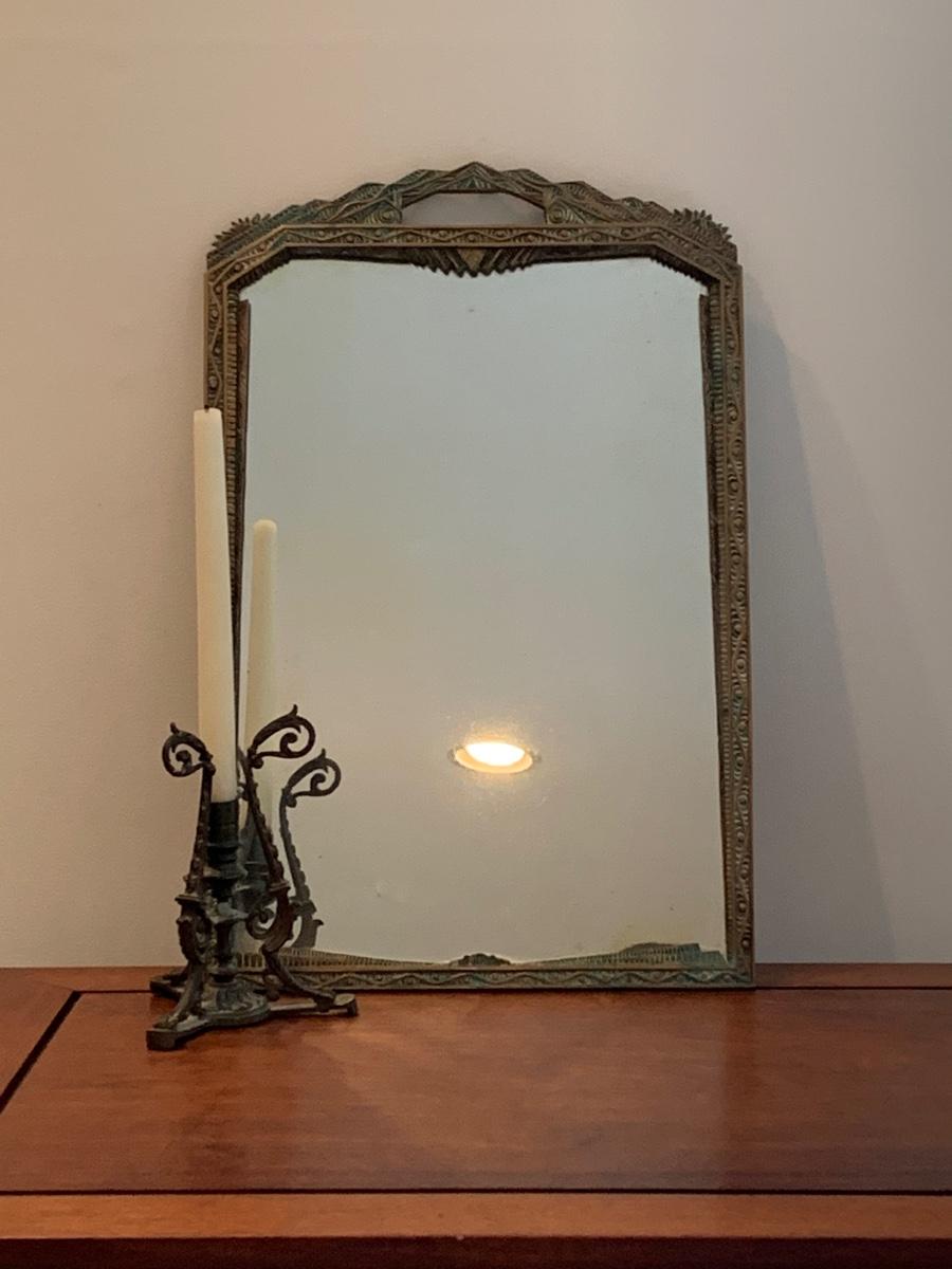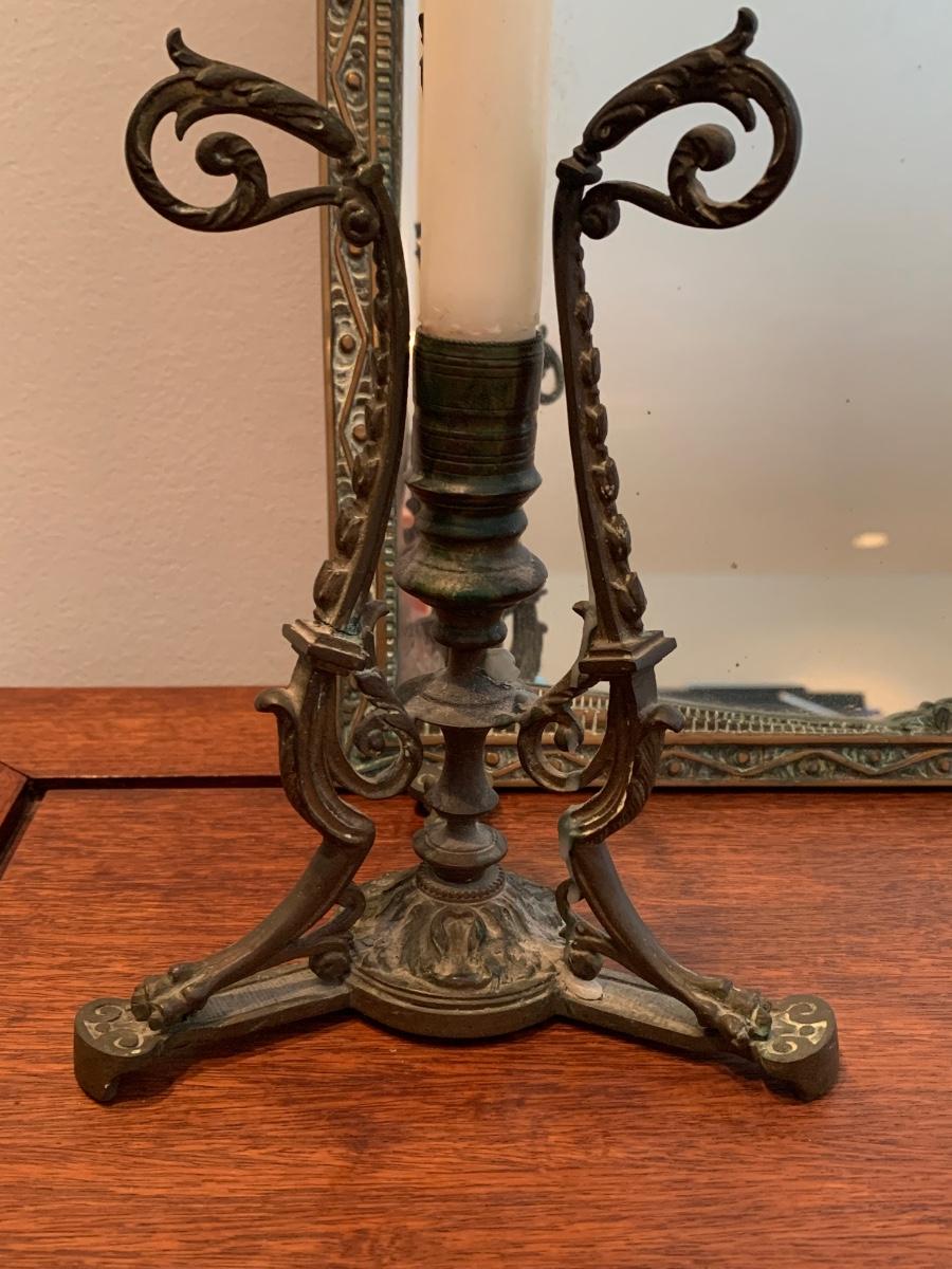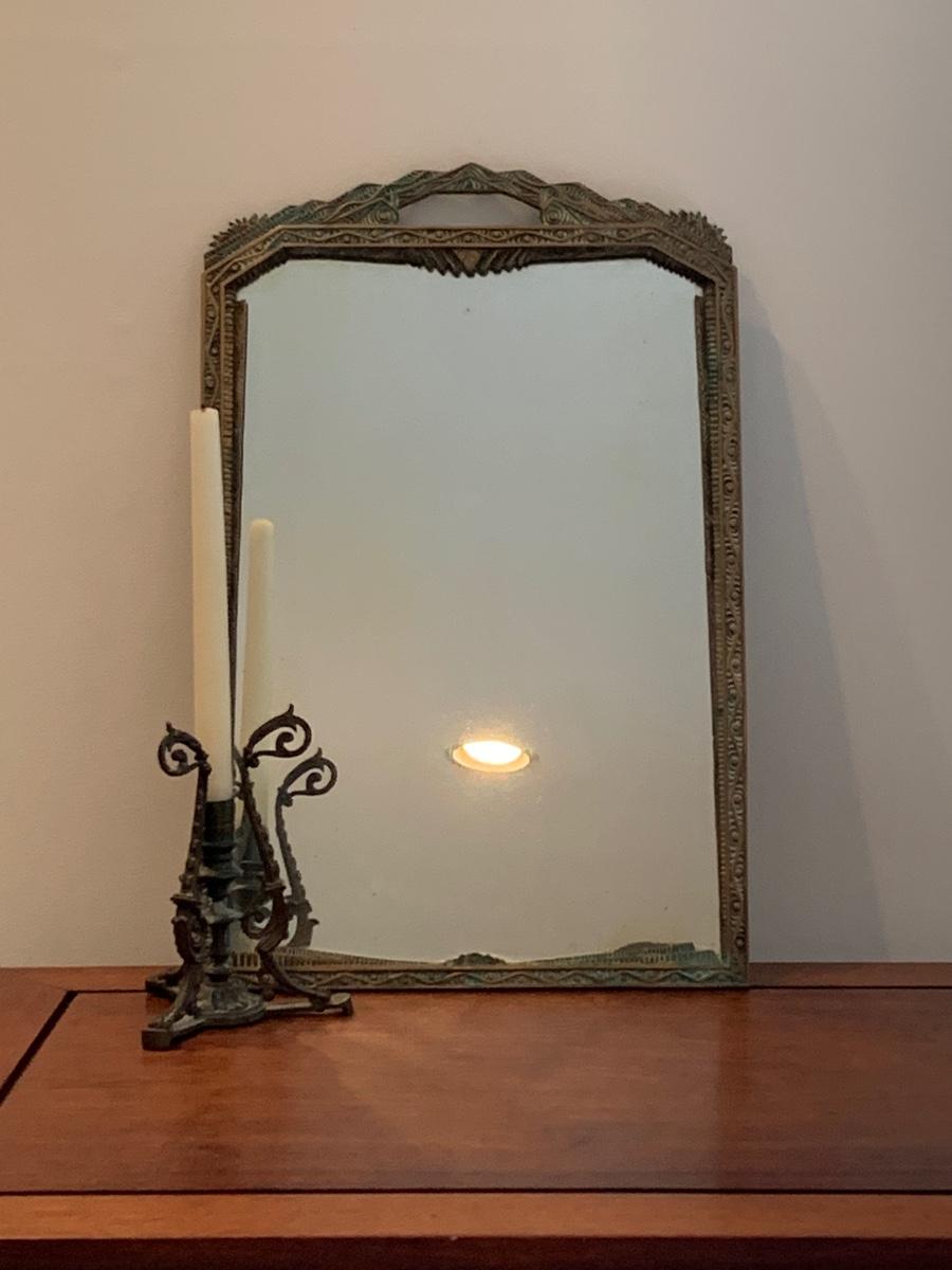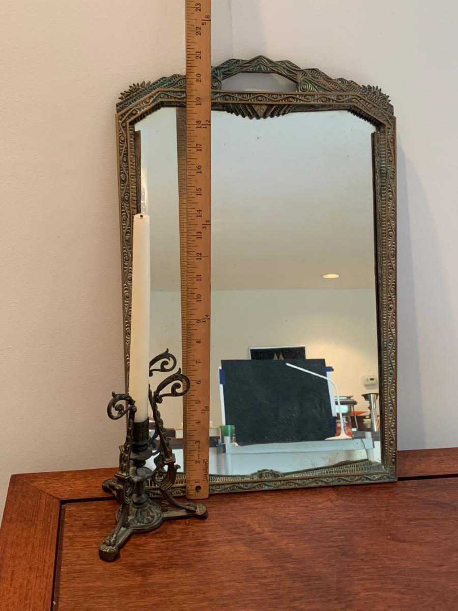 LOT 67R: Brass Framed Mirror and Candleholder