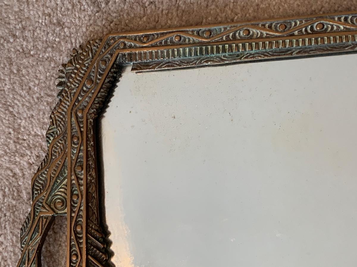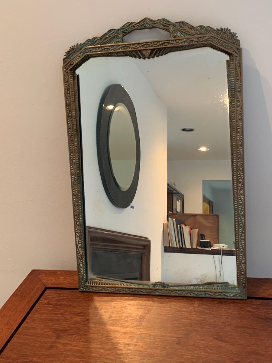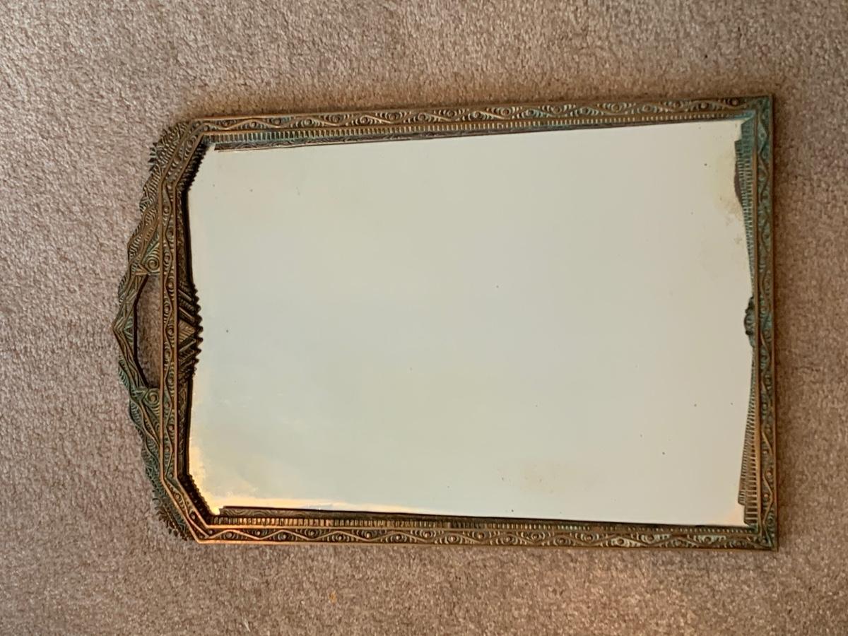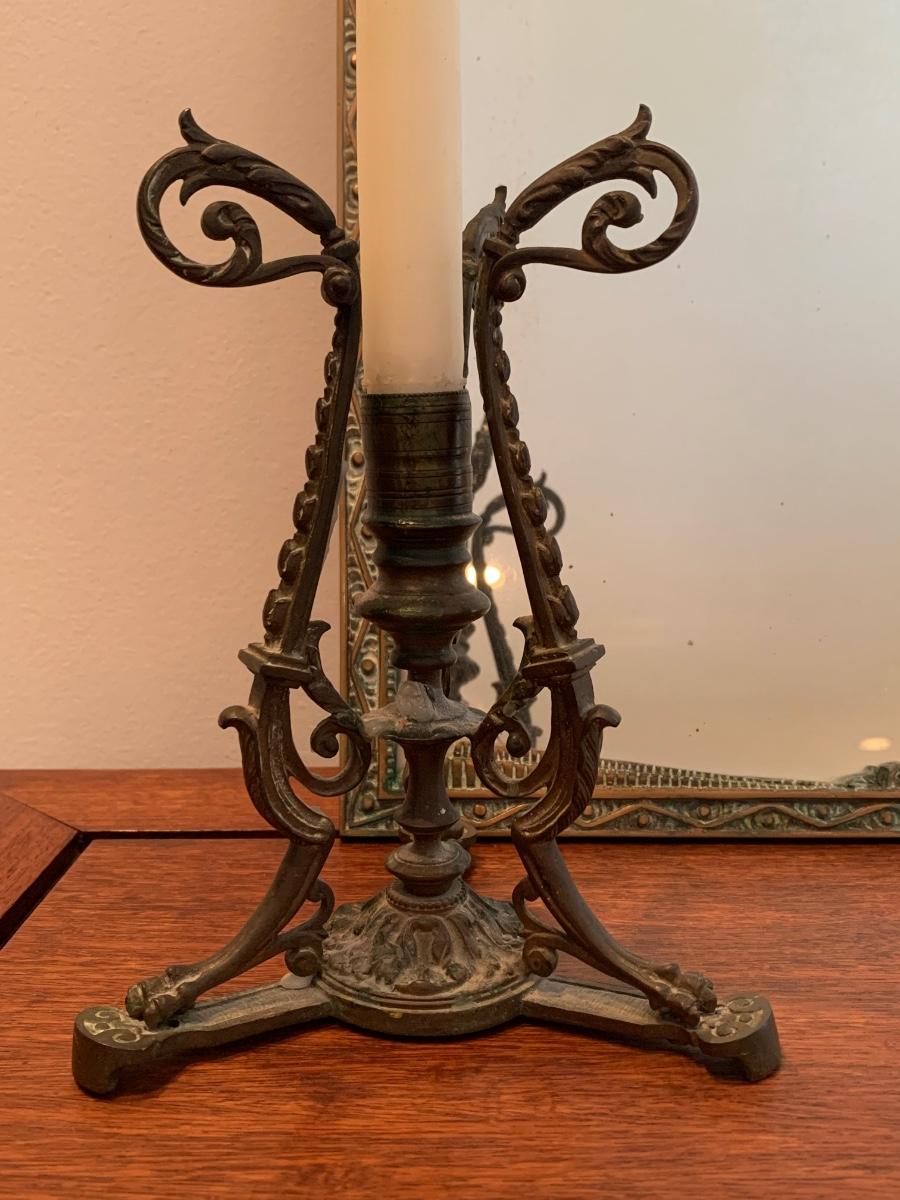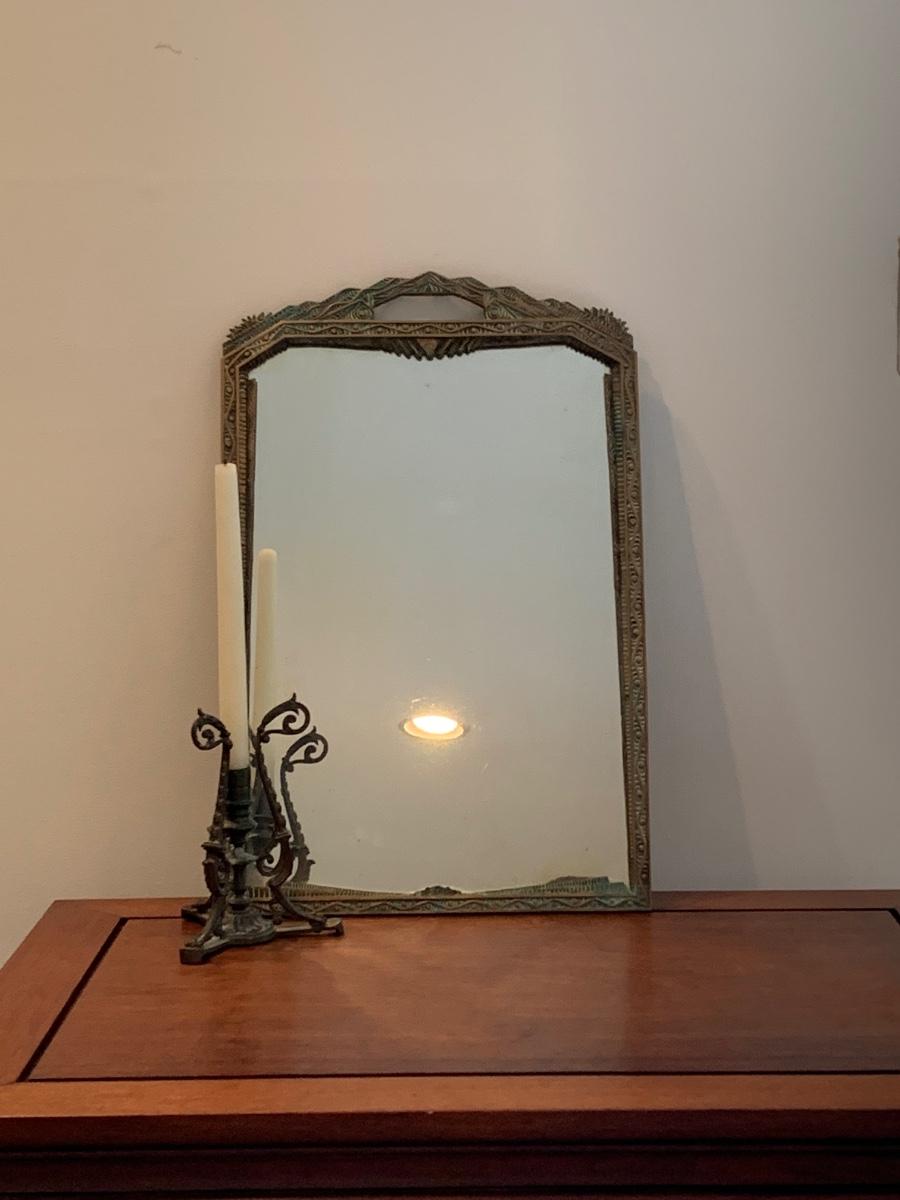 LOT 67R: Brass Framed Mirror and Candleholder