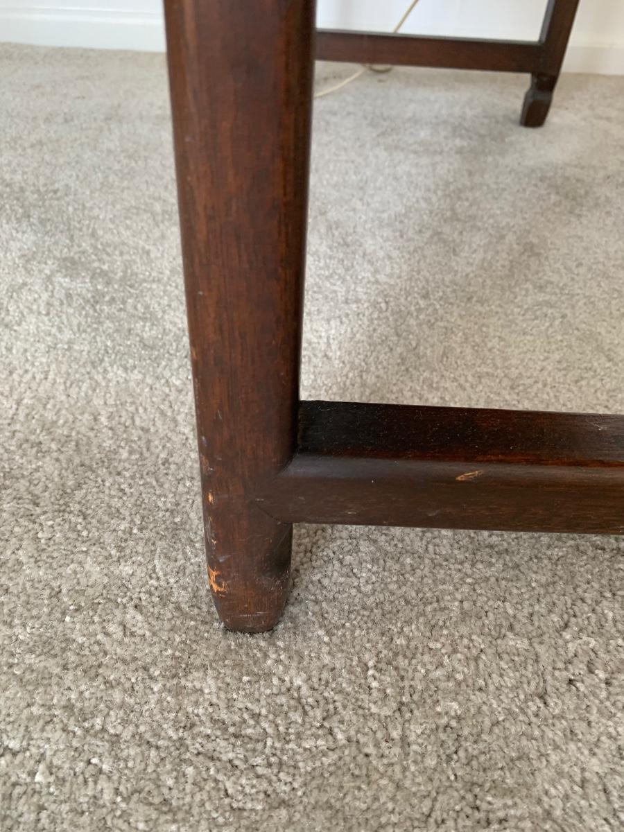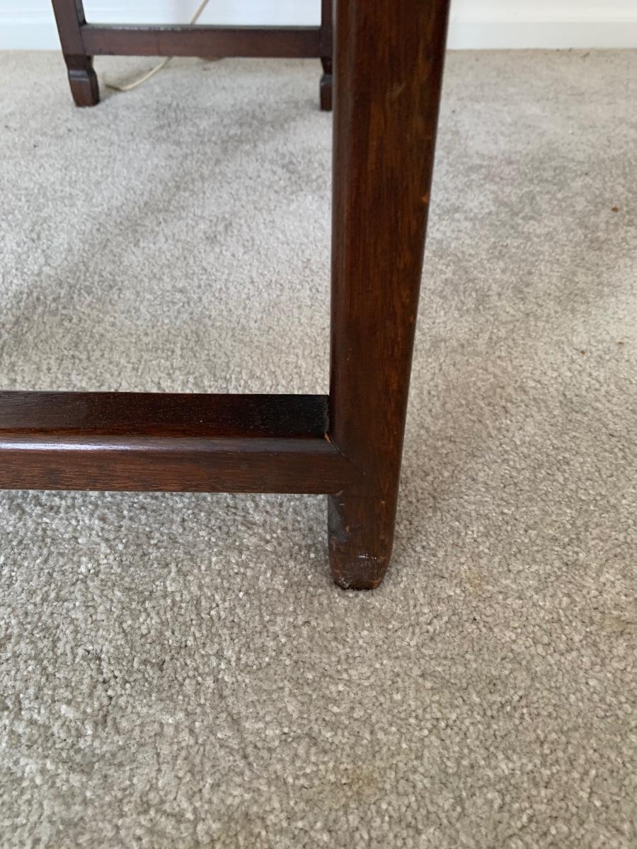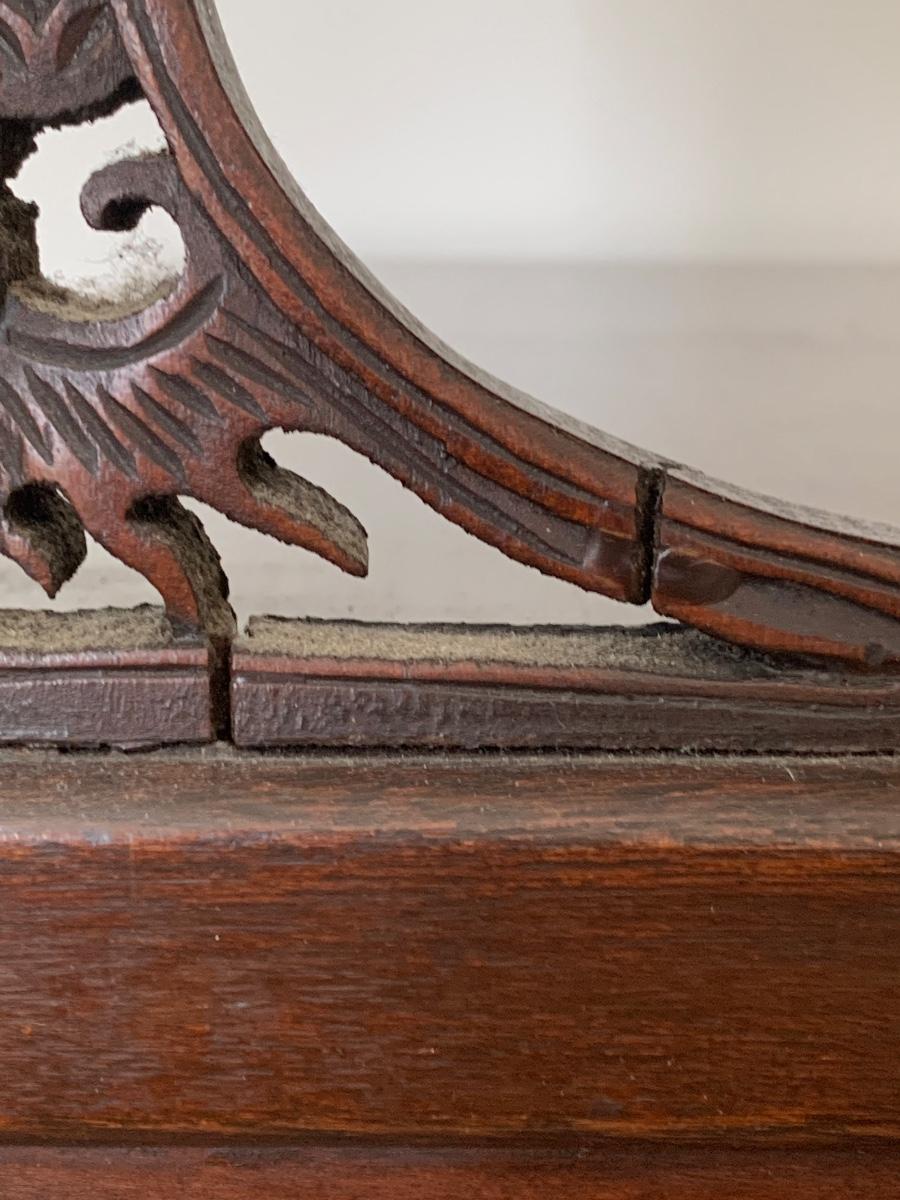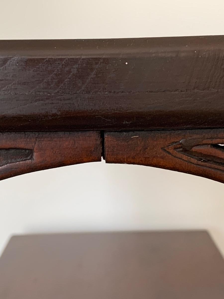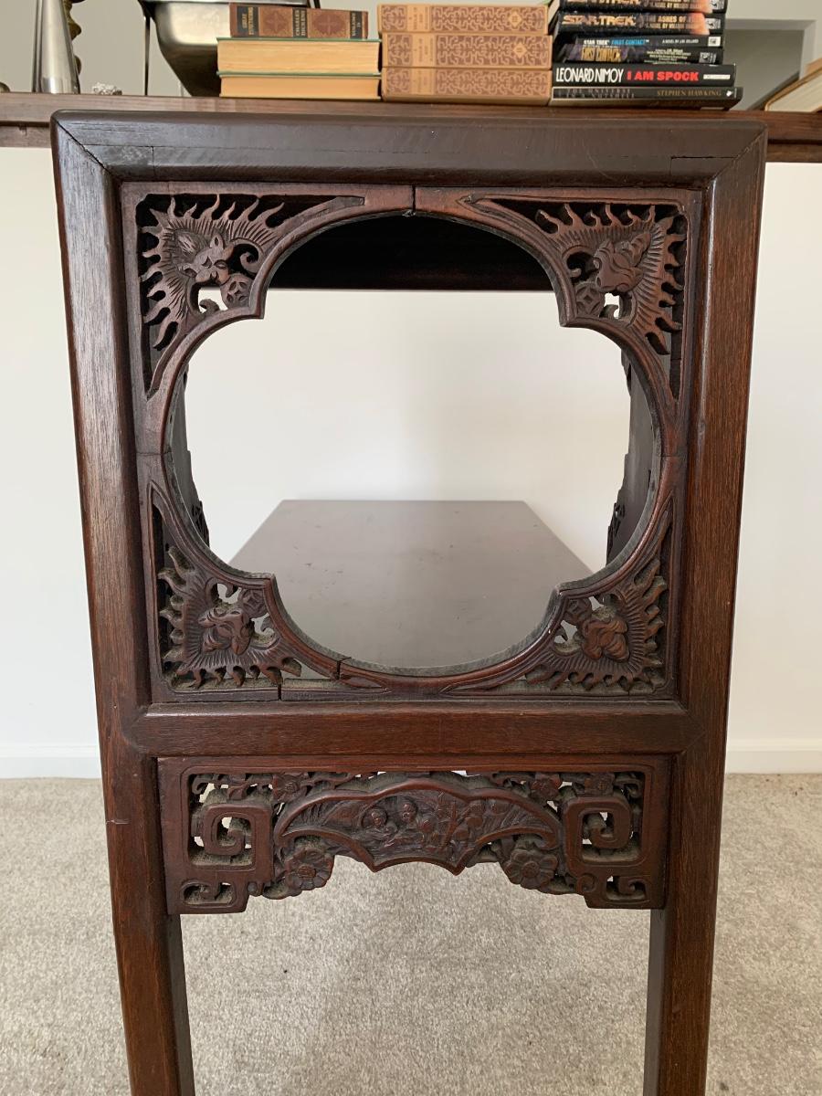 This end table is intricately carved however is was repaired at one time and will need to be