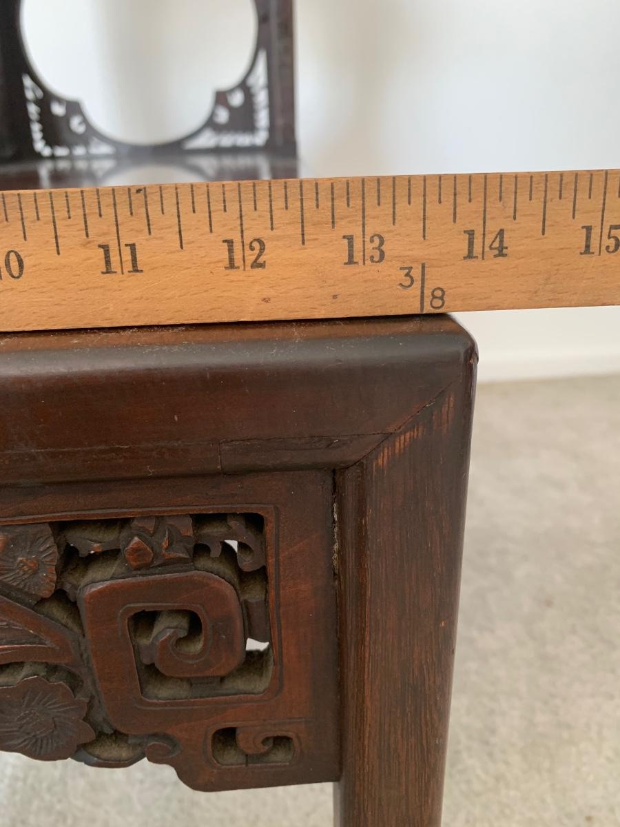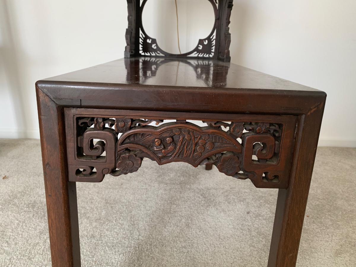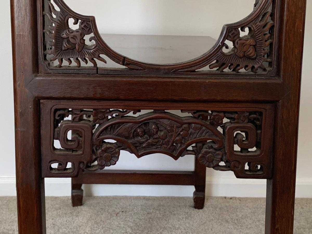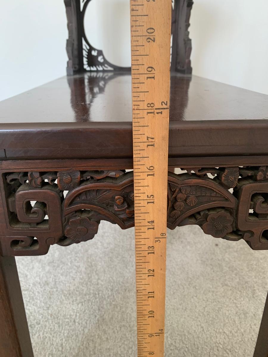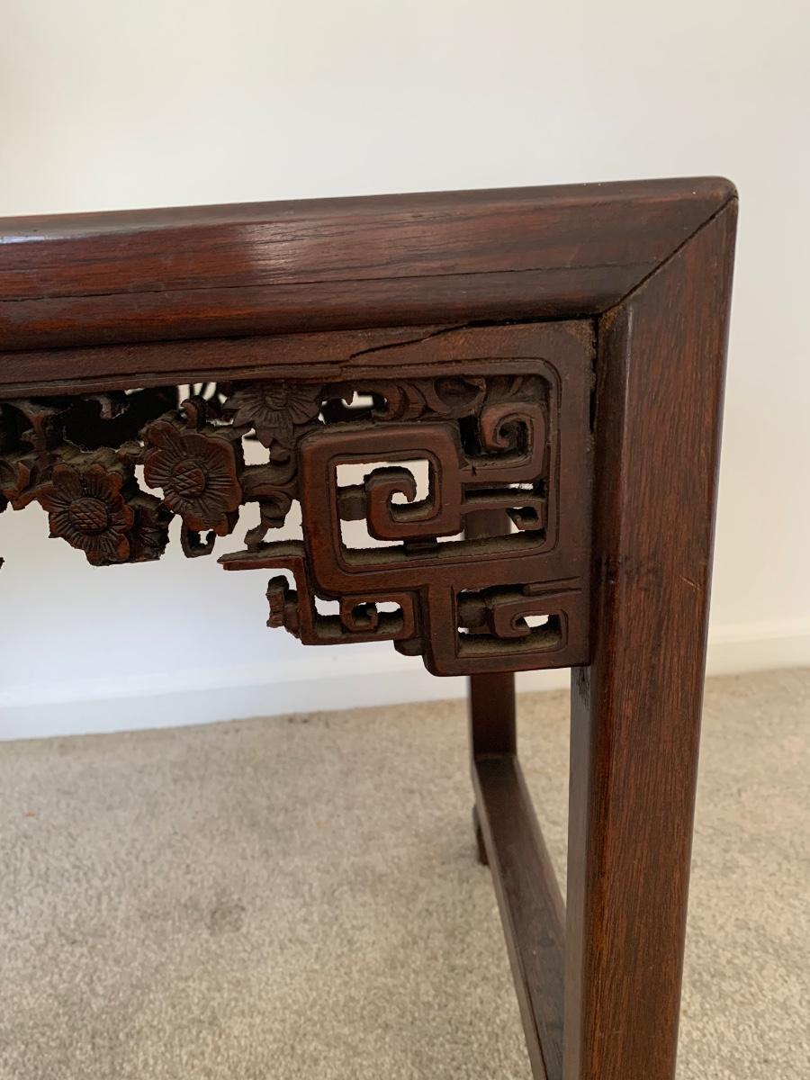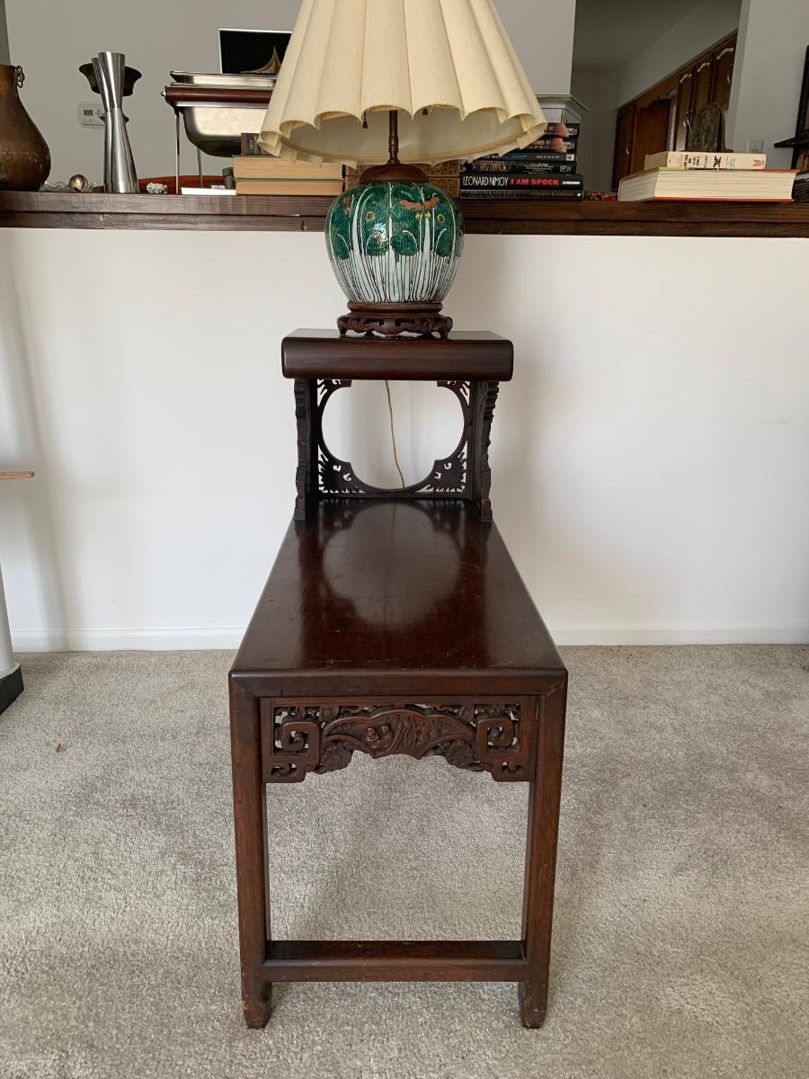 This end table is intricately carved however is was repaired at one time and will need to be