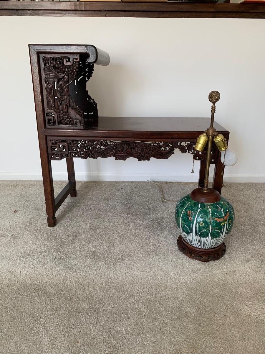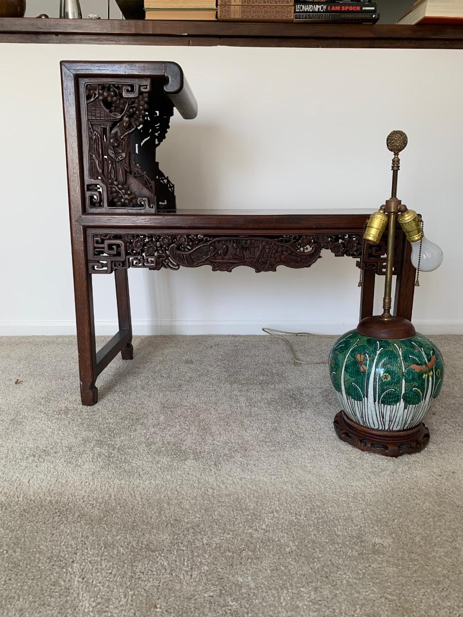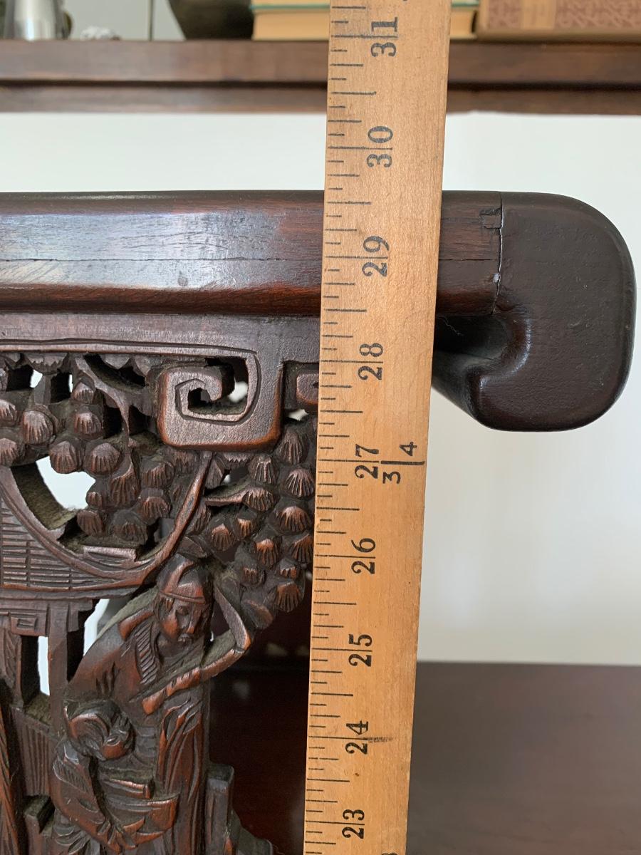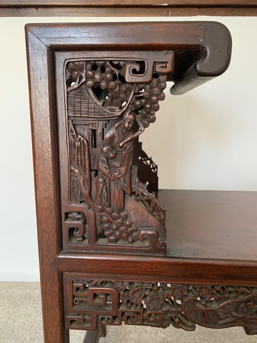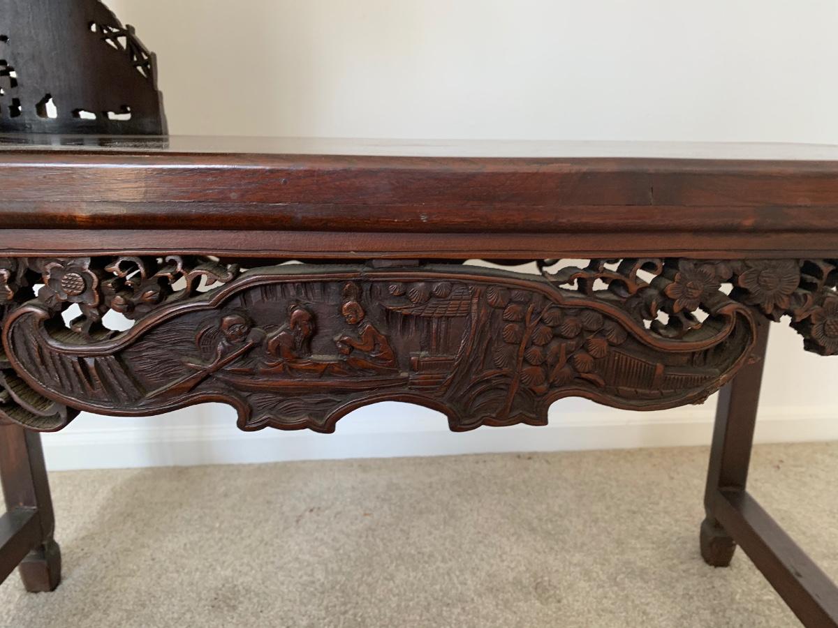 This end table is intricately carved however is was repaired at one time and will need to be