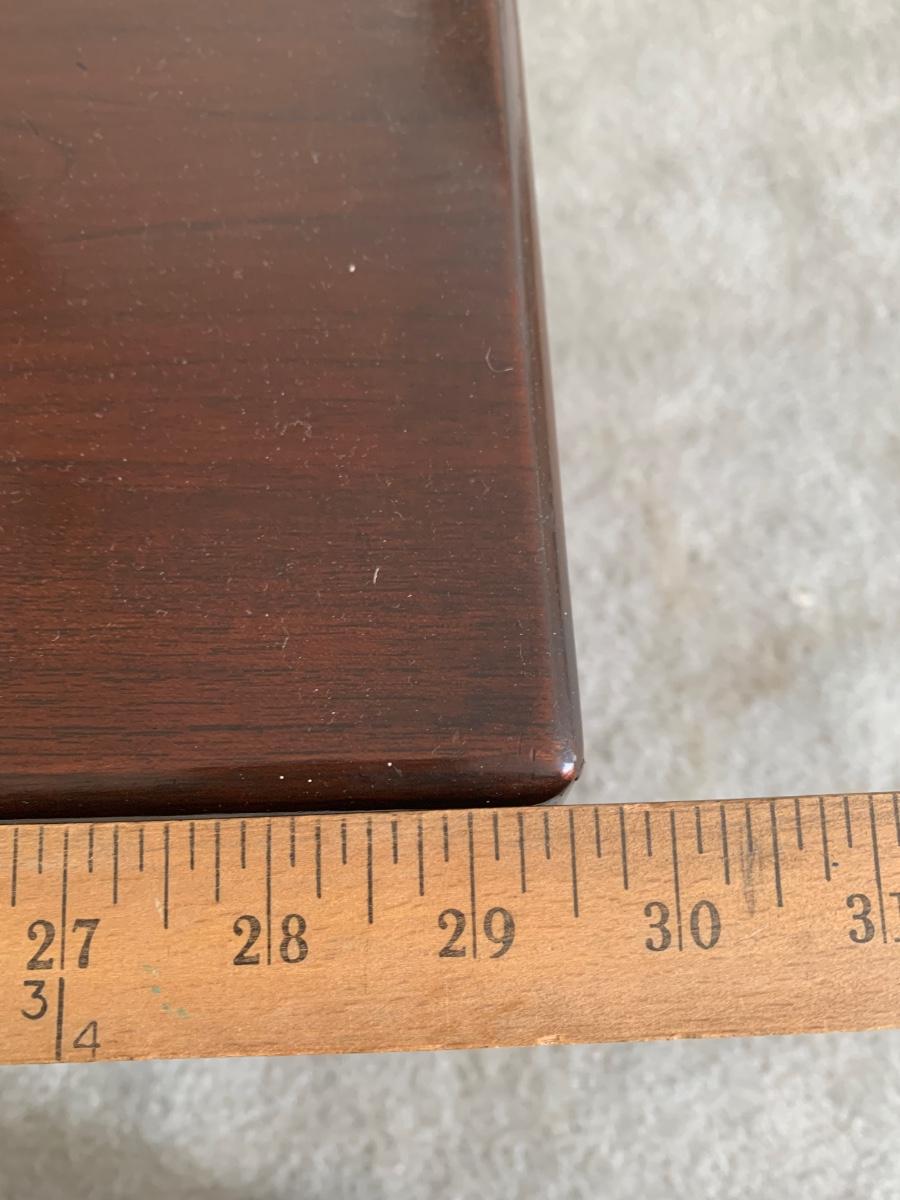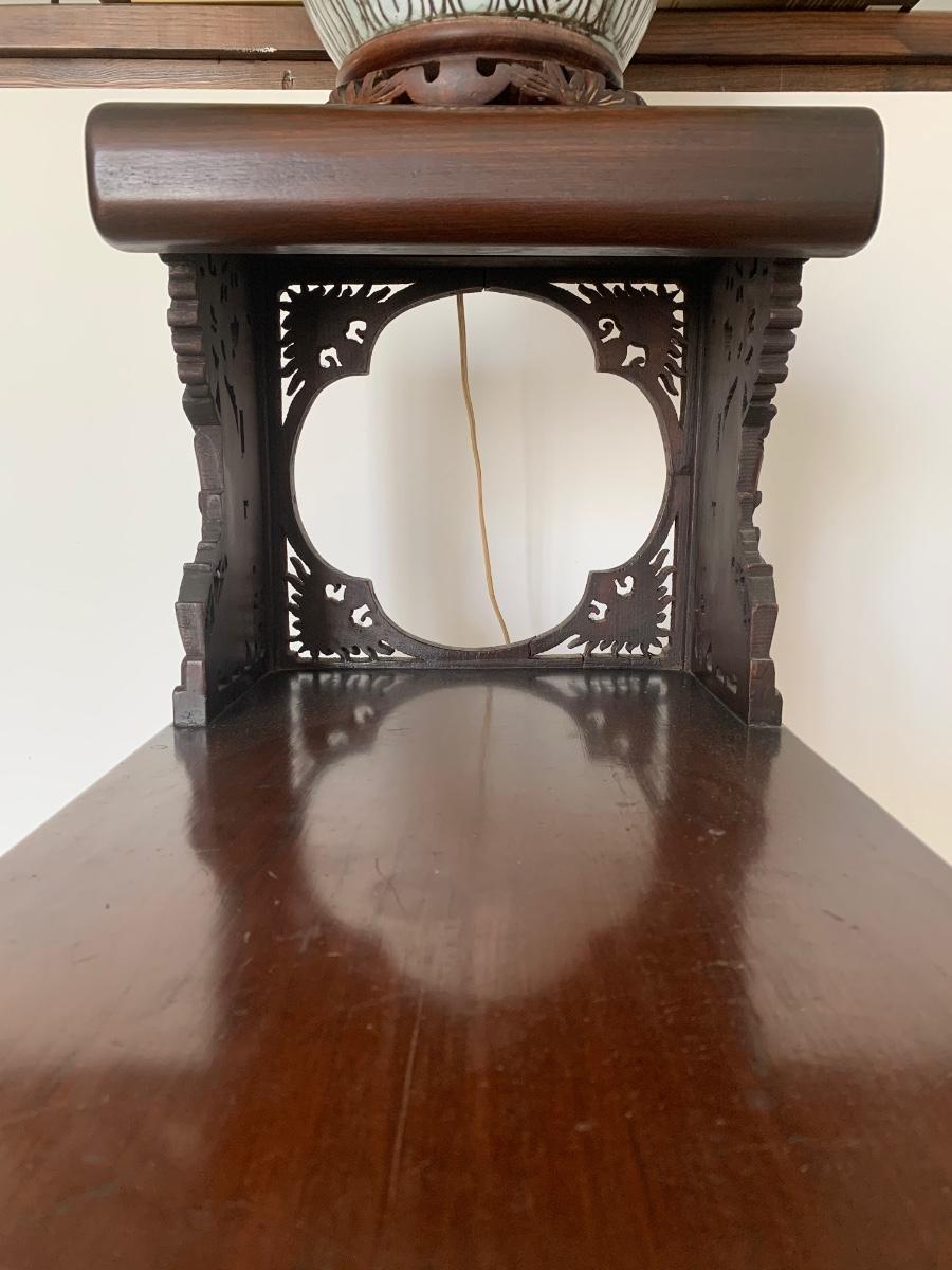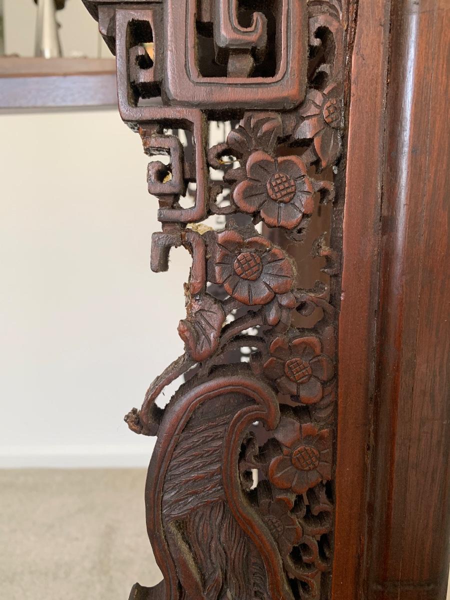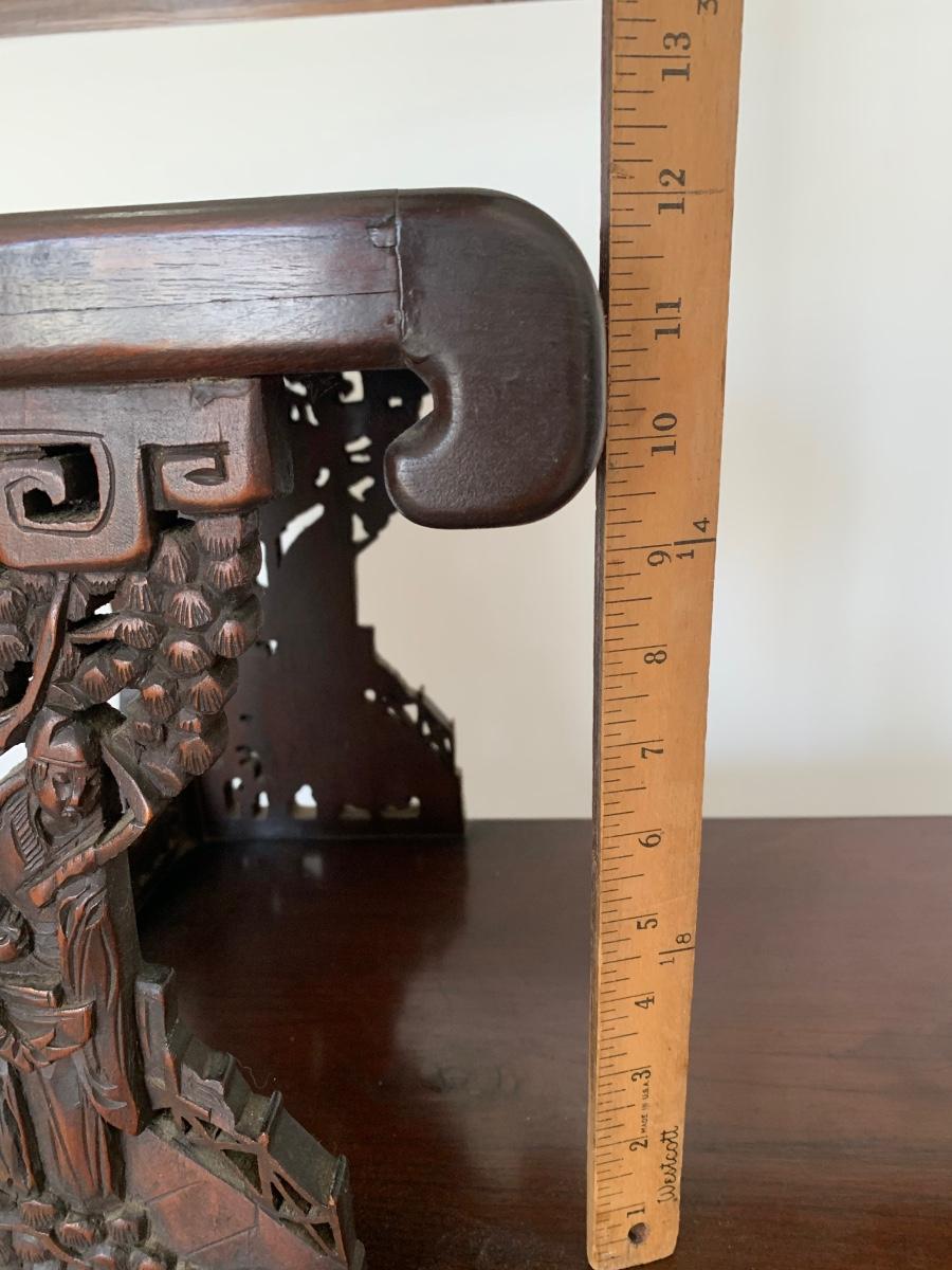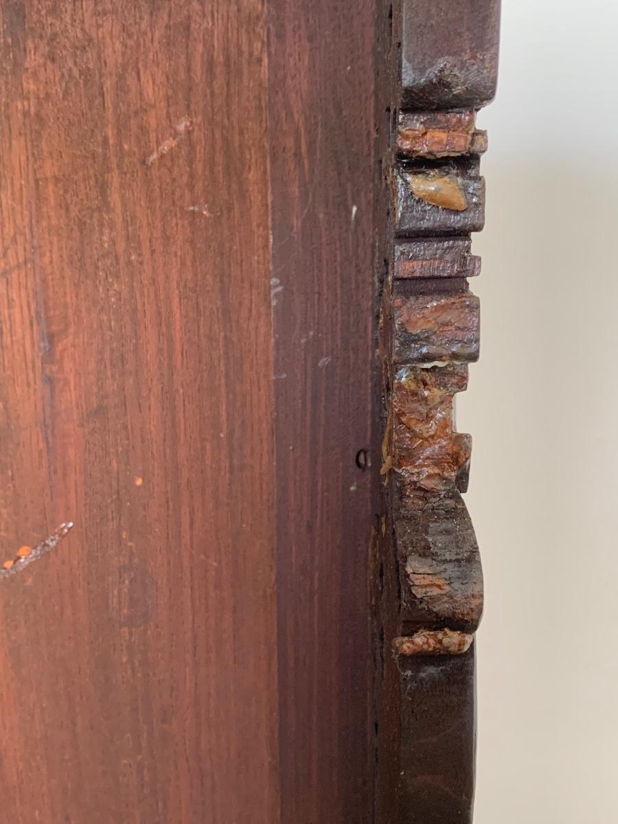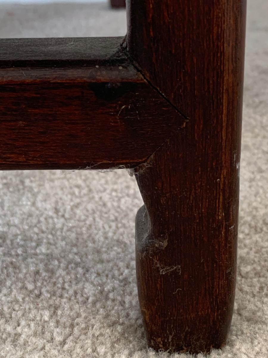 This end table is intricately carved however is was repaired at one time and will need to be