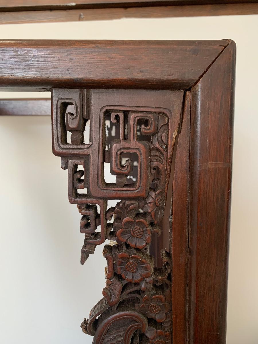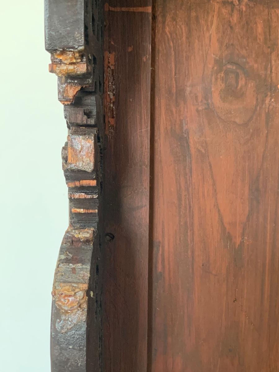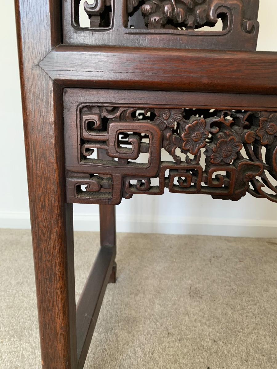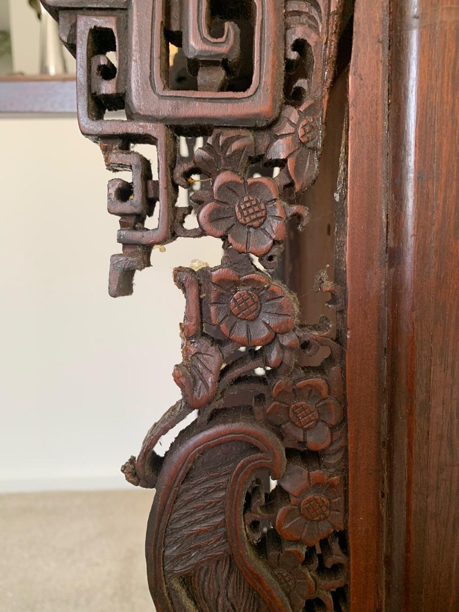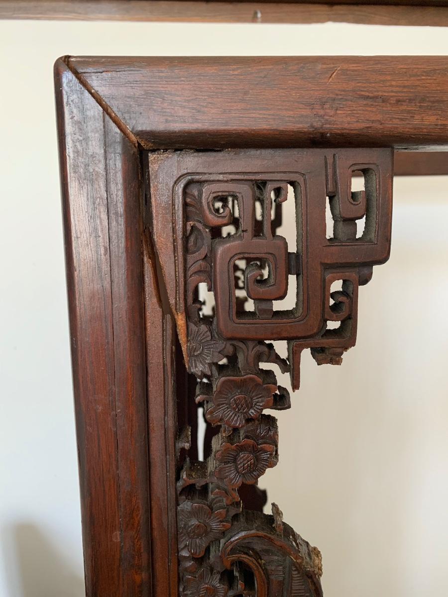 This end table is intricately carved however is was repaired at one time and will need to be