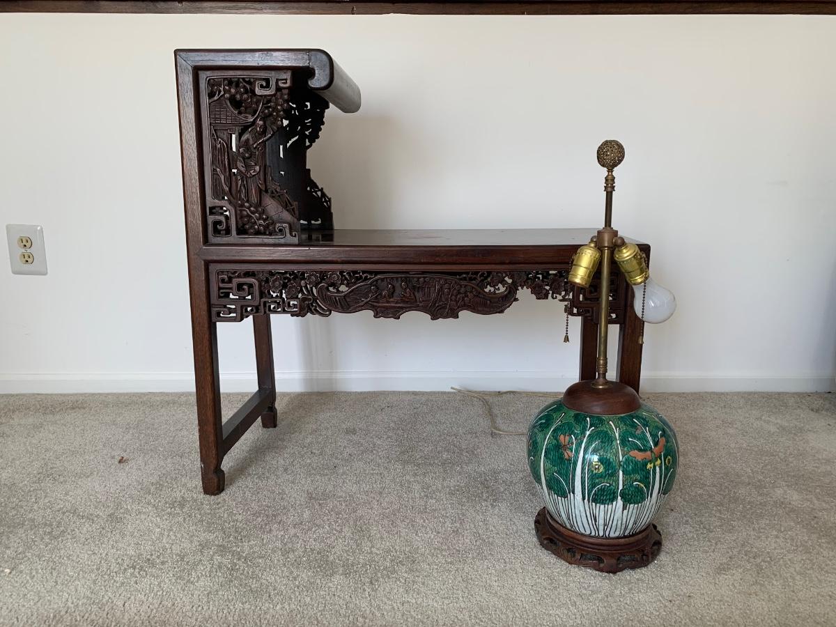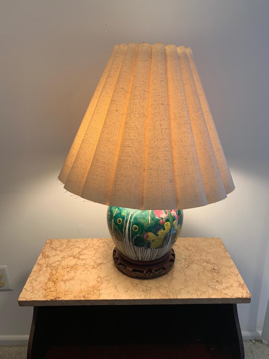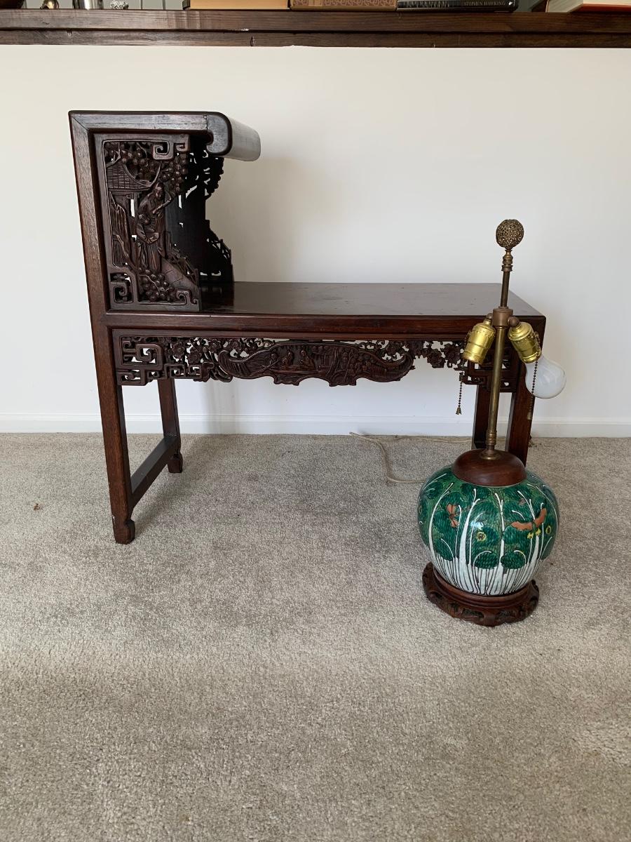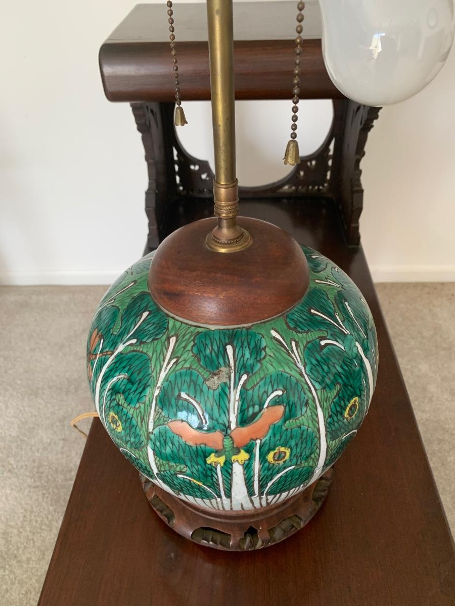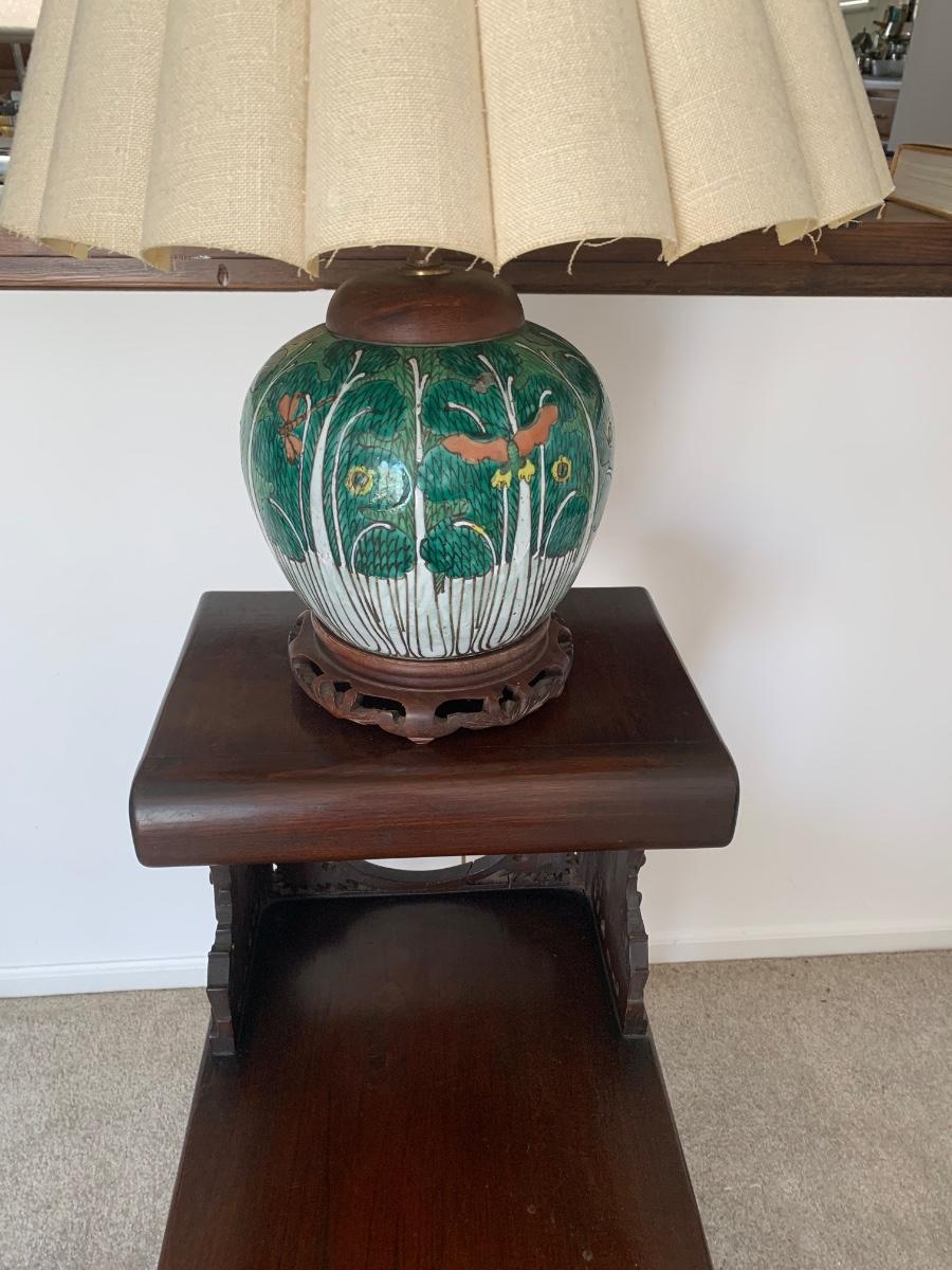 LOT 71: Vintage Painted Table Lamp & Carved End Step Table