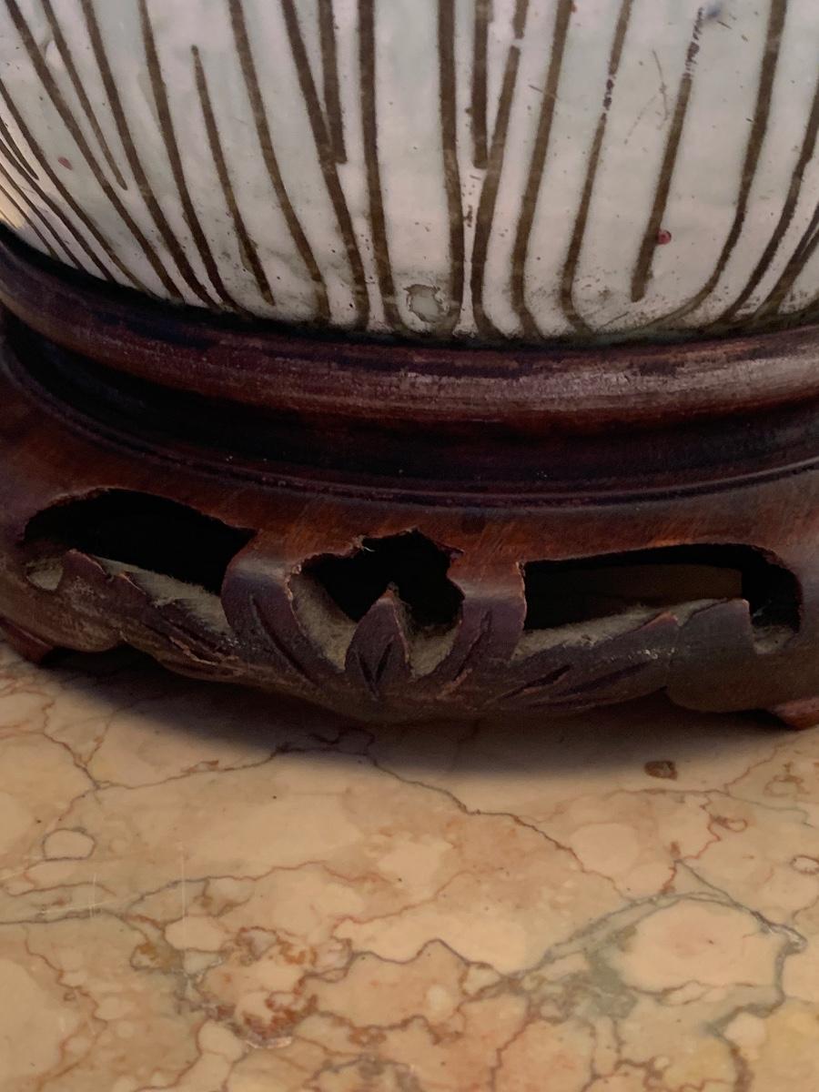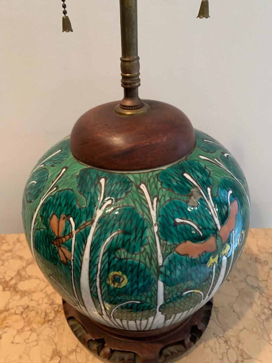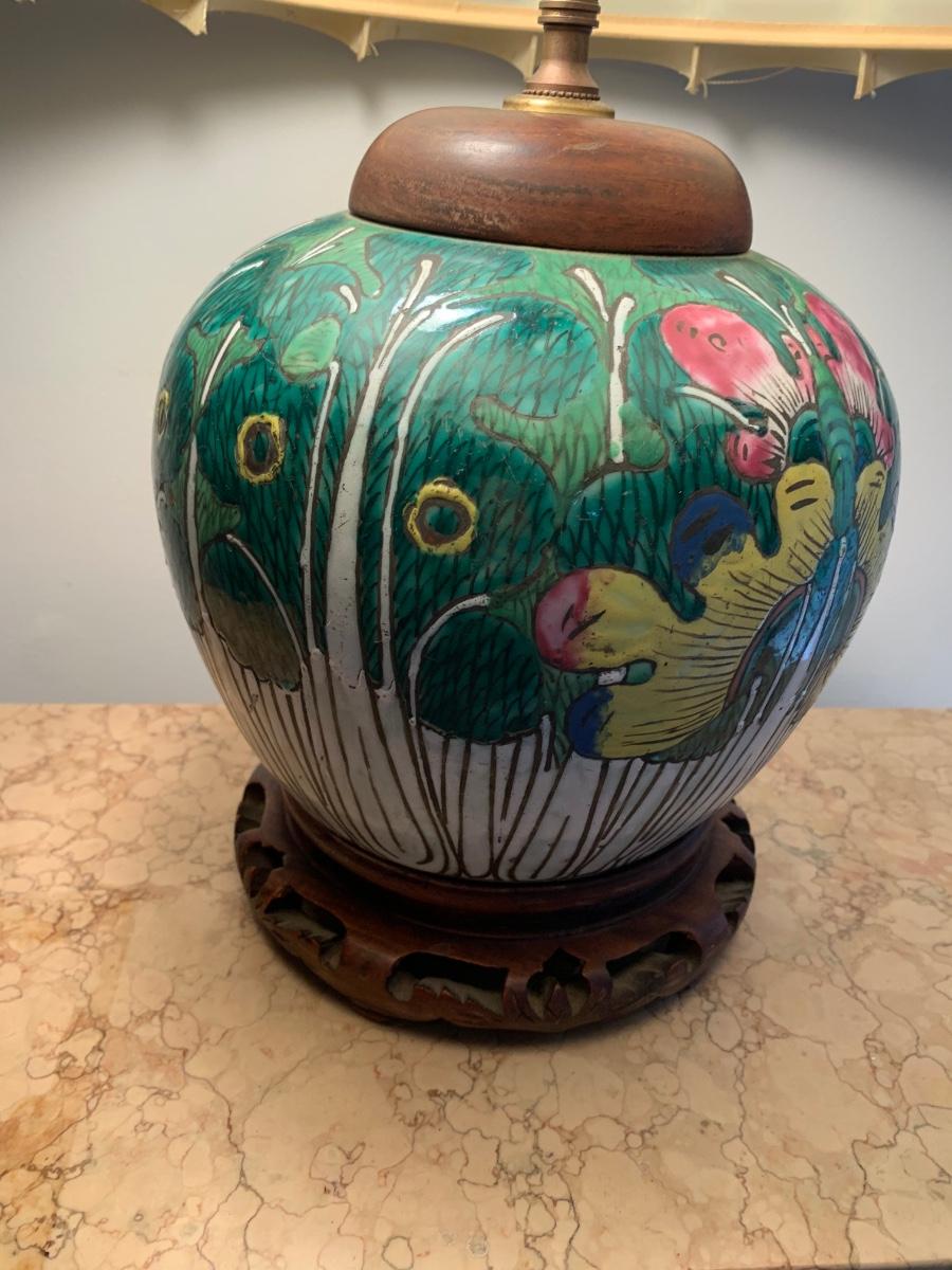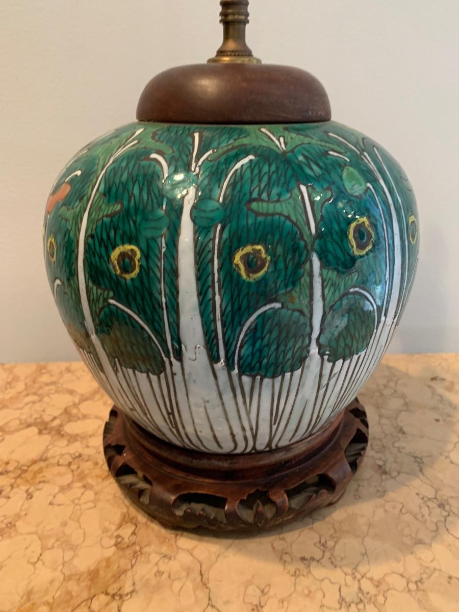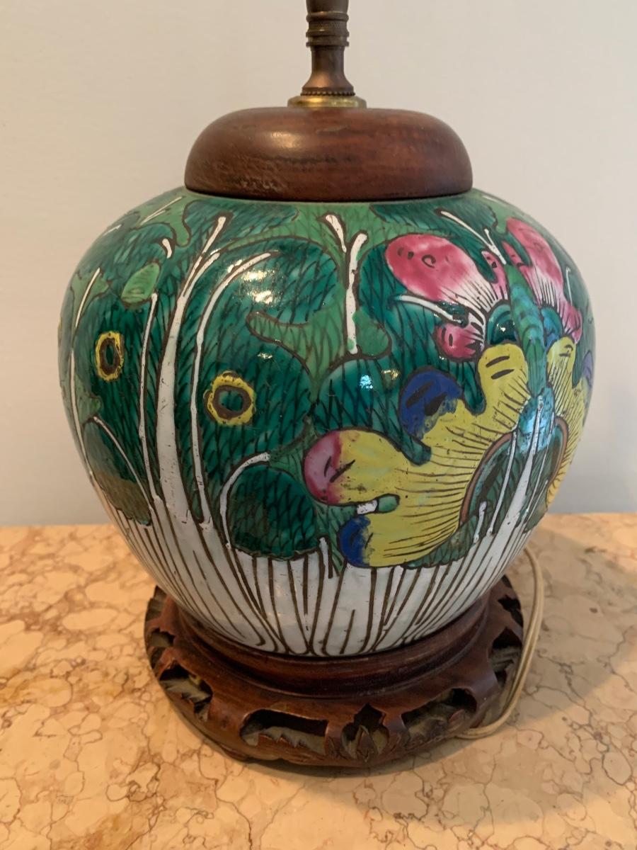 LOT 71: Vintage Painted Table Lamp & Carved End Step Table