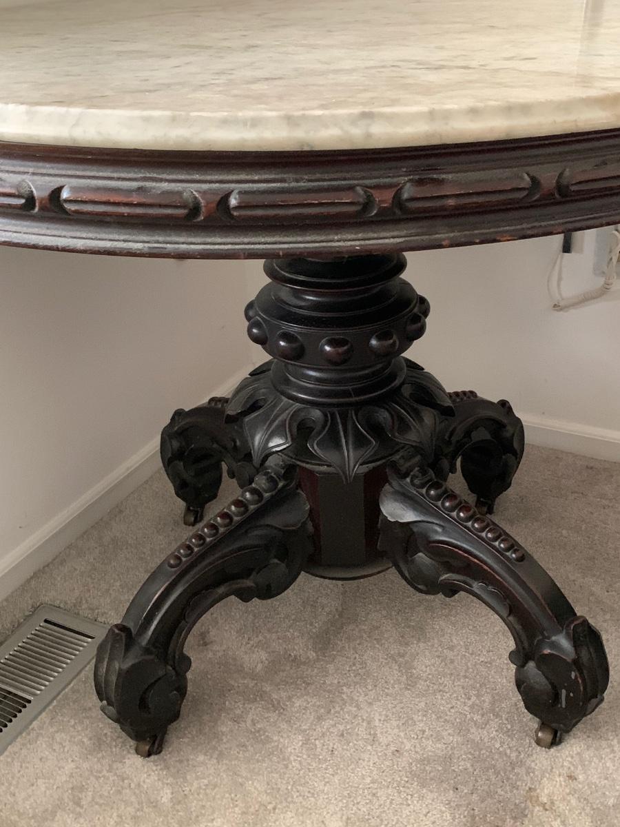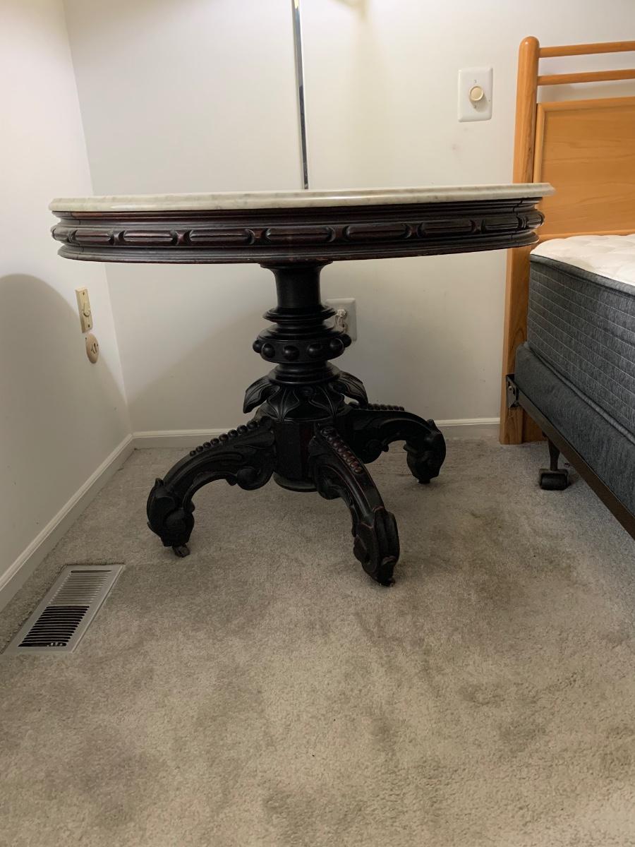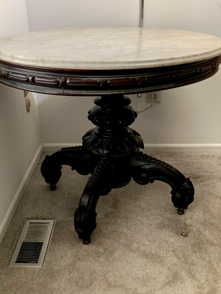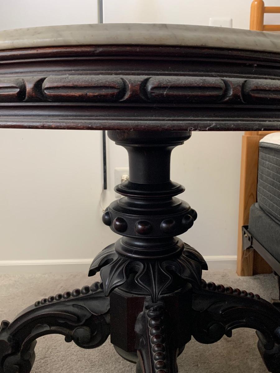 LOT 87R Antique Oval Carved Table w/Marble Top