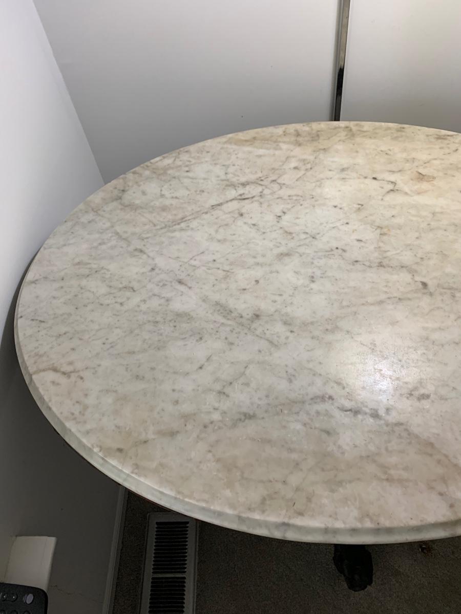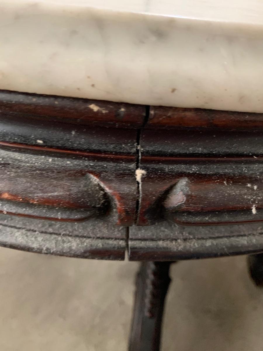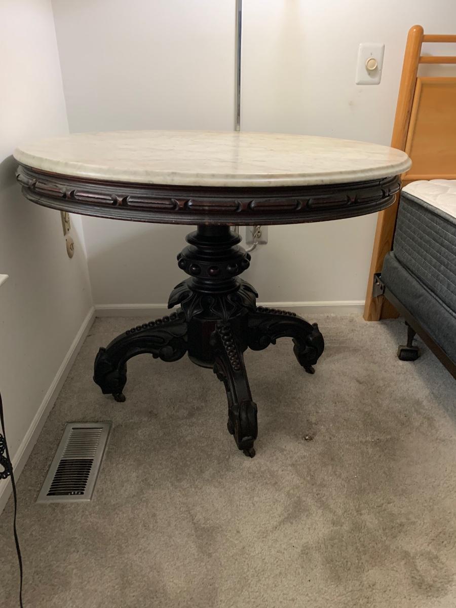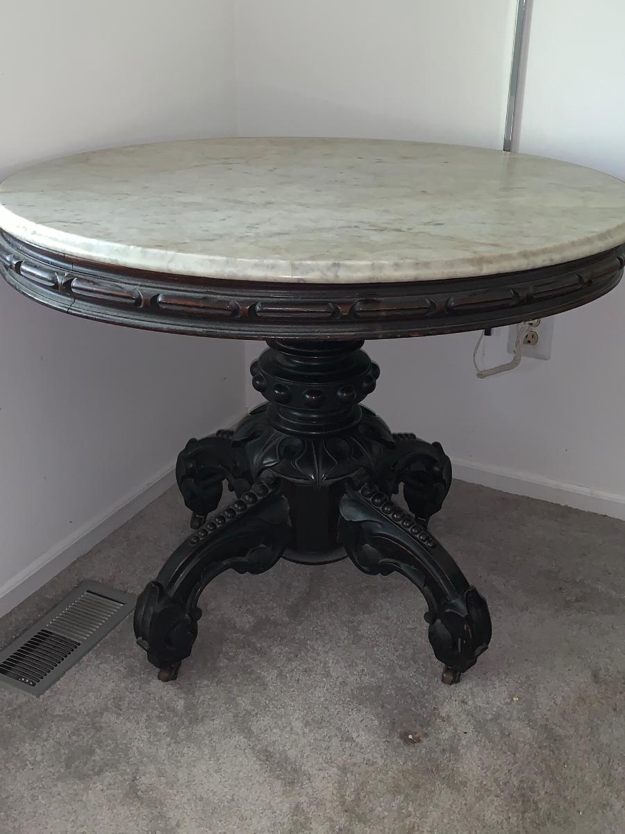 LOT 87R Antique Oval Carved Table w/Marble Top
