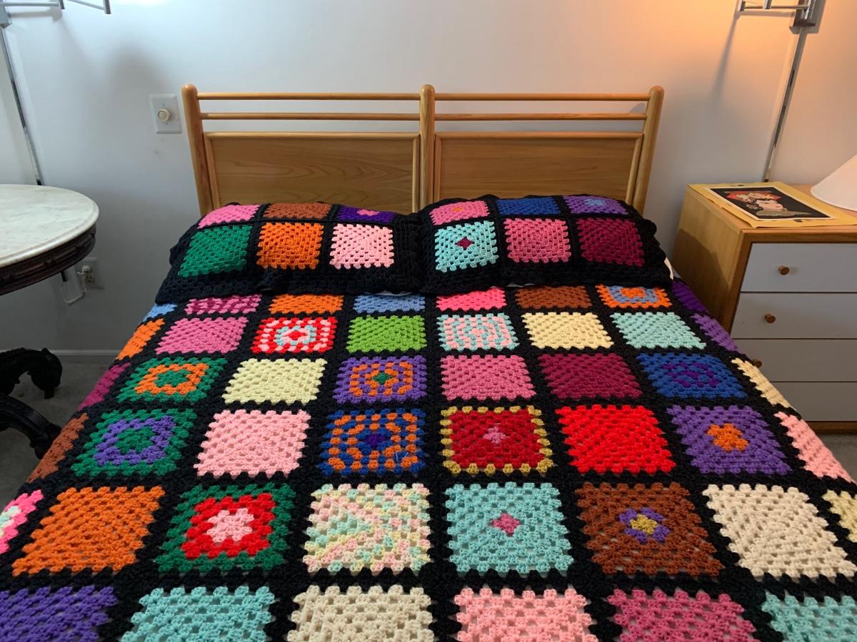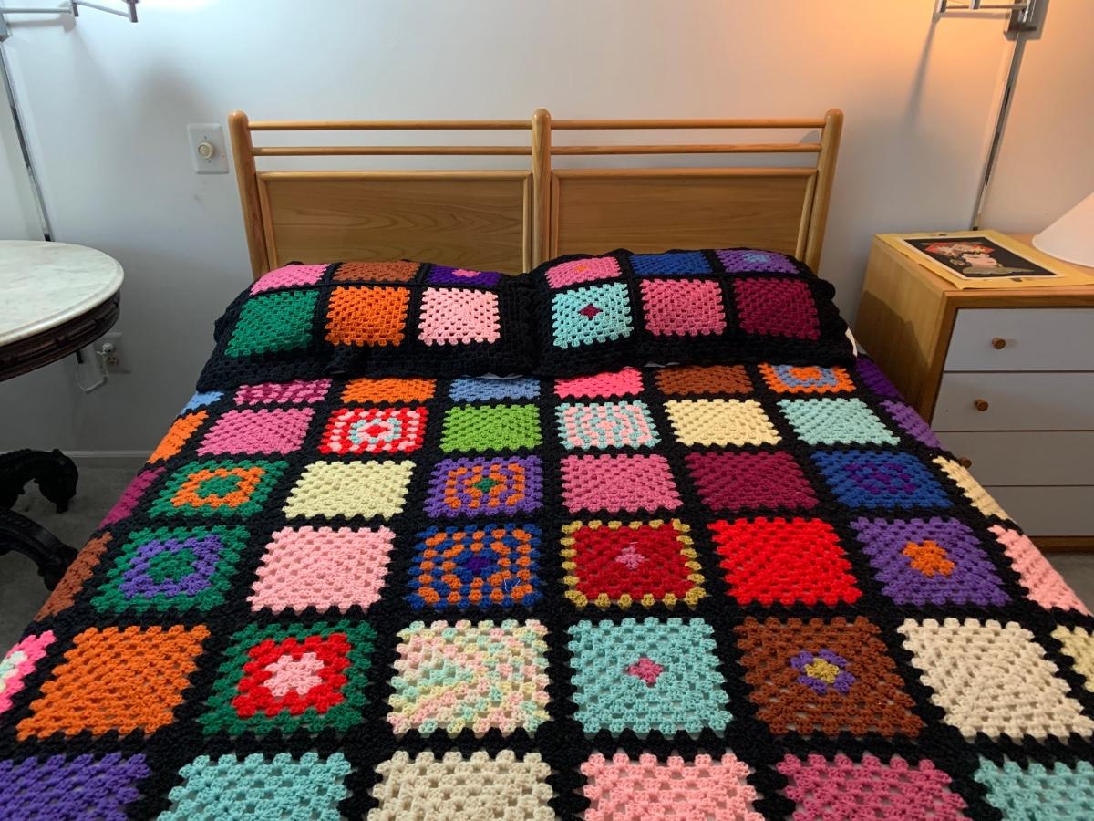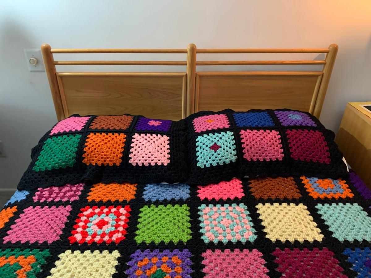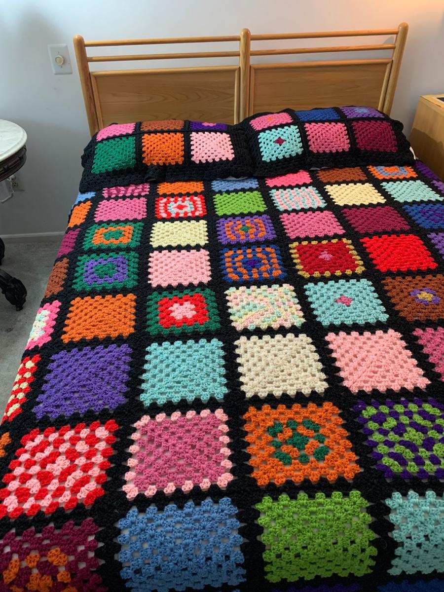 LOT 90R: Beautiful Handmade Afghan w/ Matching Pillow Shams