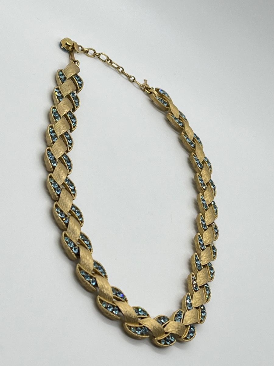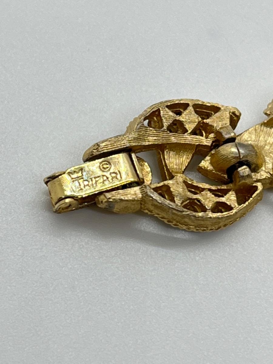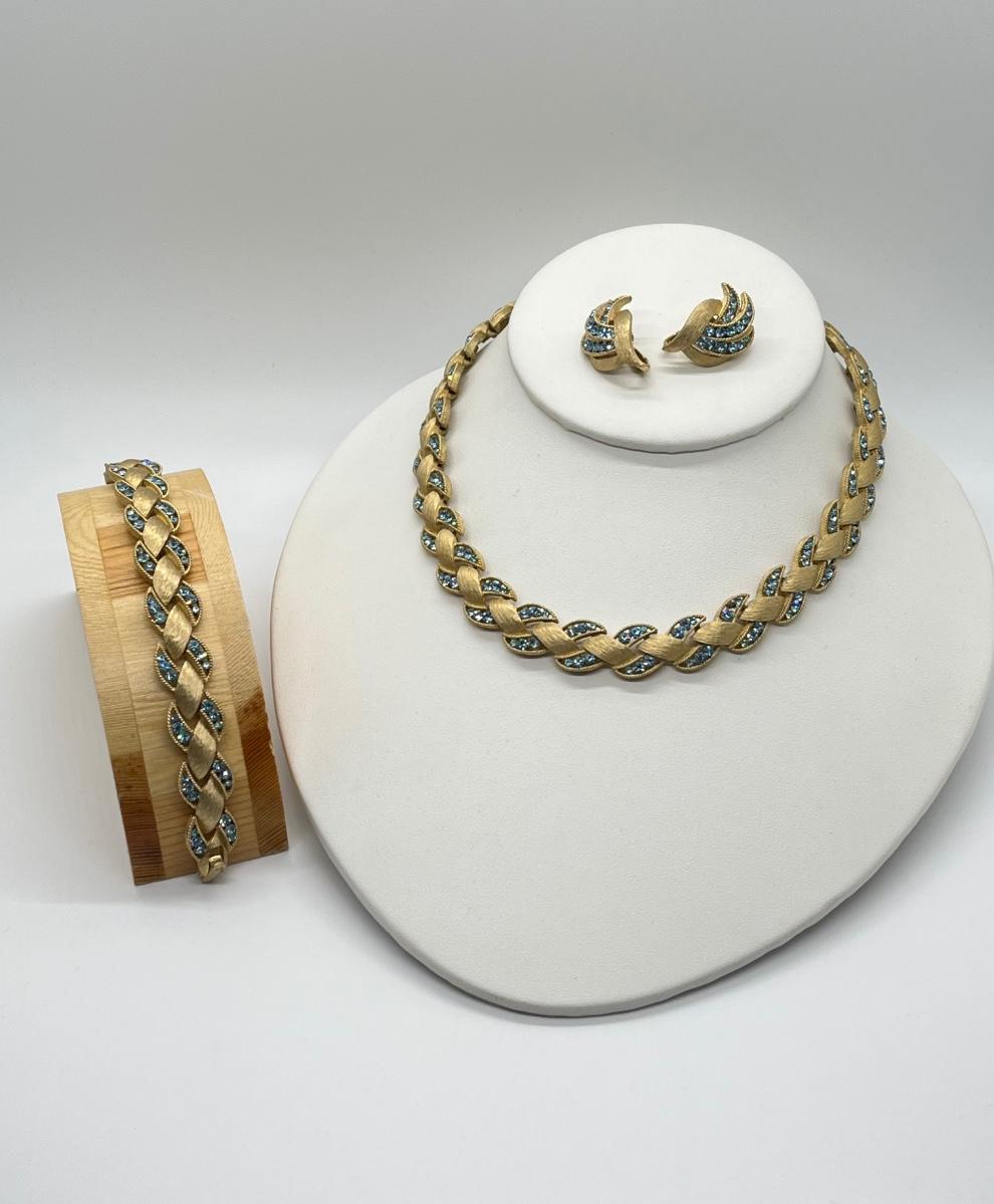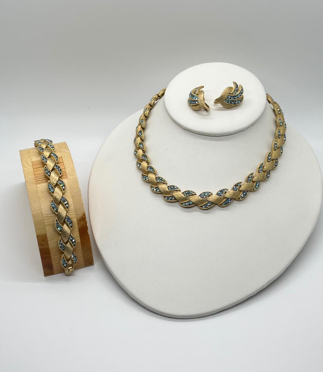 LOT 126: Crown Trifari Mid Century Goldtone Parure - Necklace (14" + 2" Ext.) Bracelet (7") & Clip-On Earrings
