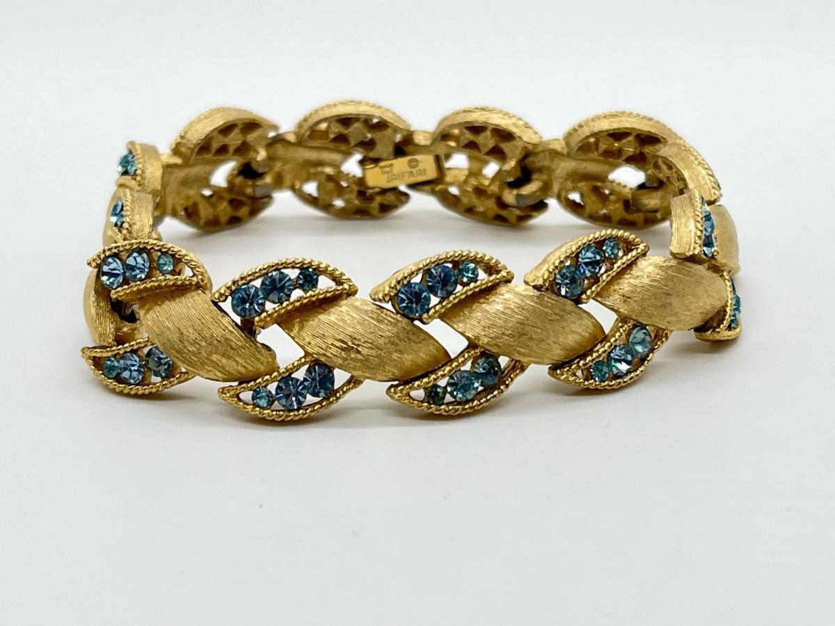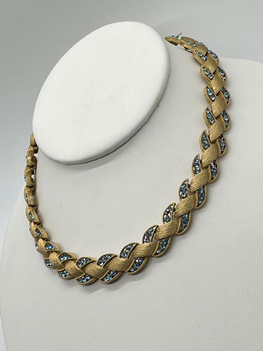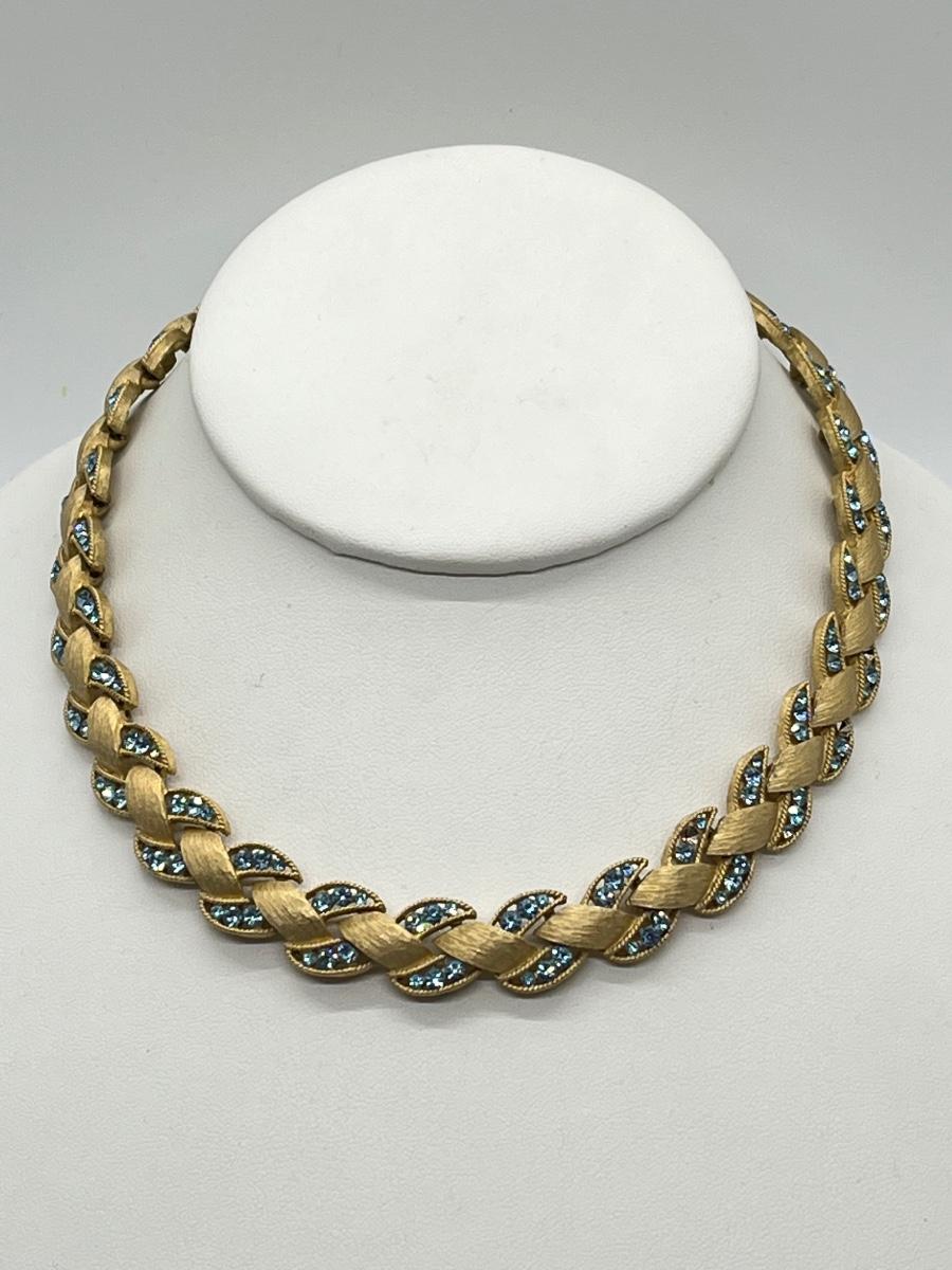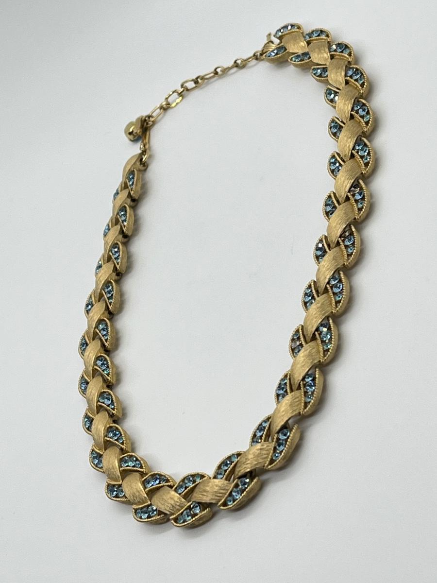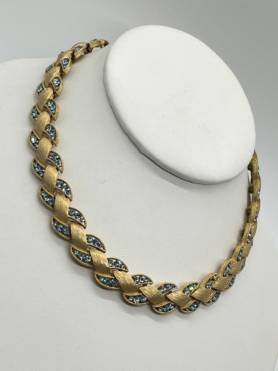 LOT 126: Crown Trifari Mid Century Goldtone Parure - Necklace (14" + 2" Ext.) Bracelet (7") & Clip-On Earrings