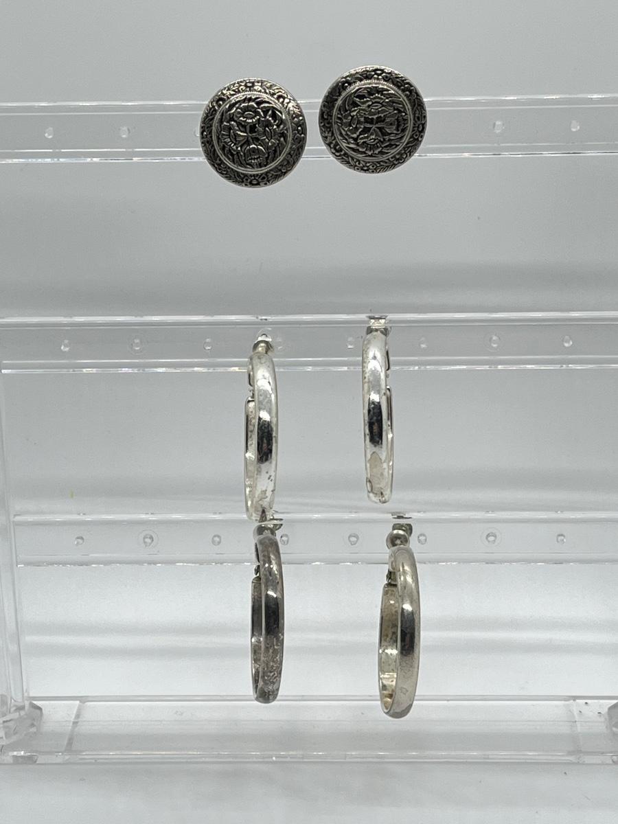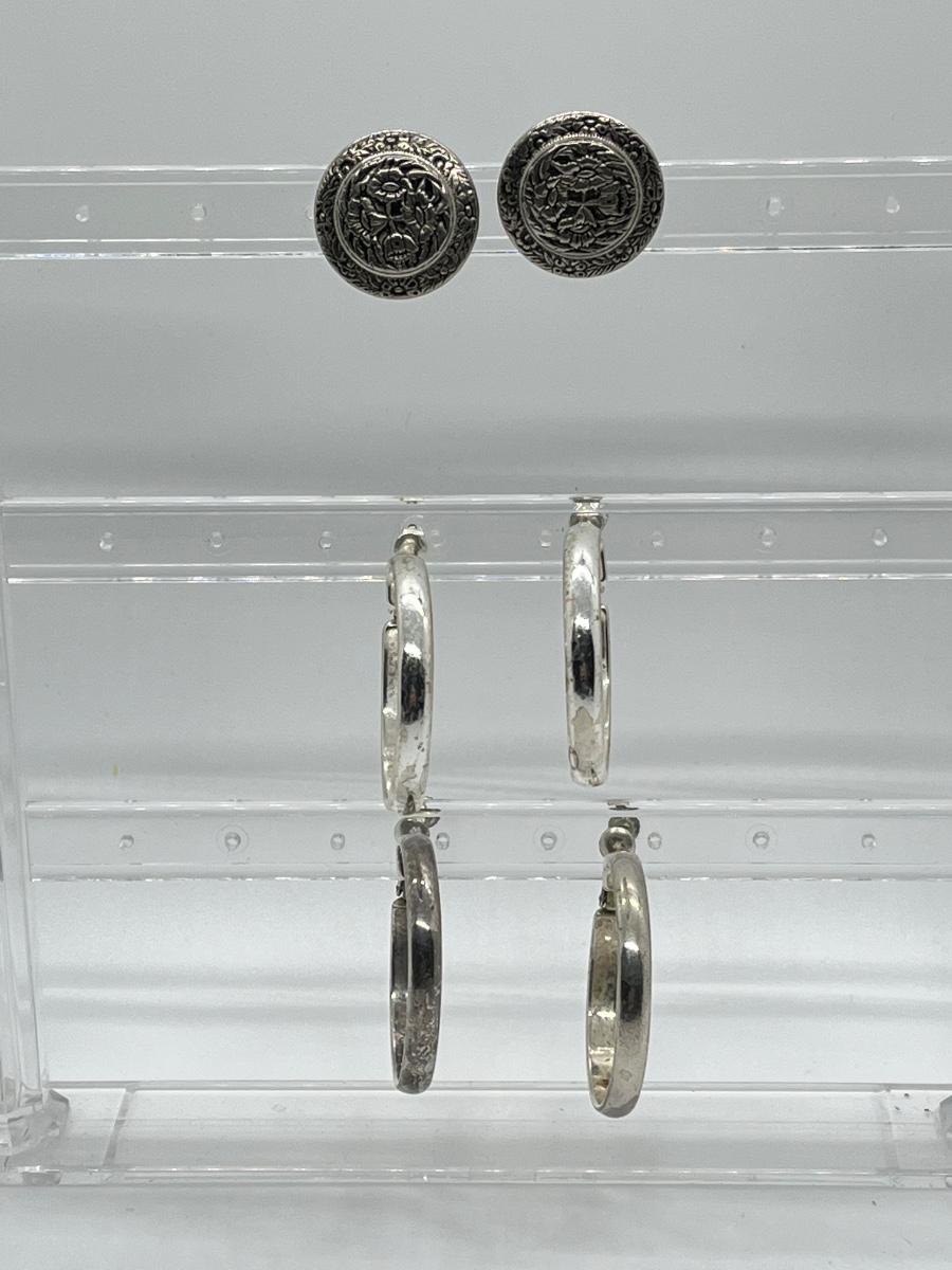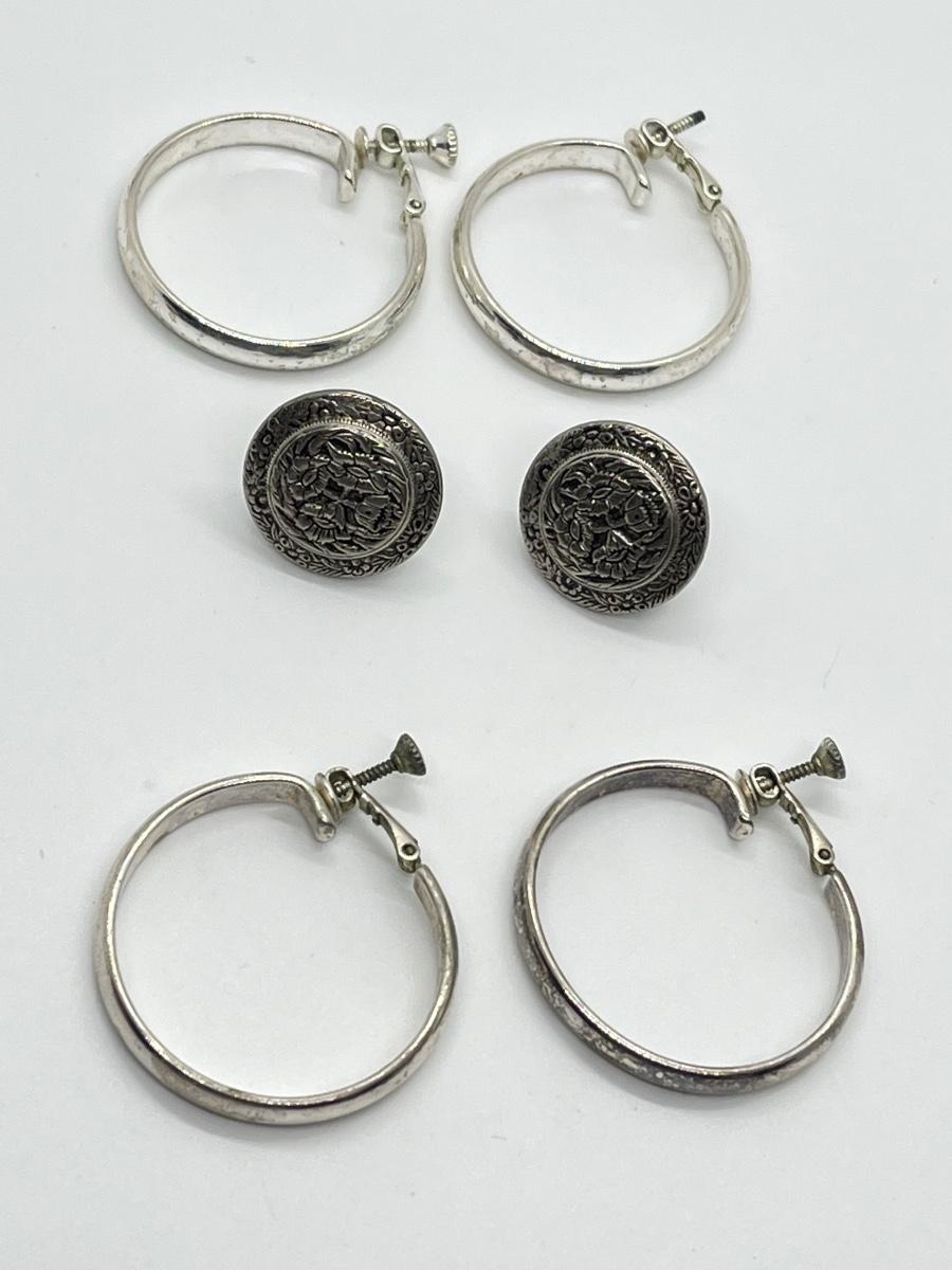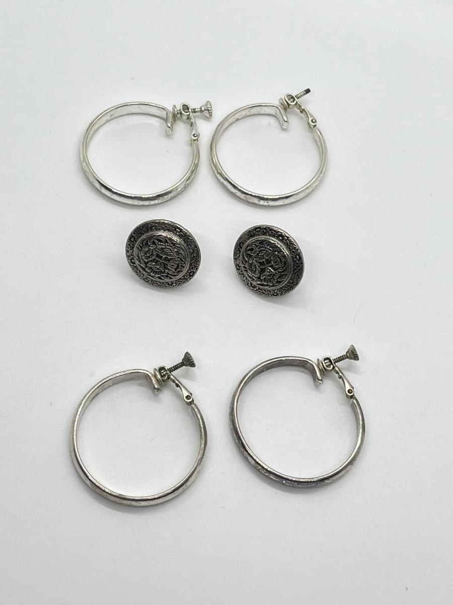 LOT 128: Three Pairs of Vintage Screwback Silvertone Costume Jewelry Earrings (One Missing Part of Screw)