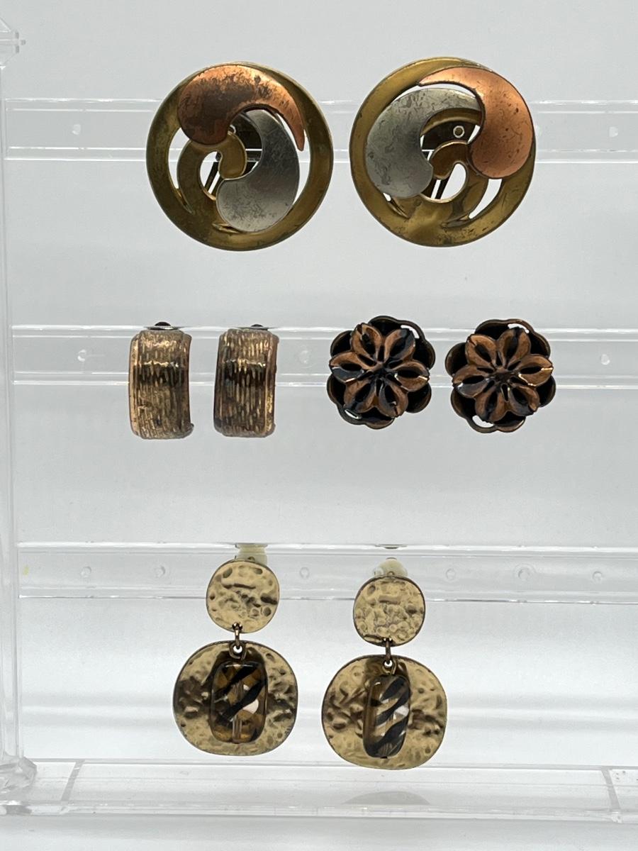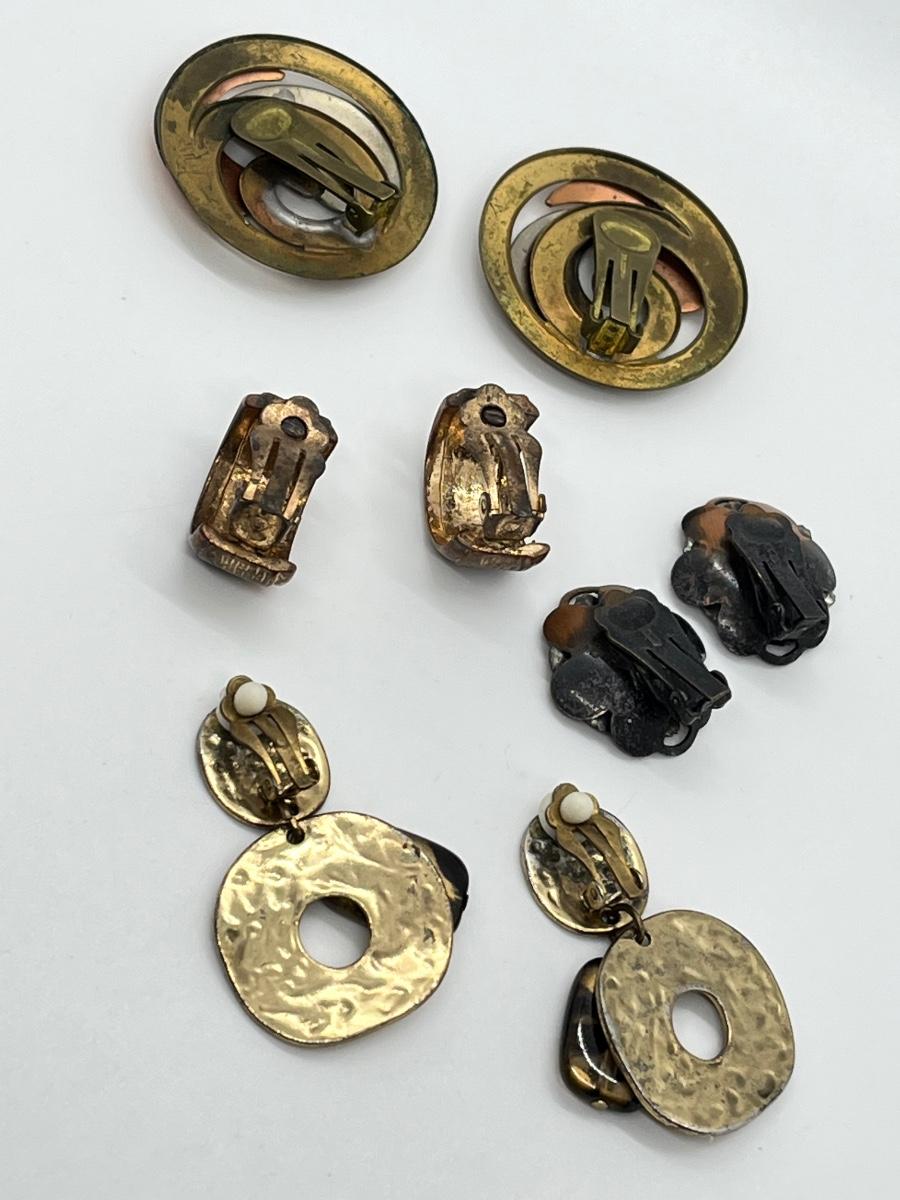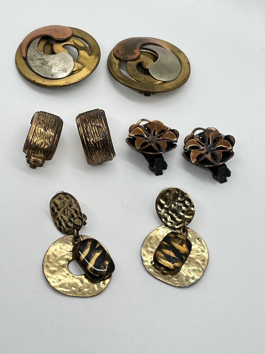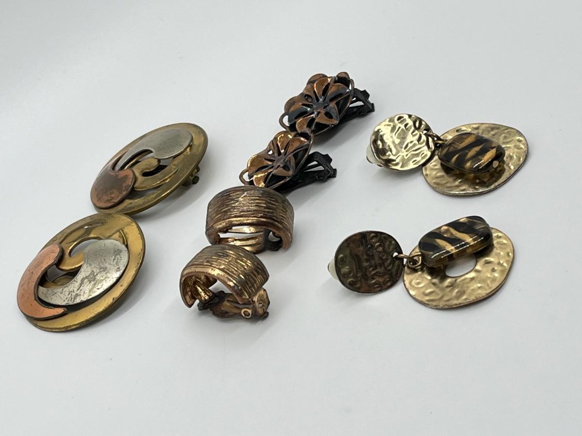 LOT 129: Vintage Clip-On Brass/Coppertone Costume Jewelry Earrings - 4 Pairs