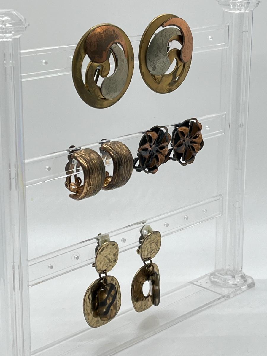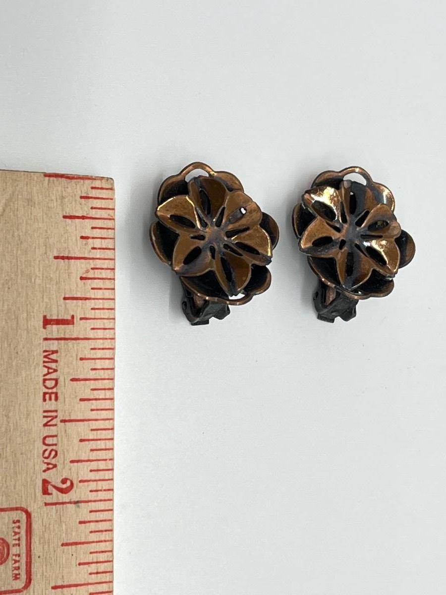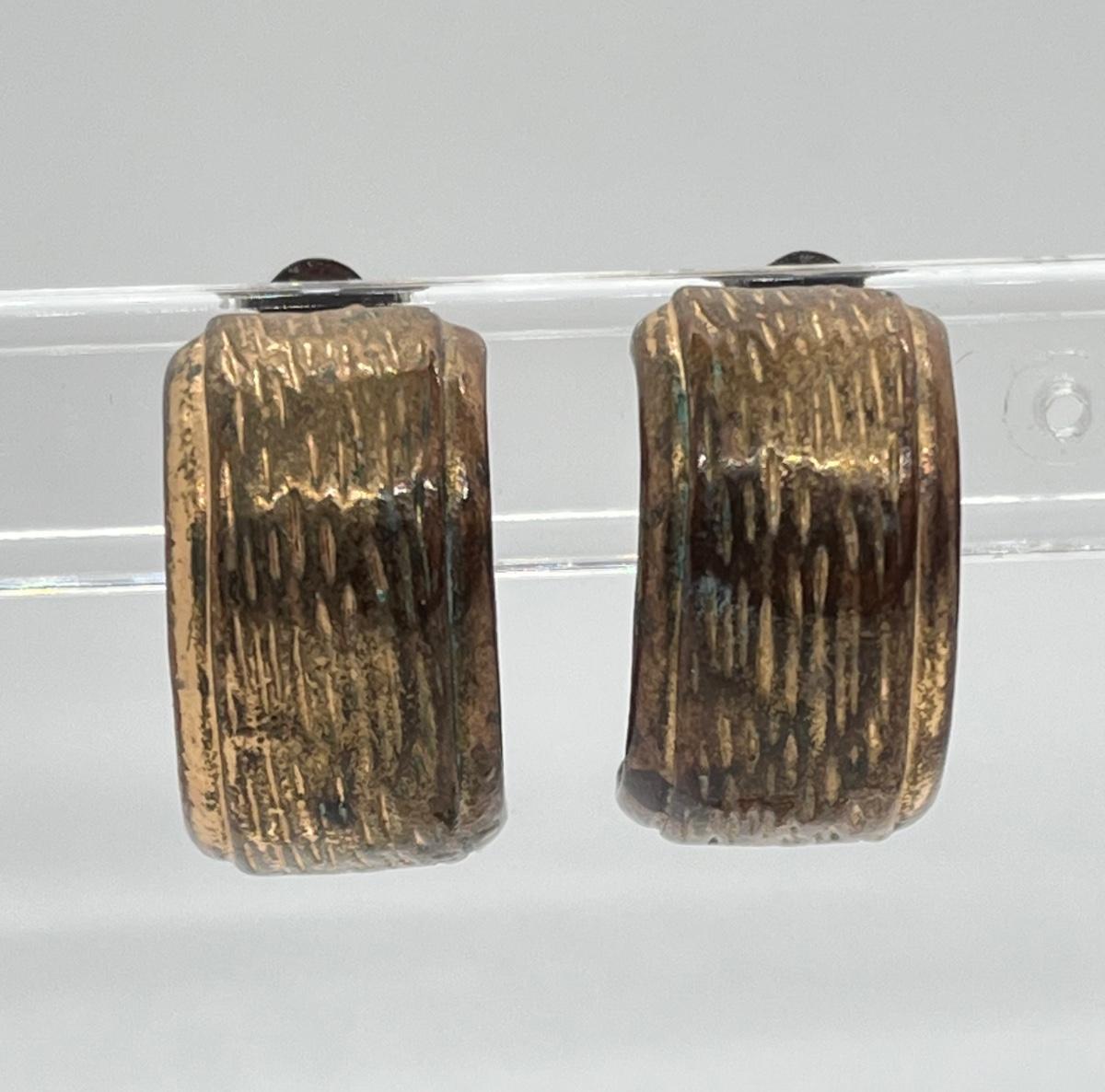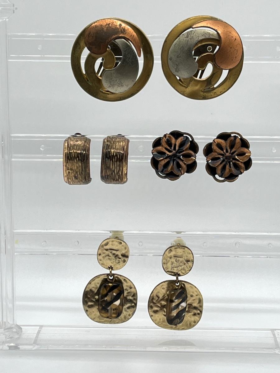 LOT 129: Vintage Clip-On Brass/Coppertone Costume Jewelry Earrings - 4 Pairs