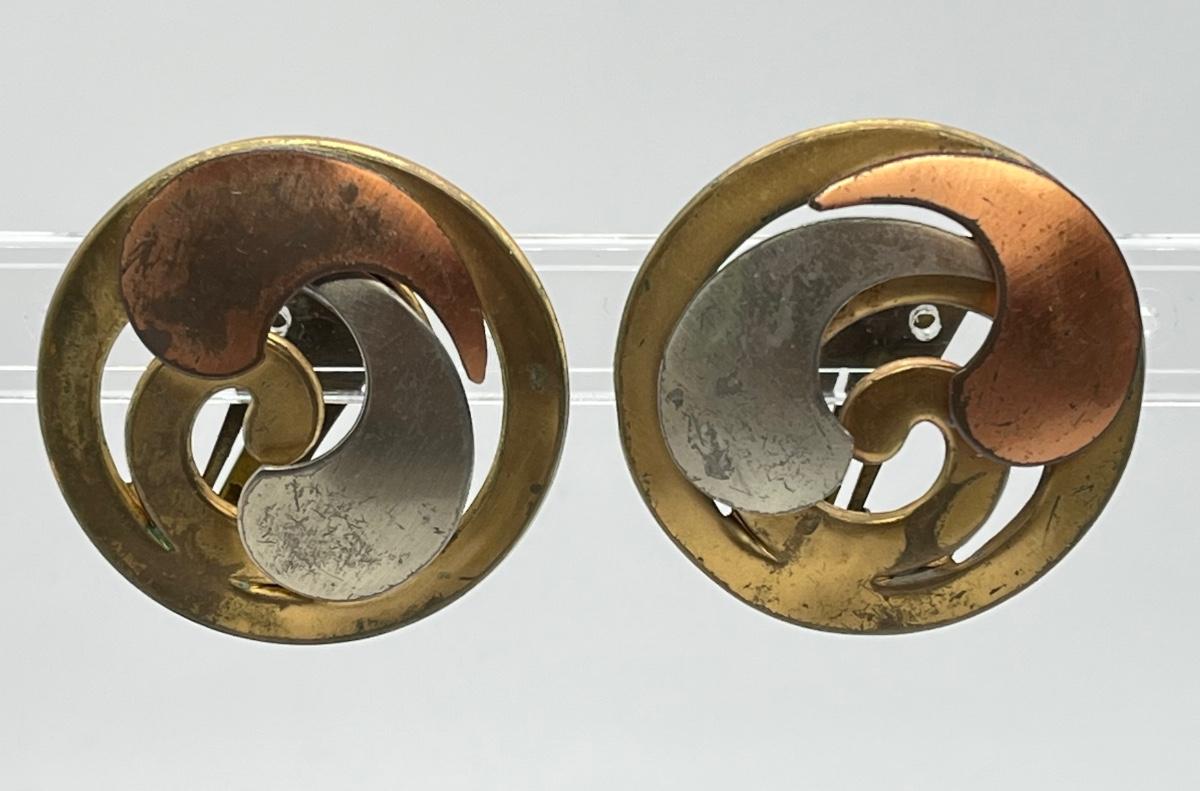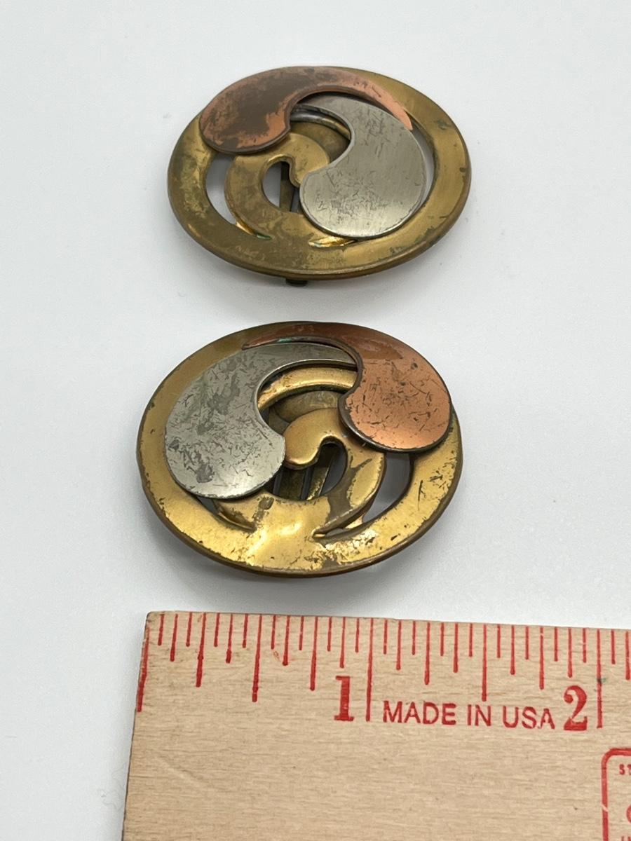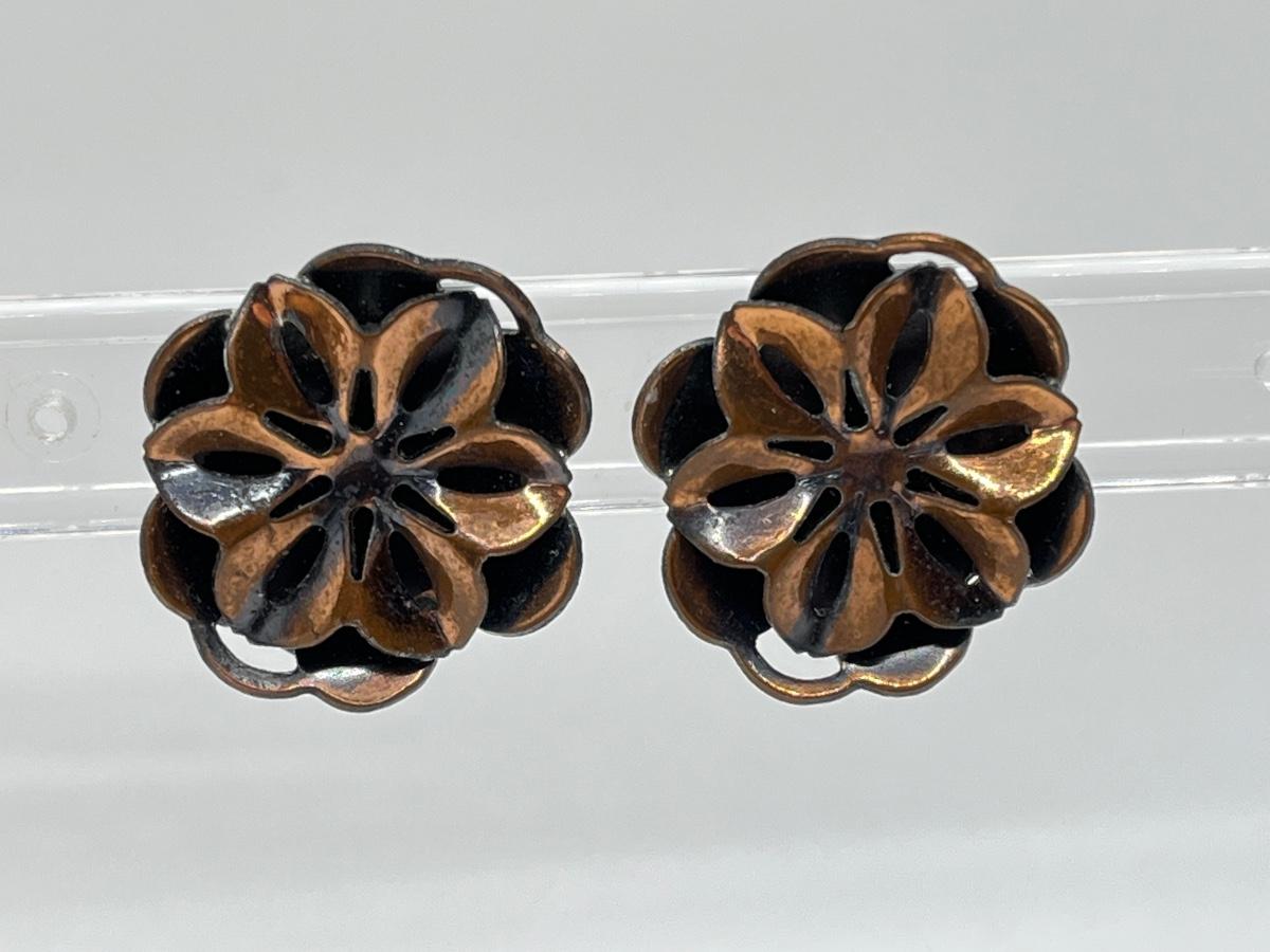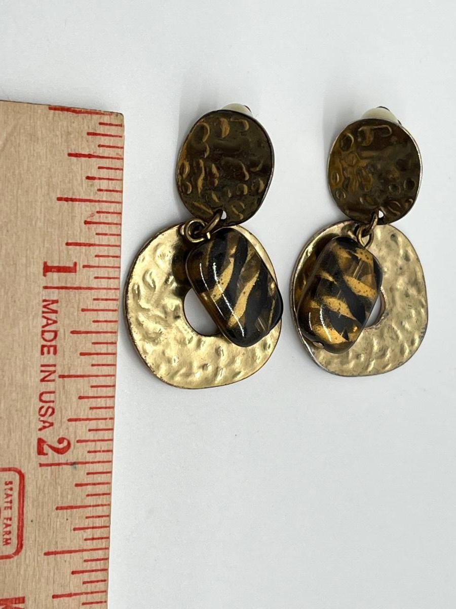 LOT 129: Vintage Clip-On Brass/Coppertone Costume Jewelry Earrings - 4 Pairs