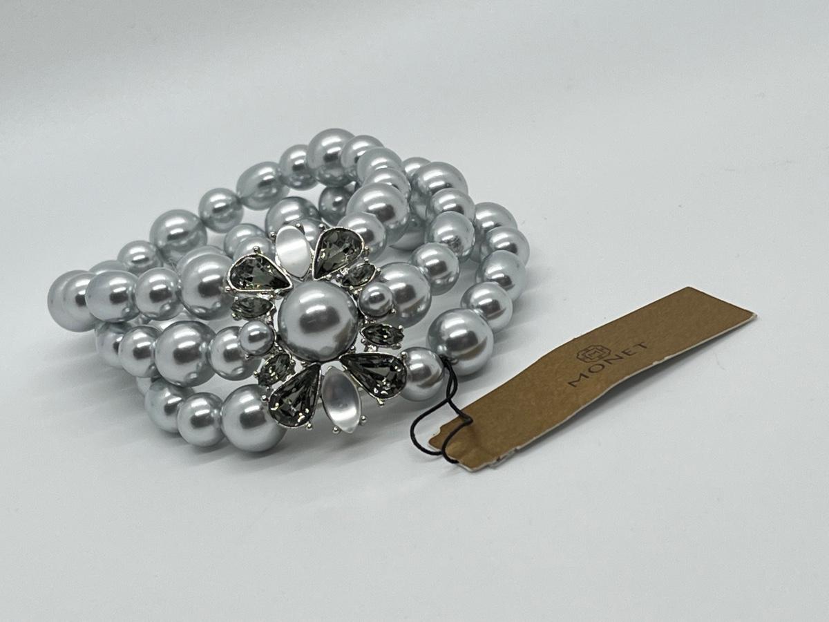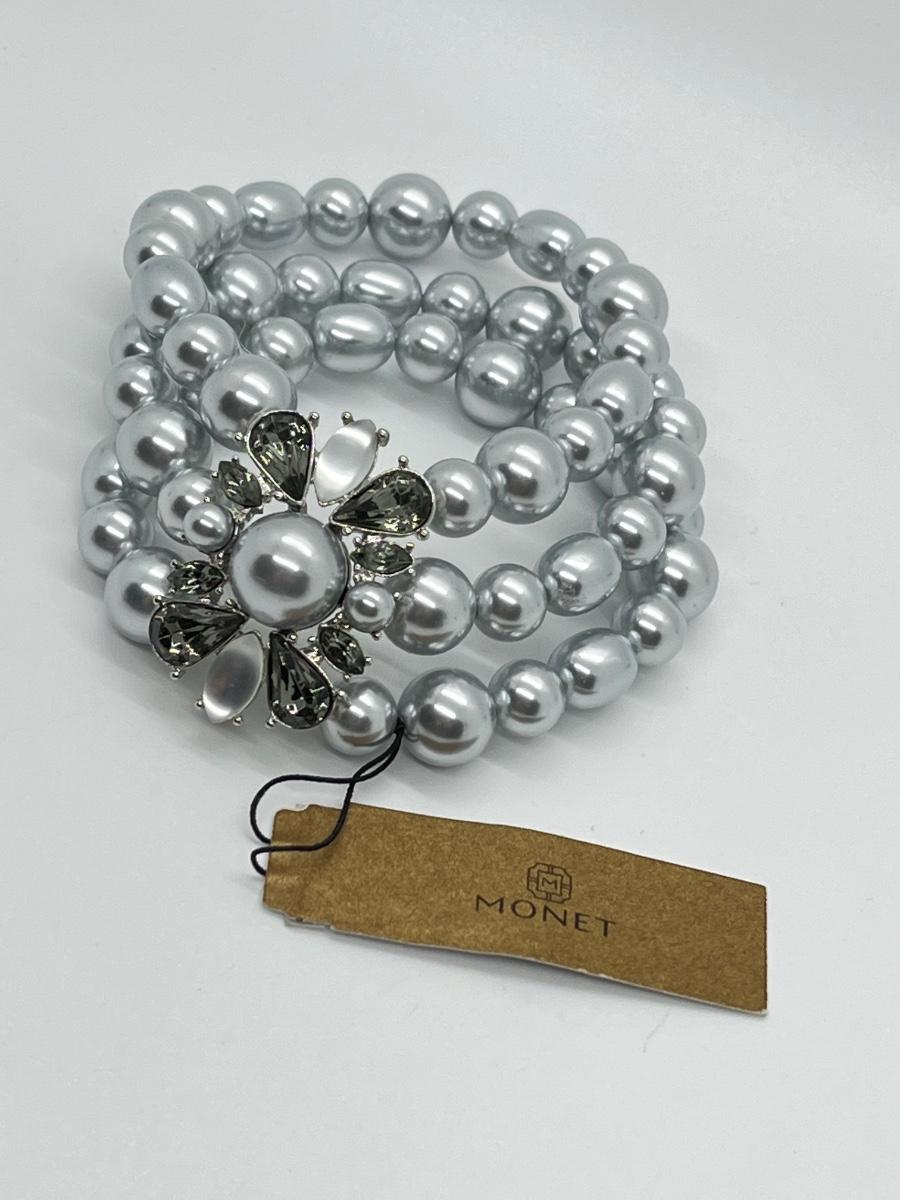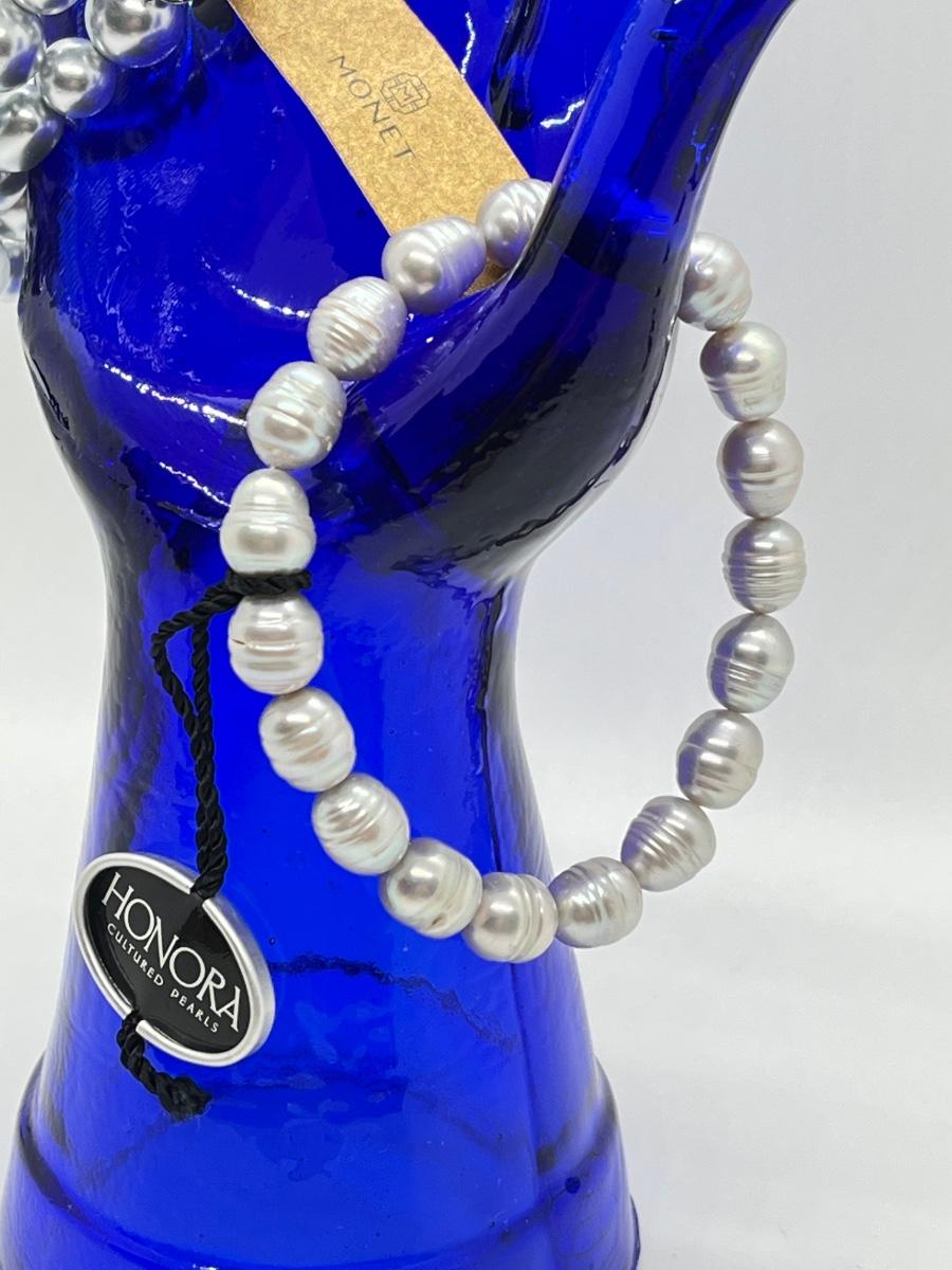 LOT 130: Two Gray "Pearl" Stretch Bracelets - Honora & Monet
