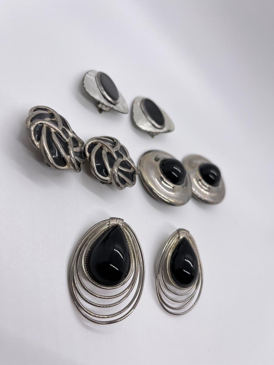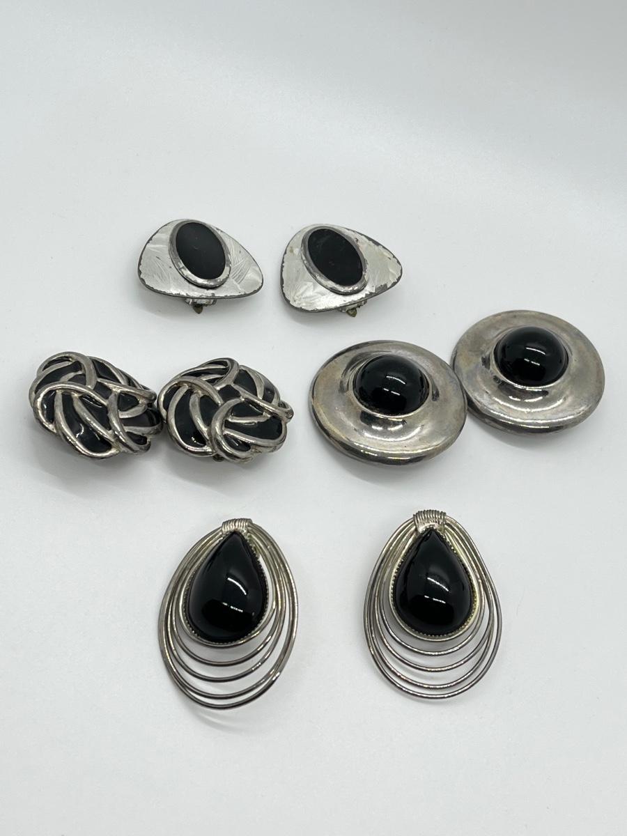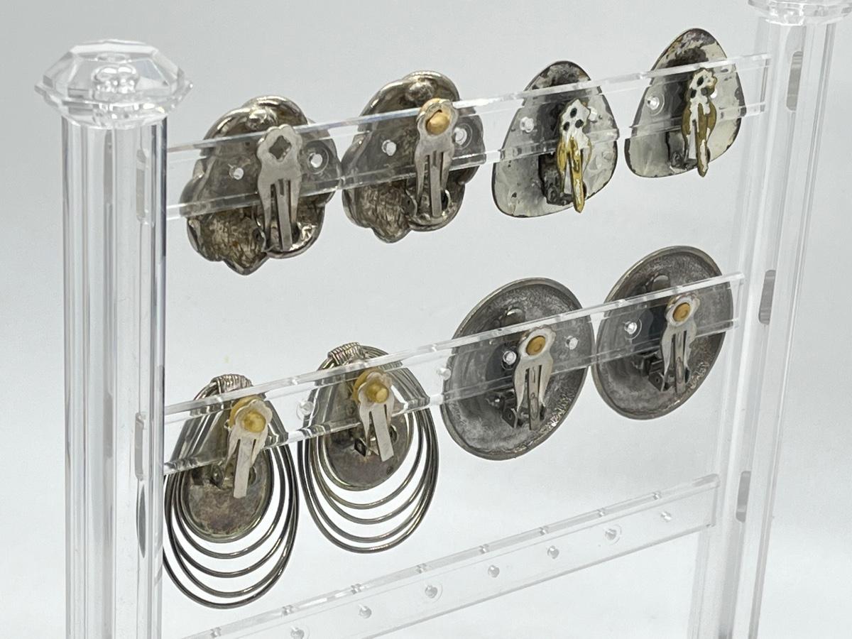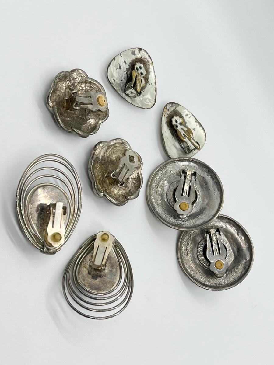 LOT 131: Four Pairs of Large Silvertone Clip-On Costume Earrings