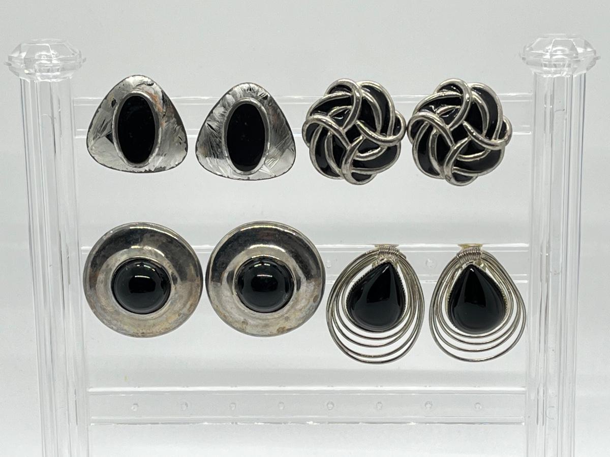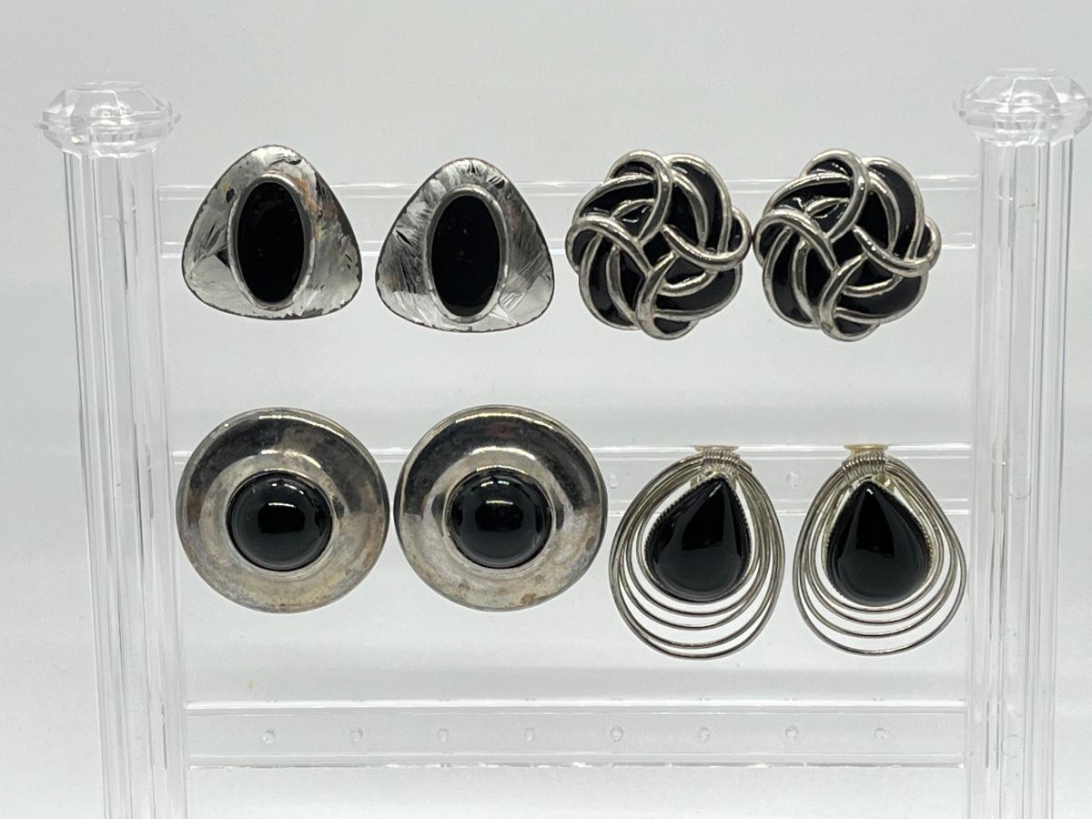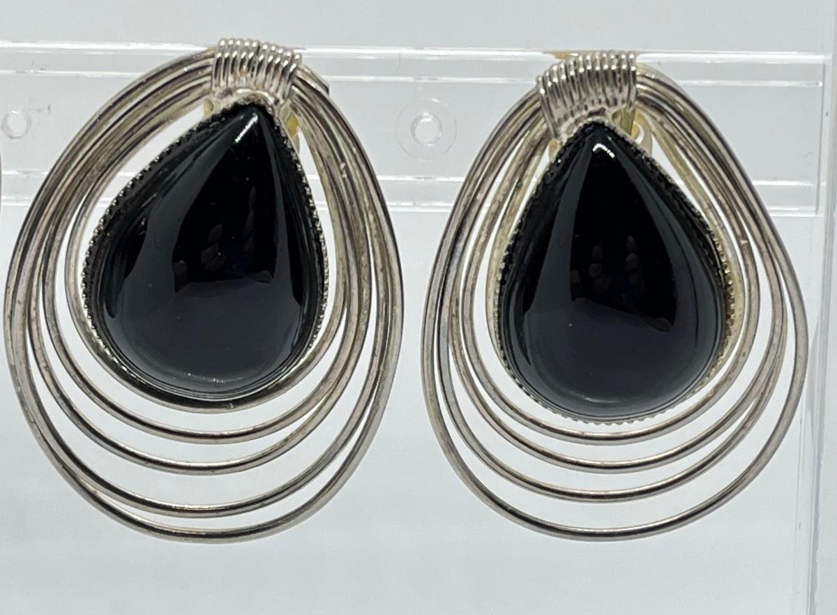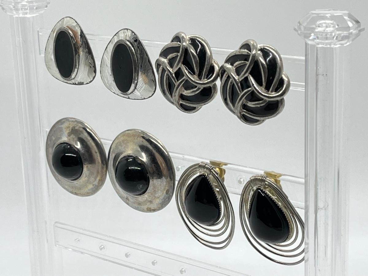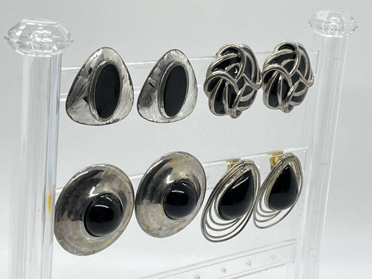 LOT 131: Four Pairs of Large Silvertone Clip-On Costume Earrings