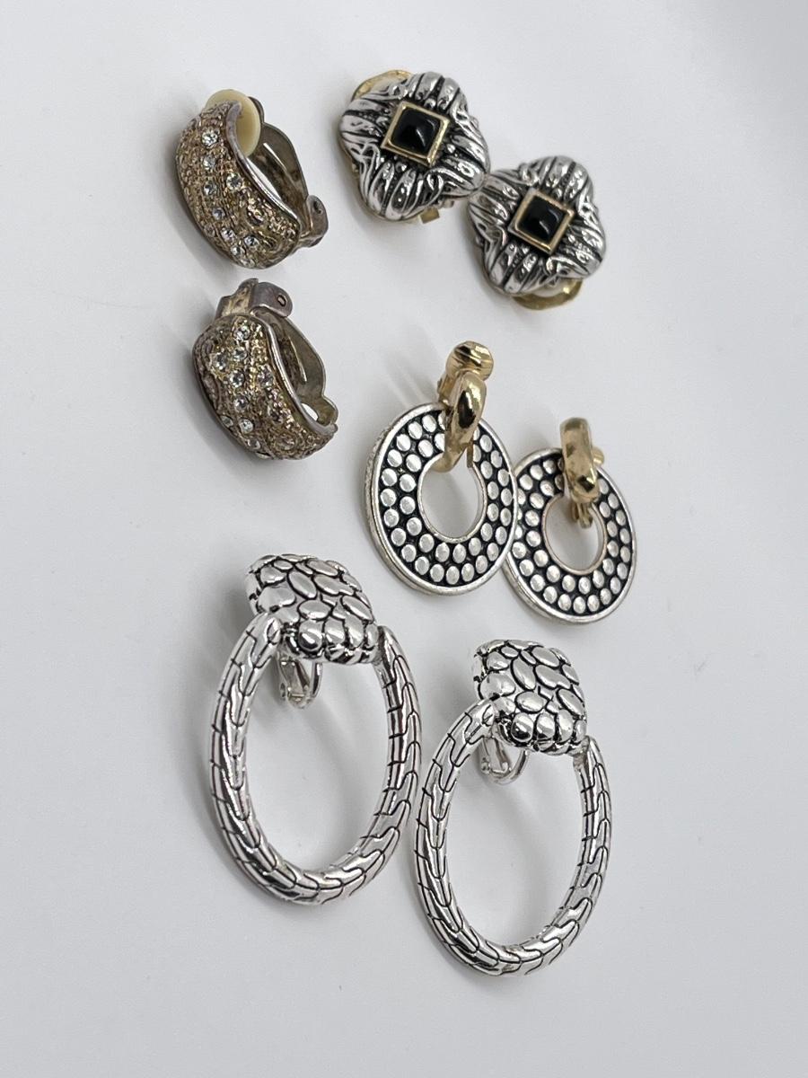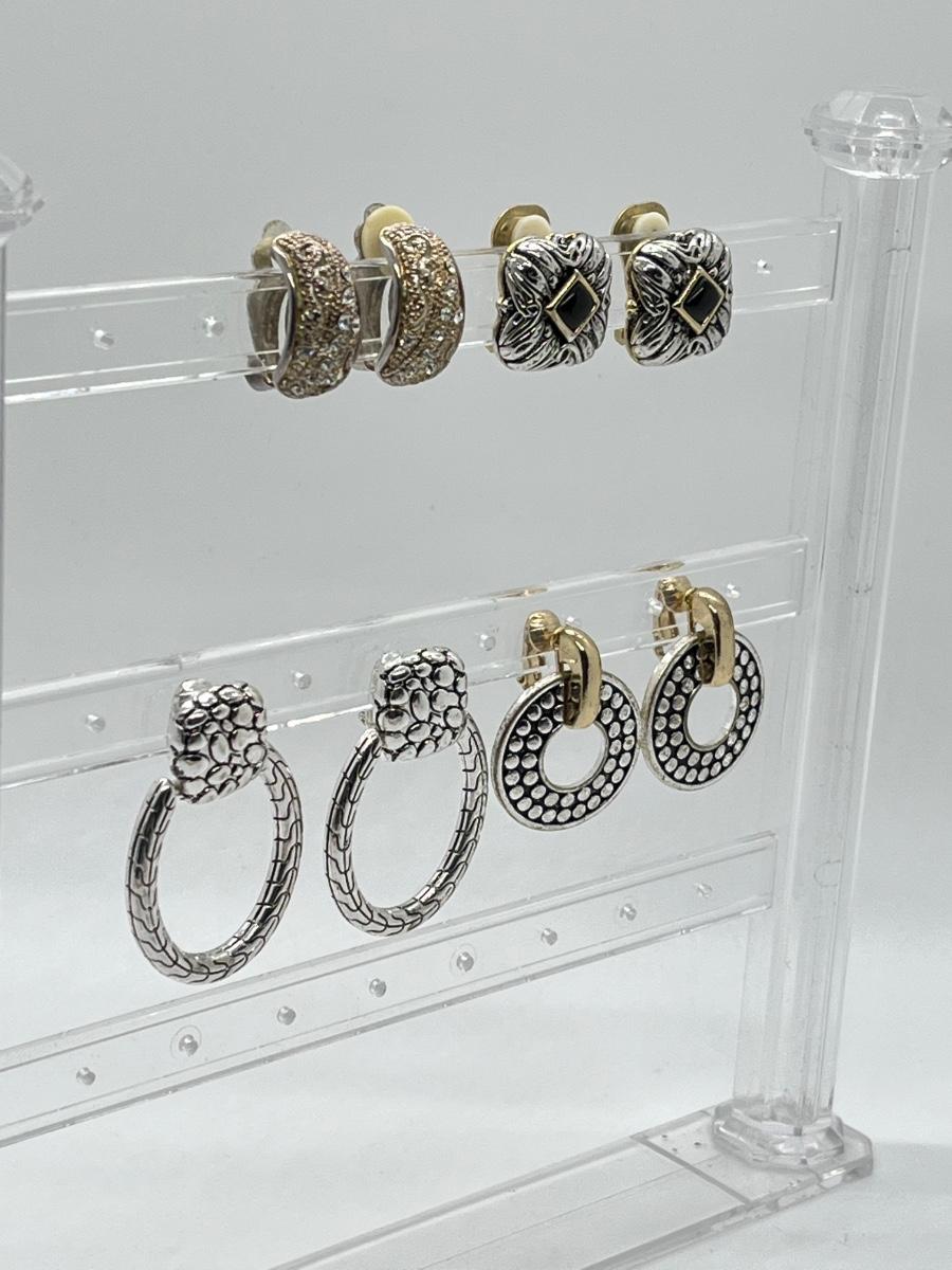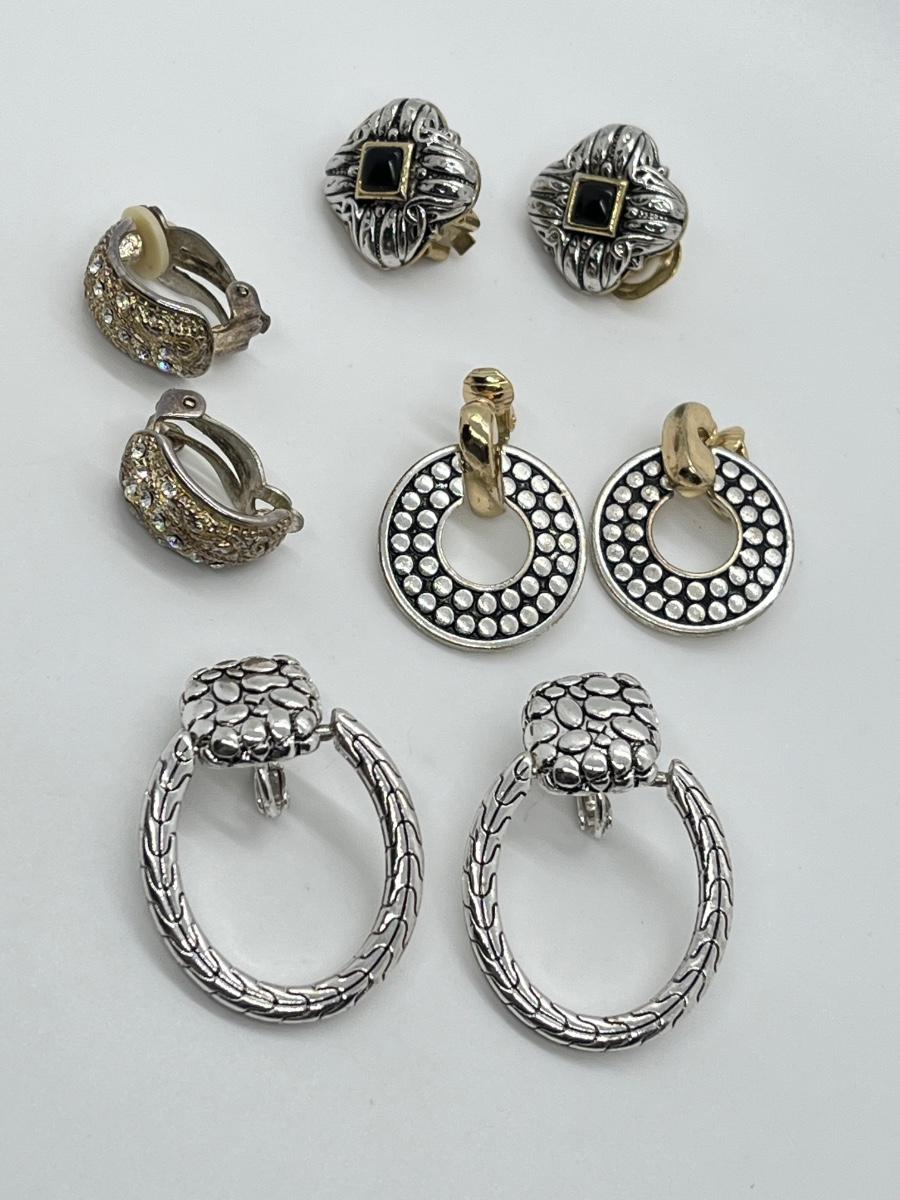 LOT 132: Clip-On Silvertone Costume Jewelry Earrings - 4 Pairs