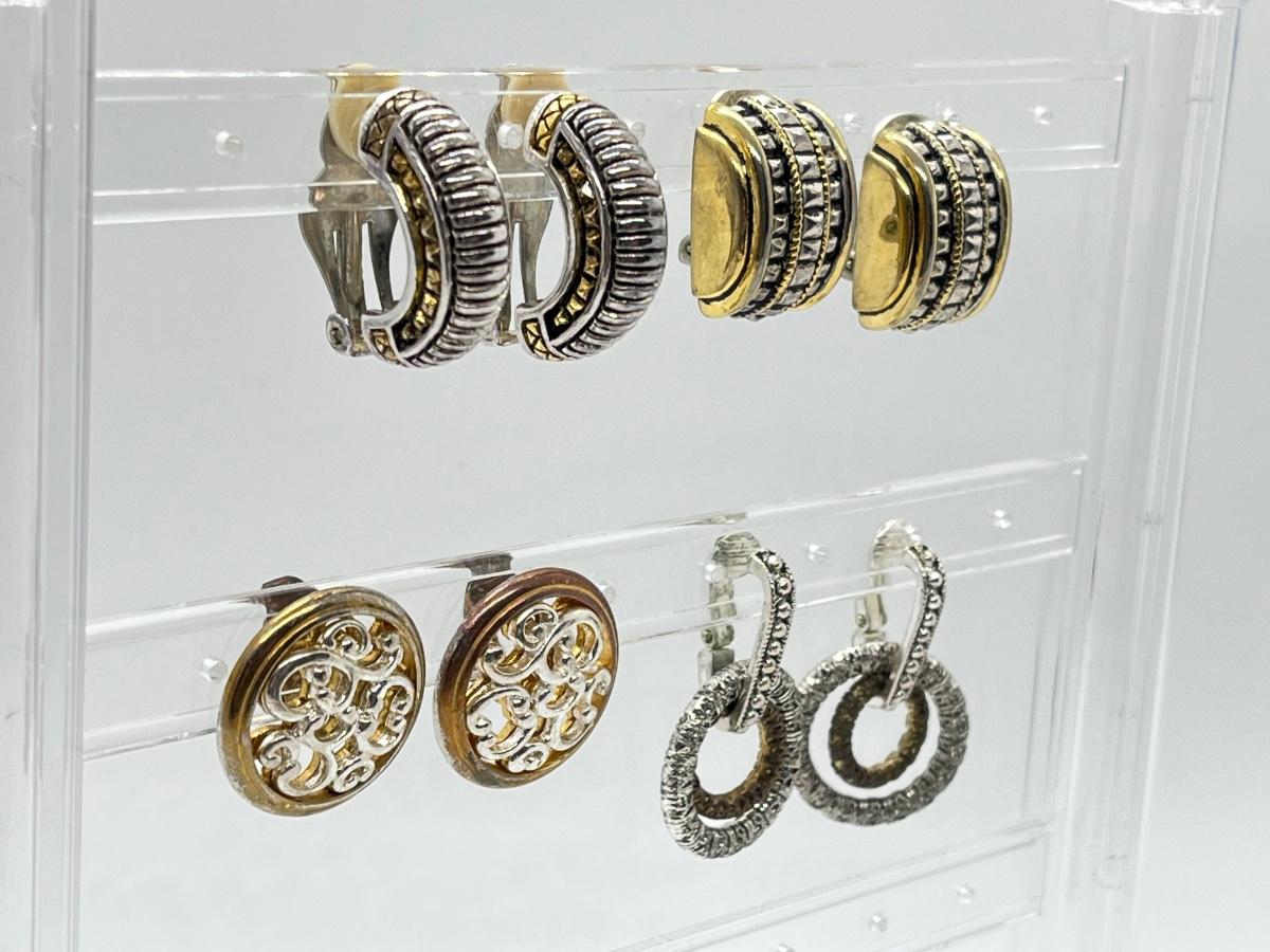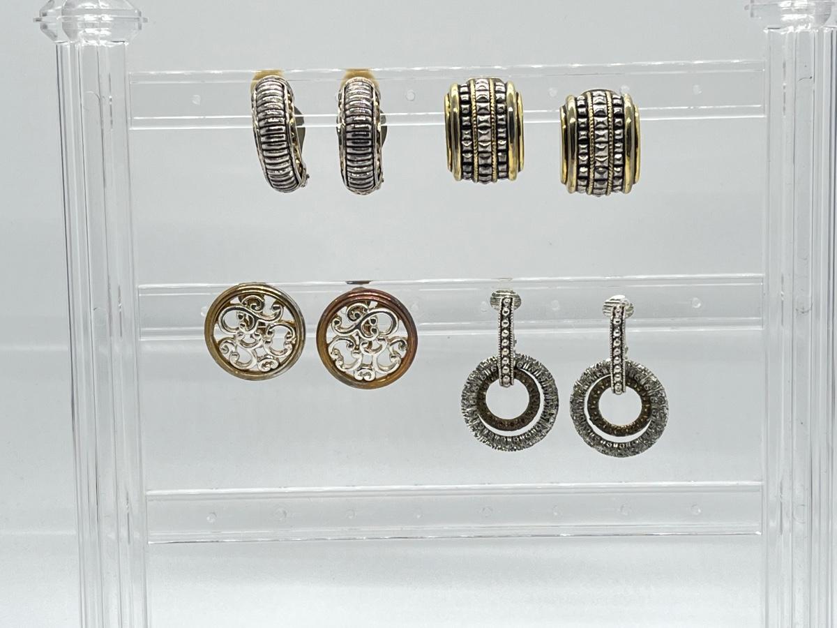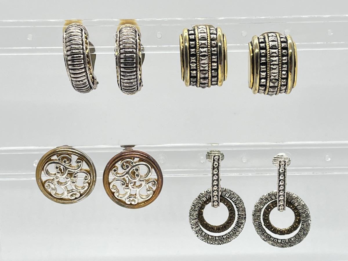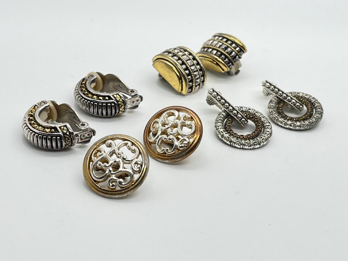 LOT 135: Four Pairs Clip-On Silvertone & Goldtone Costume Jewelry Earrings