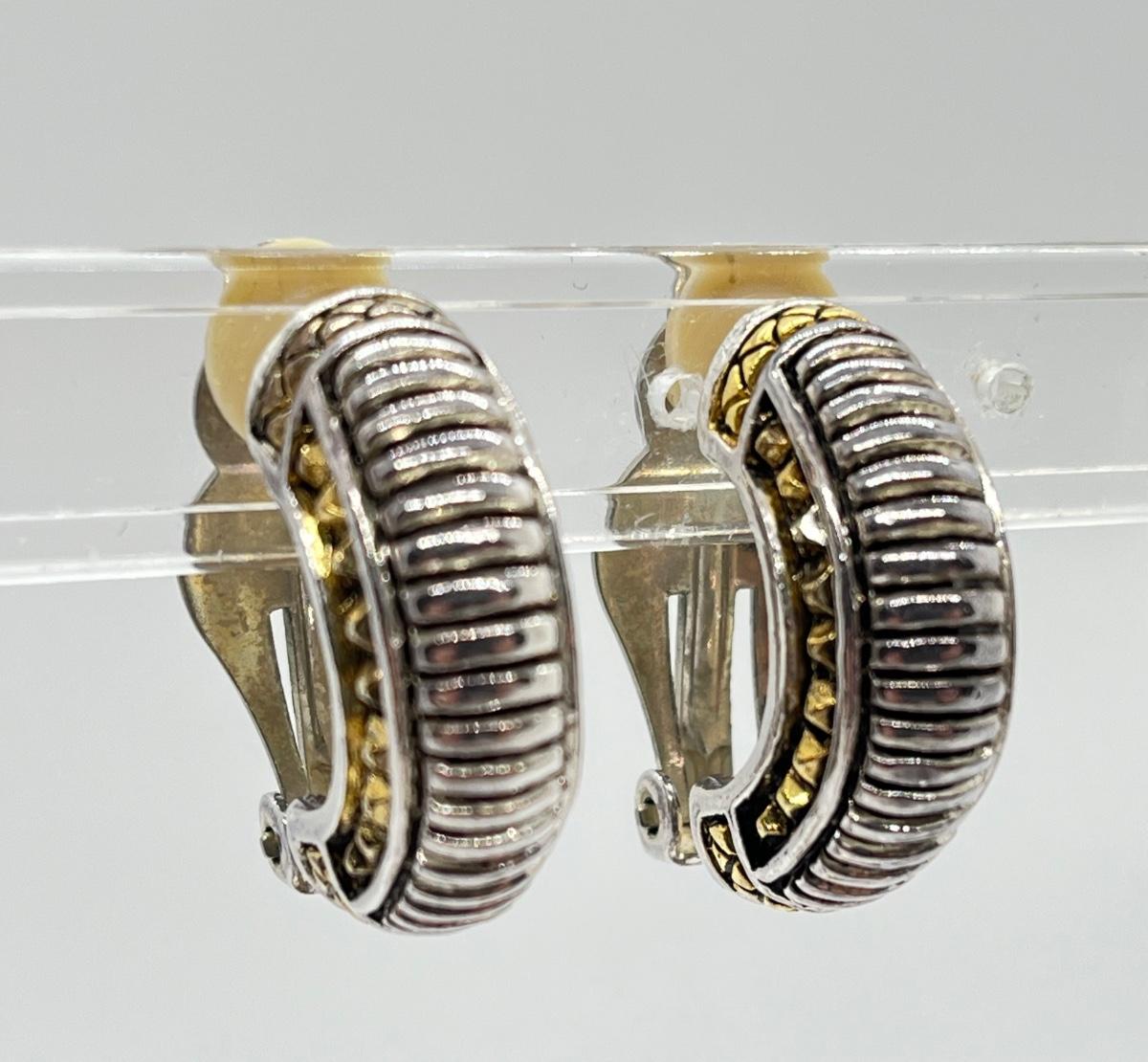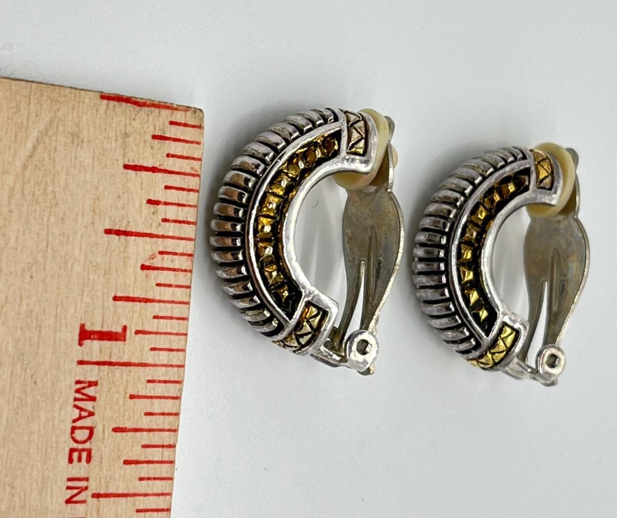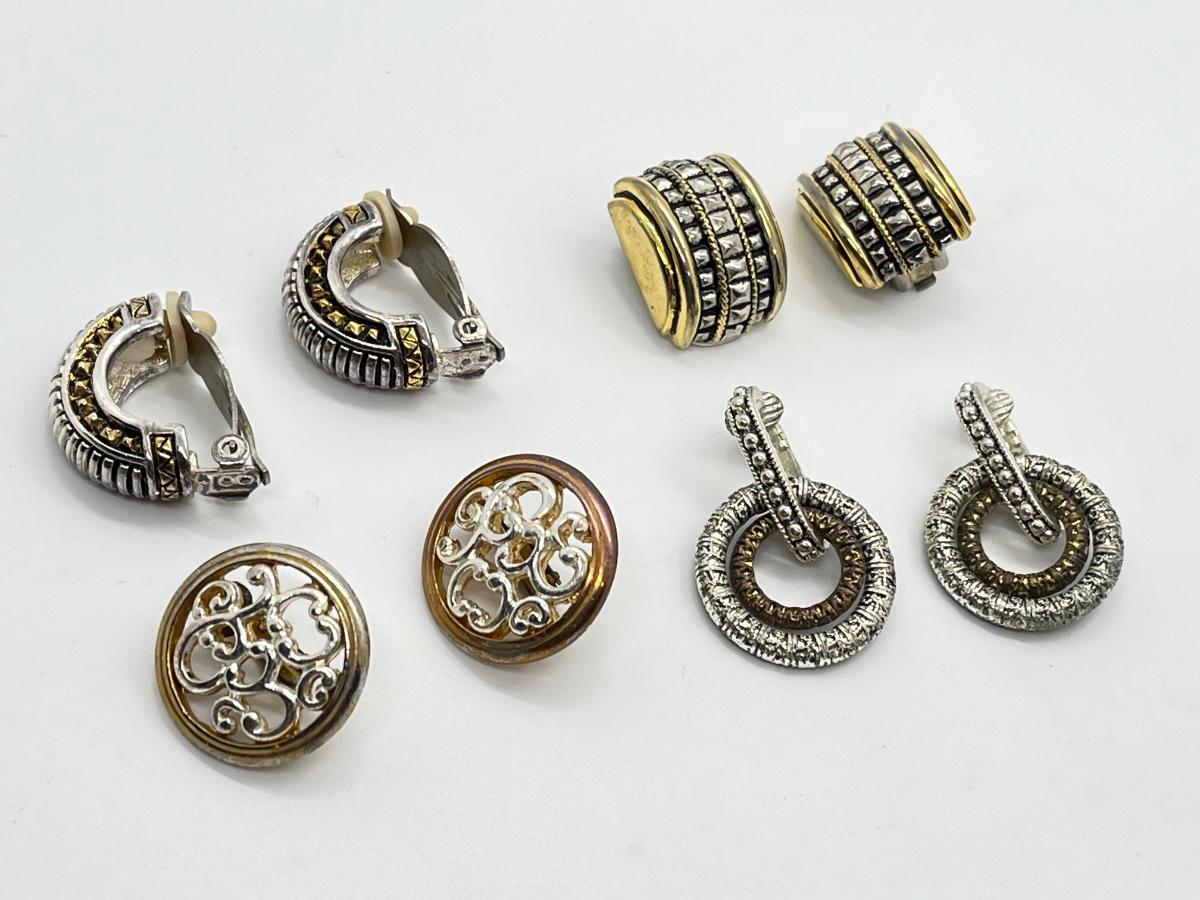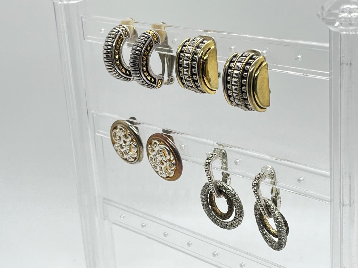 LOT 135: Four Pairs Clip-On Silvertone & Goldtone Costume Jewelry Earrings