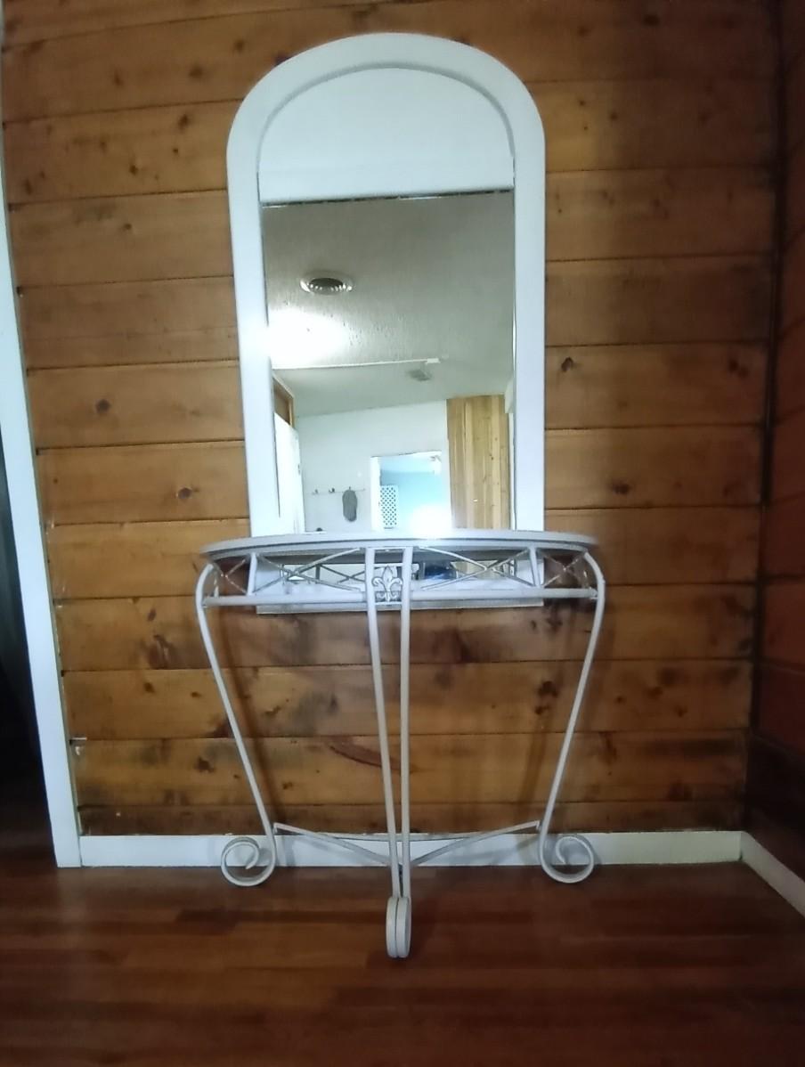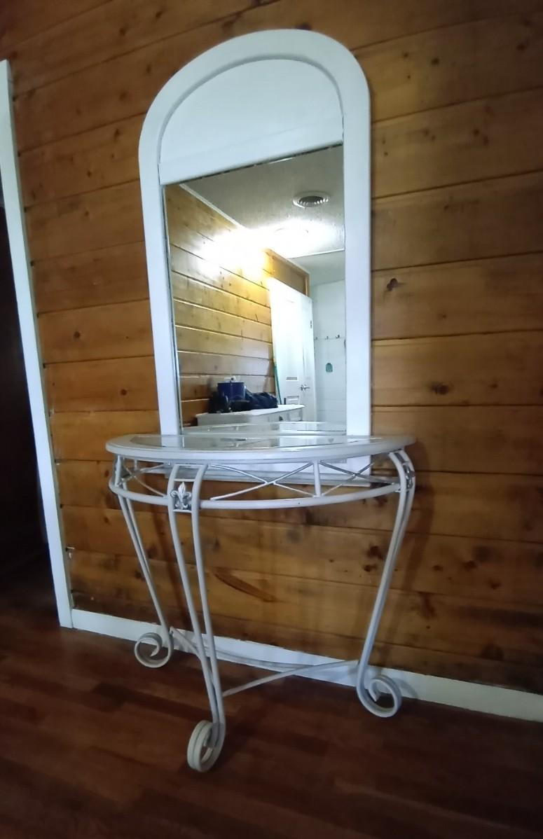 TABLE MEASURES APPROX. 36X13X30 AND MIRROR 48X23 CAN BE USED TOGETHER OR SEPARATELY
