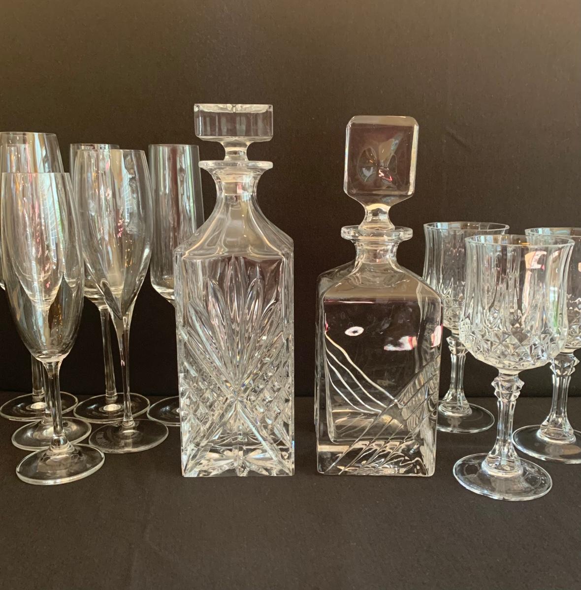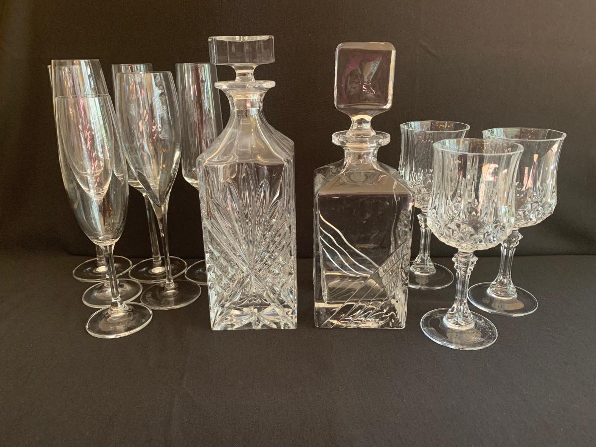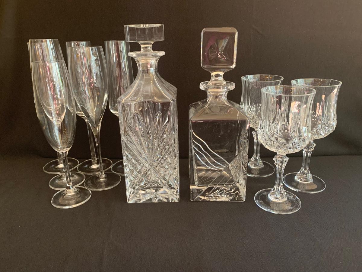 LOT 9R: Crystal Decanters, Champagne Flutes & More