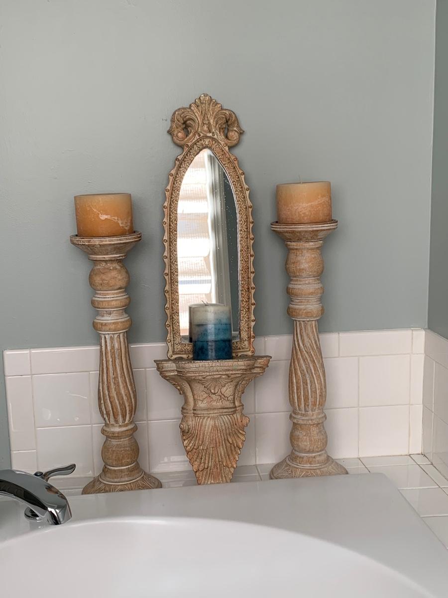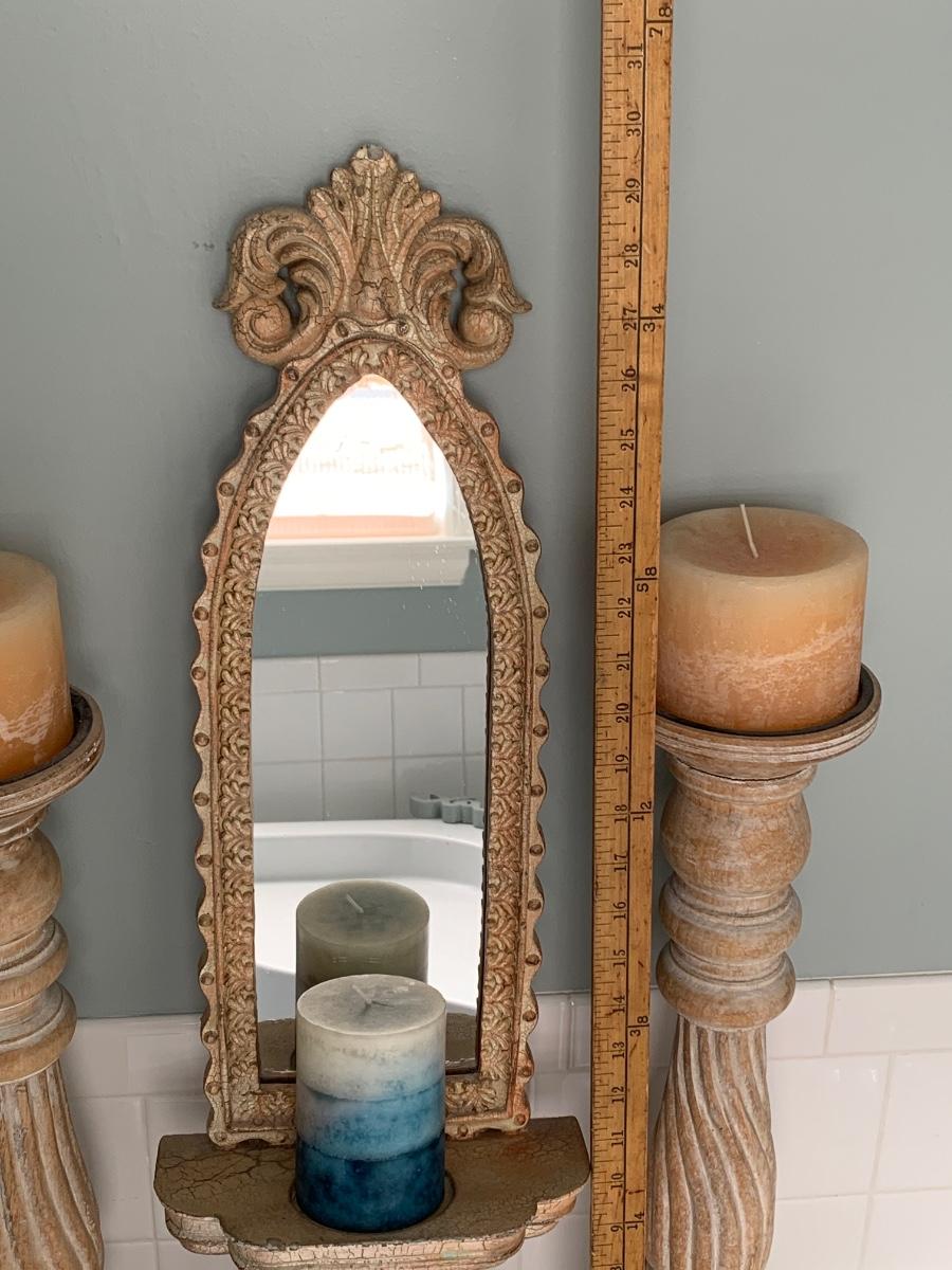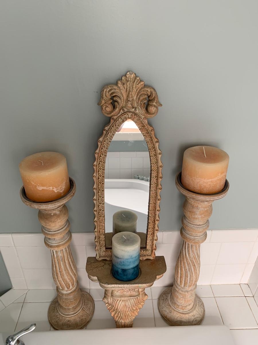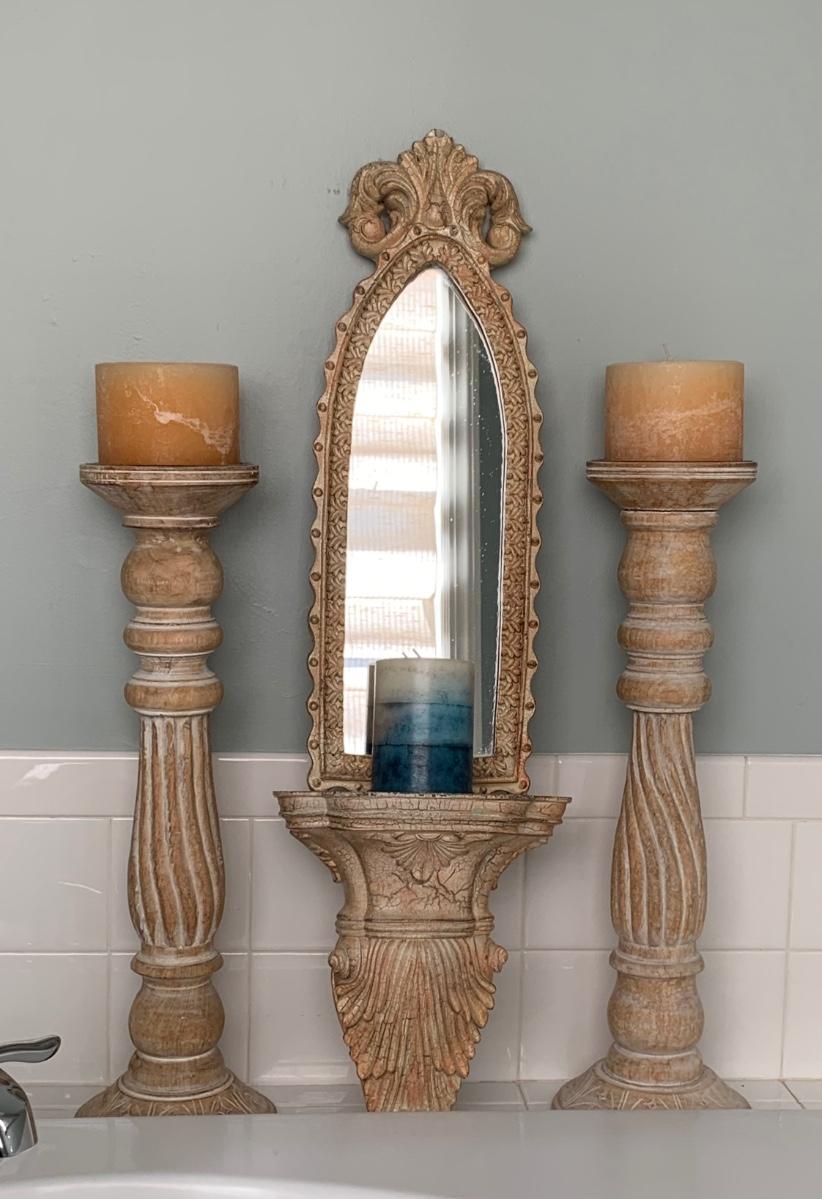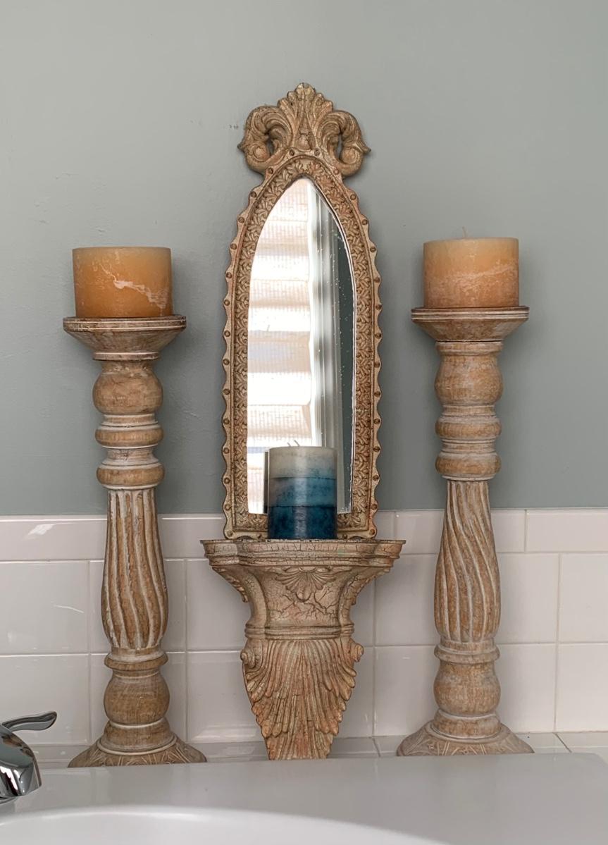LOT 17R: Large Wooden Candlesticks & Mirrored Wall Sconce