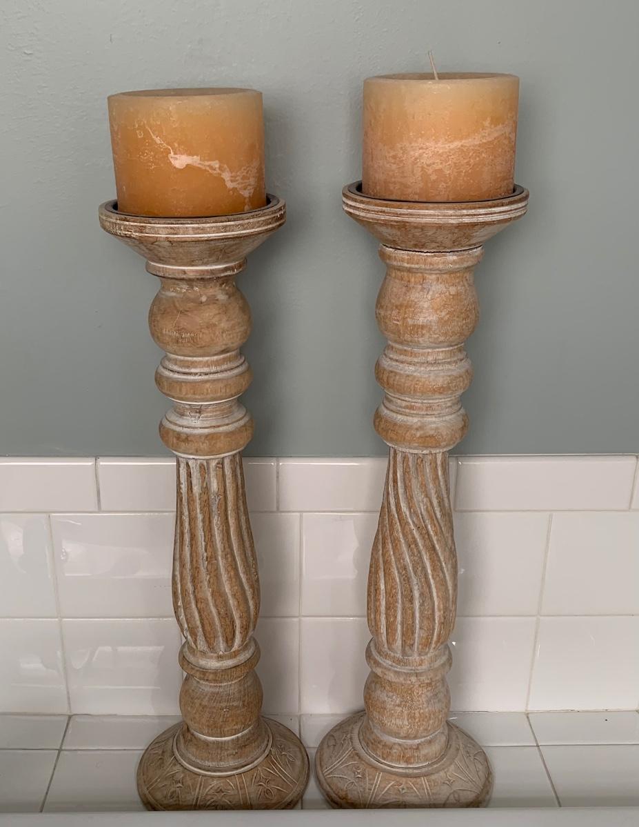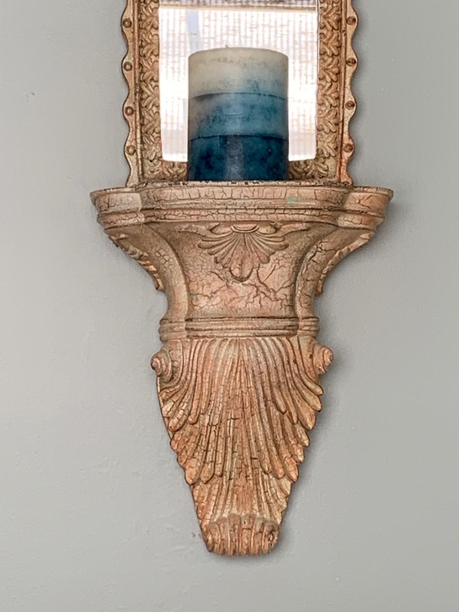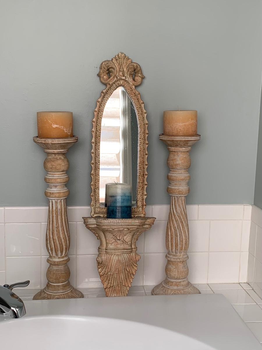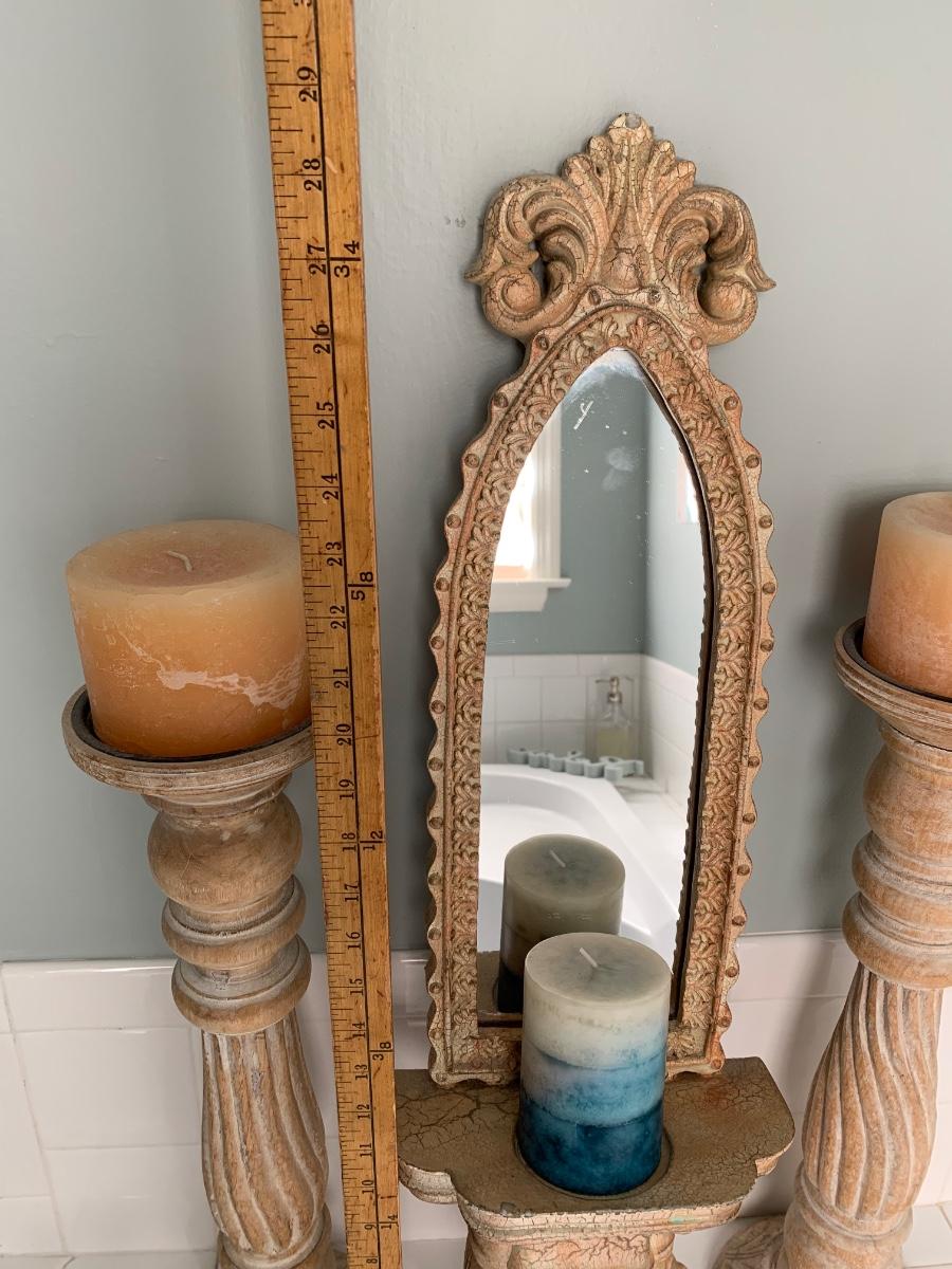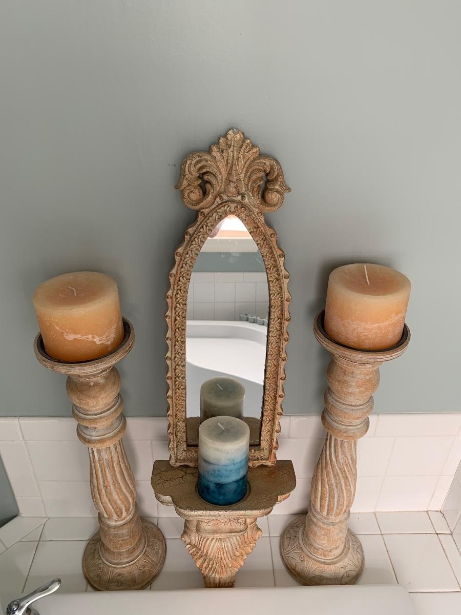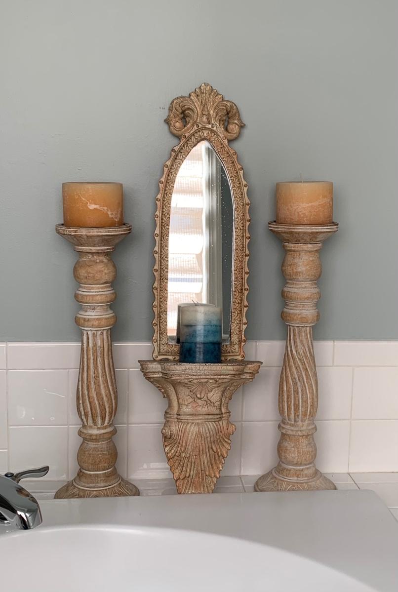 LOT 17R: Large Wooden Candlesticks & Mirrored Wall Sconce