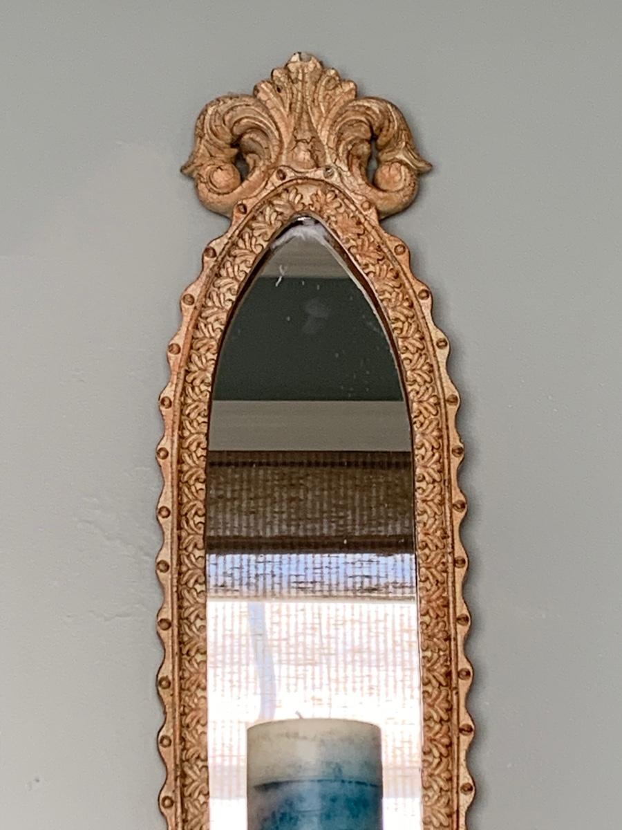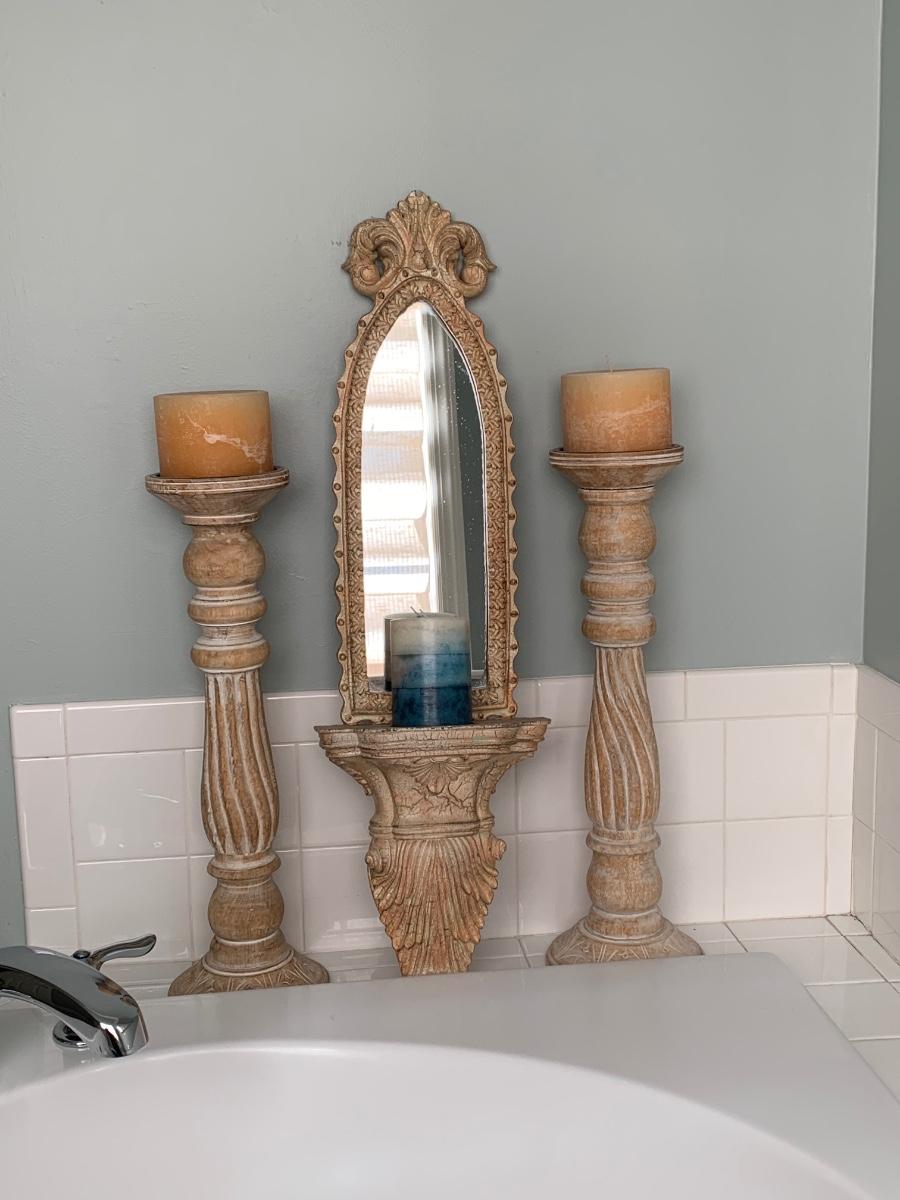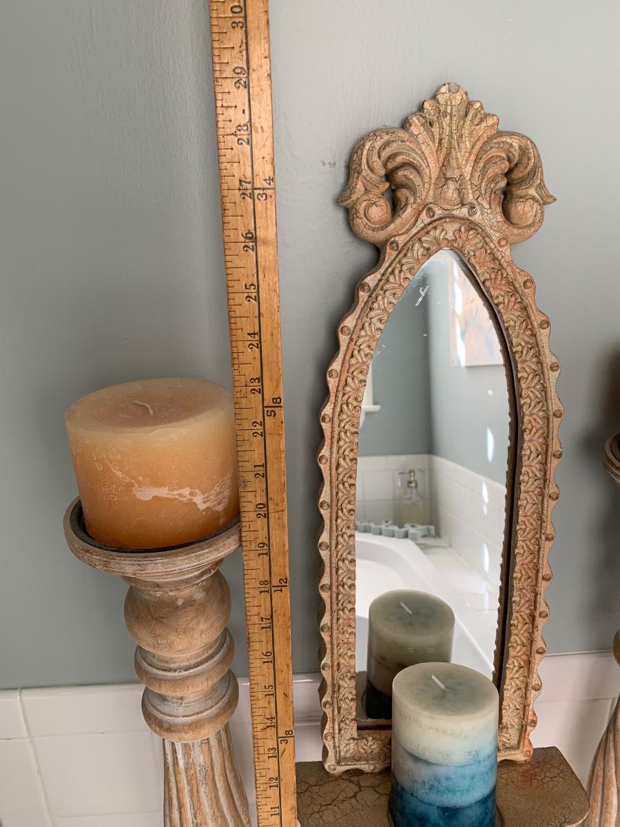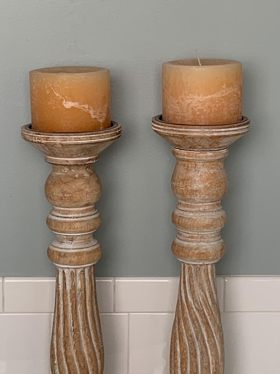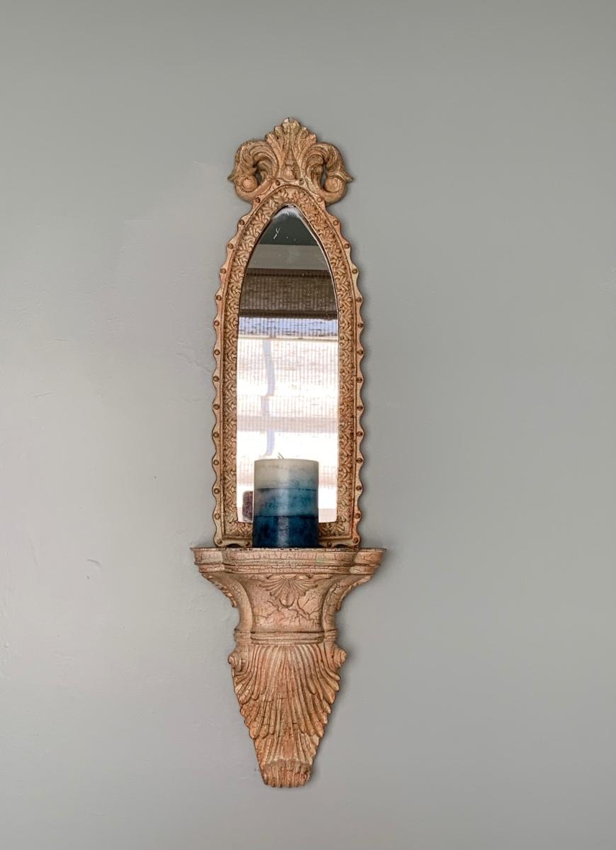 LOT 17R: Large Wooden Candlesticks & Mirrored Wall Sconce
