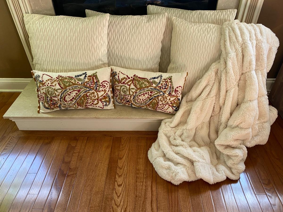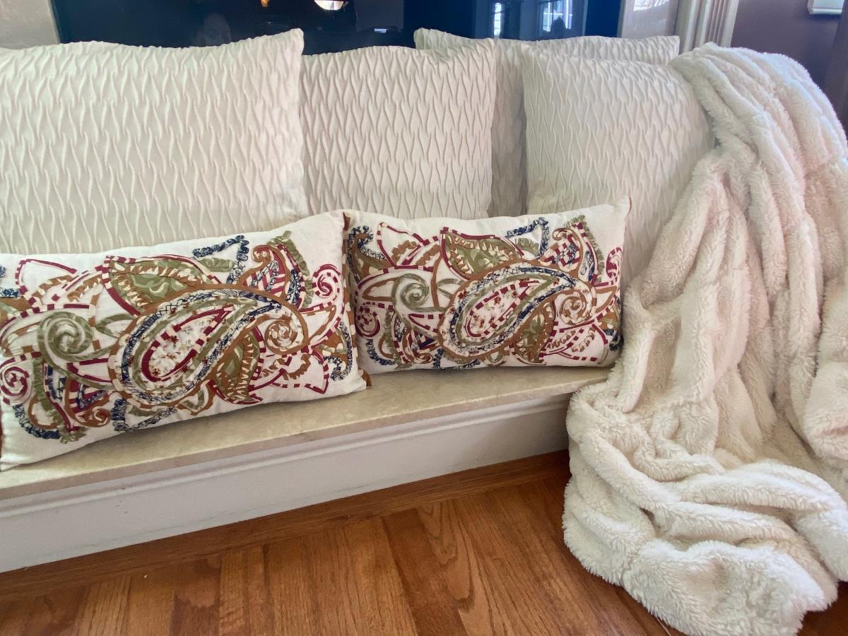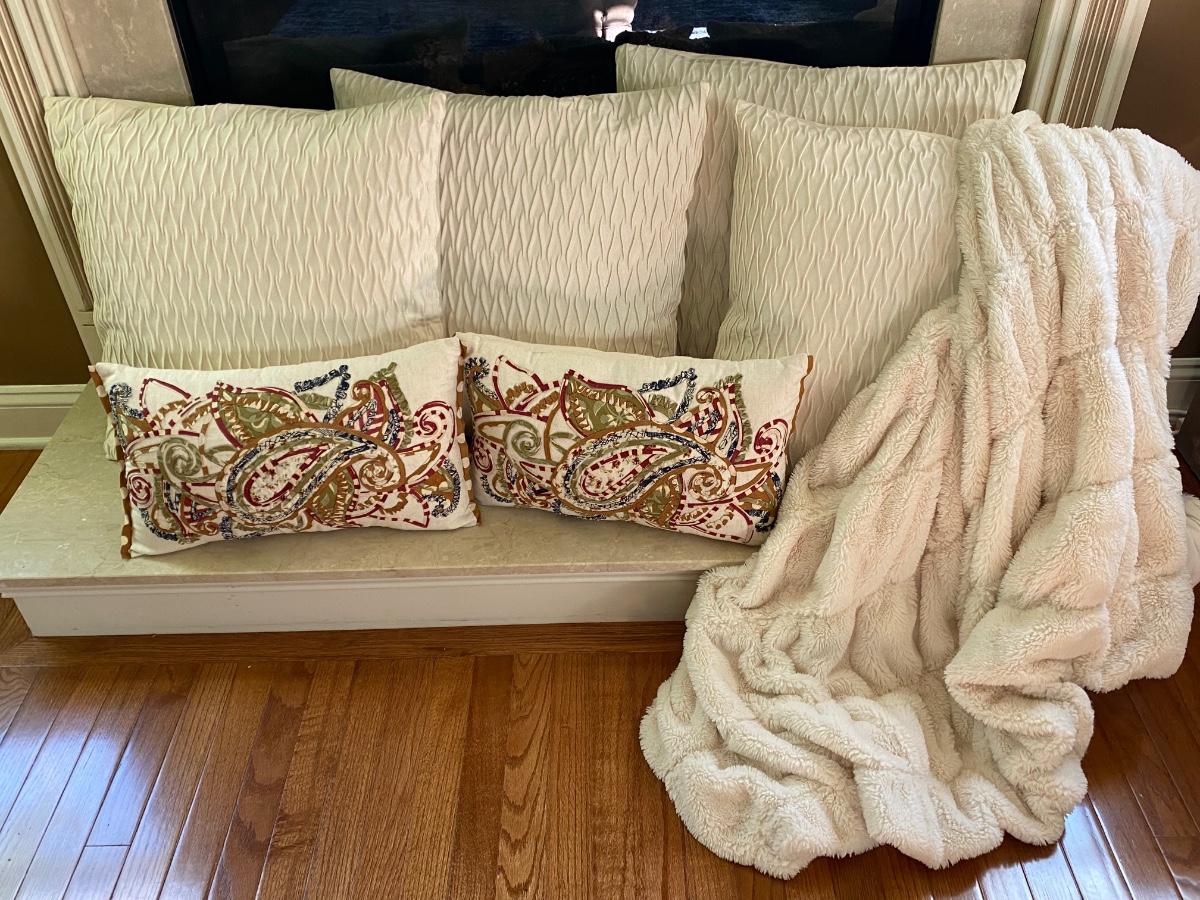 Lot includes Pier One Imports Blanket, 2 smaller pillows with paisley print are also by Pier One Imports. 4 large cream colored couch pillows. Please see all pictures as they are the best representation of the items. The pictures show condition, measurements if taken, and what is included in the lot. Due to the large amount that we photograph and the time frame, we are not always able to take measurements. All items unless noted, are pre-owned and have been used. If you purchased furniture, you must bring help. We do not allow one person to carry large furniture out on their own. Bring help, tools and a truck for the safety of our client’s homes, and your personal safety. Any damages that result to the property including walls, and floors due to moving of the furniture will be charged to the buyer. Company policy. Thank you.