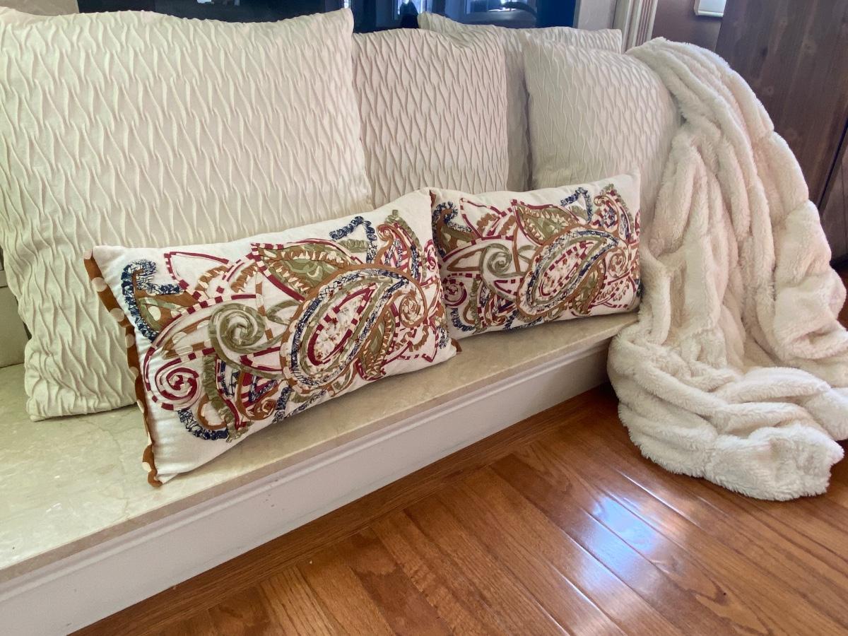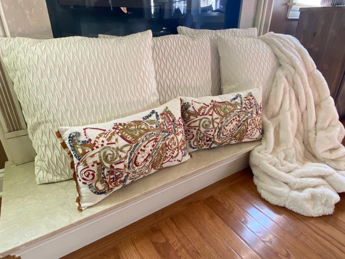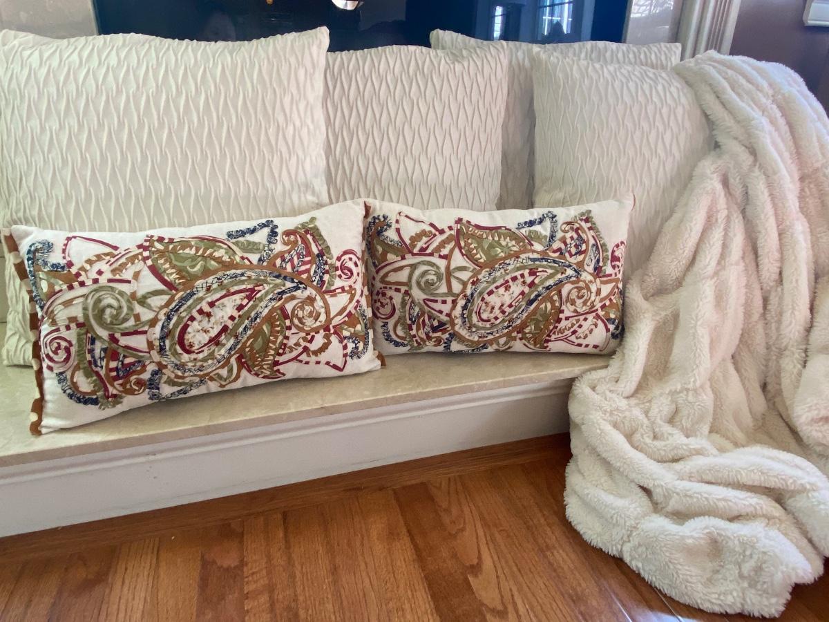 Lot includes Pier One Imports Blanket, 2 smaller pillows with paisley print are also by Pier One Imports. 4 large cream colored couch pillows. Please see all pictures as they are the best representation of the items. The pictures show condition, measurements if taken, and what is included in the lot. Due to the large amount that we photograph and the time frame, we are not always able to take measurements. All items unless noted, are pre-owned and have been used. If you purchased furniture, you must bring help. We do not allow one person to carry large furniture out on their own. Bring help, tools and a truck for the safety of our client’s homes, and your personal safety. Any damages that result to the property including walls, and floors due to moving of the furniture will be charged to the buyer. Company policy. Thank you.