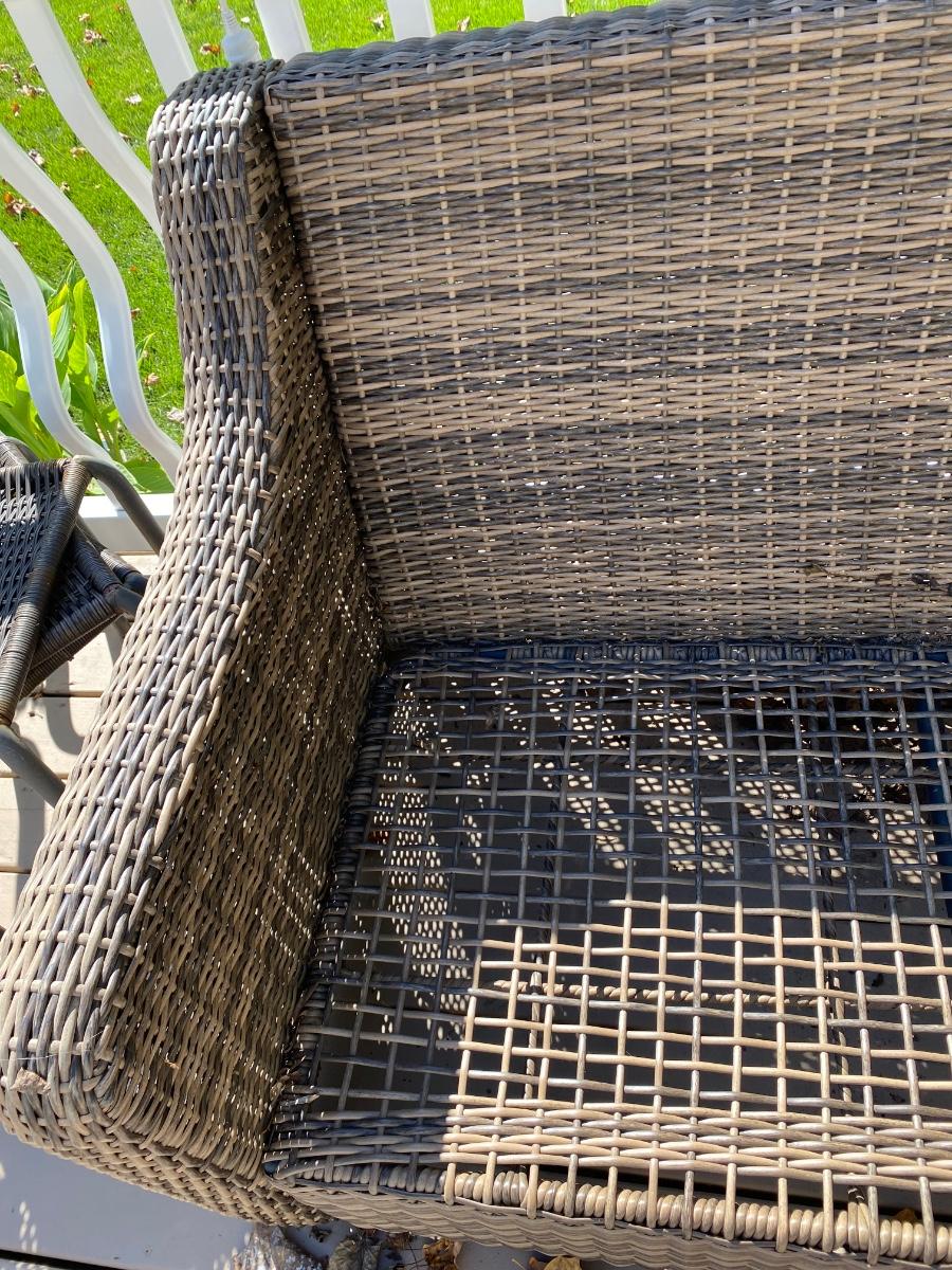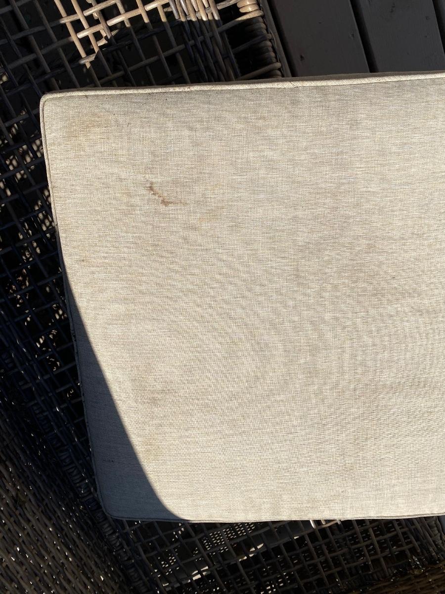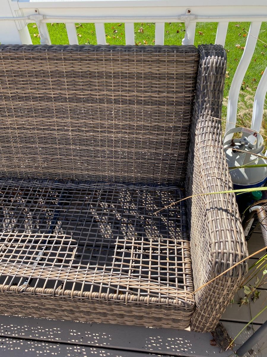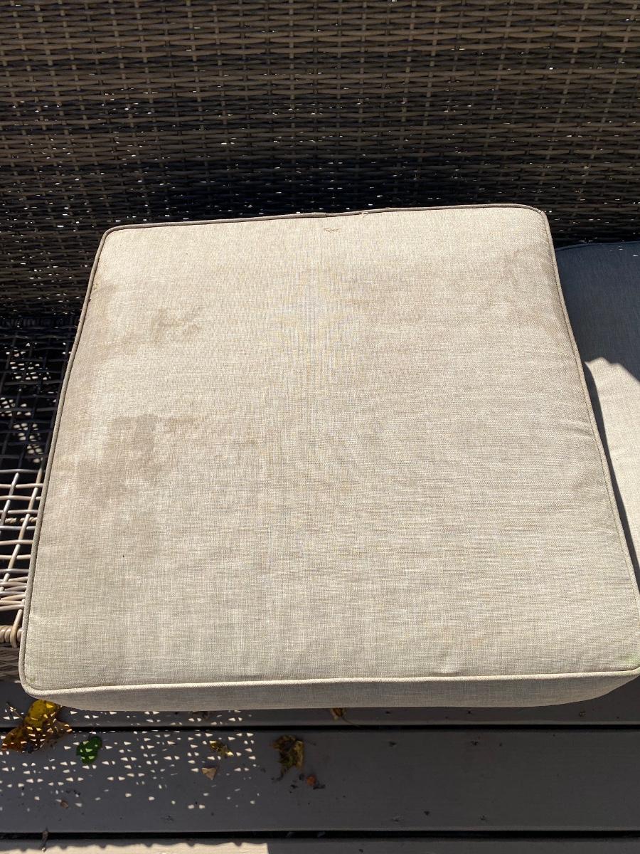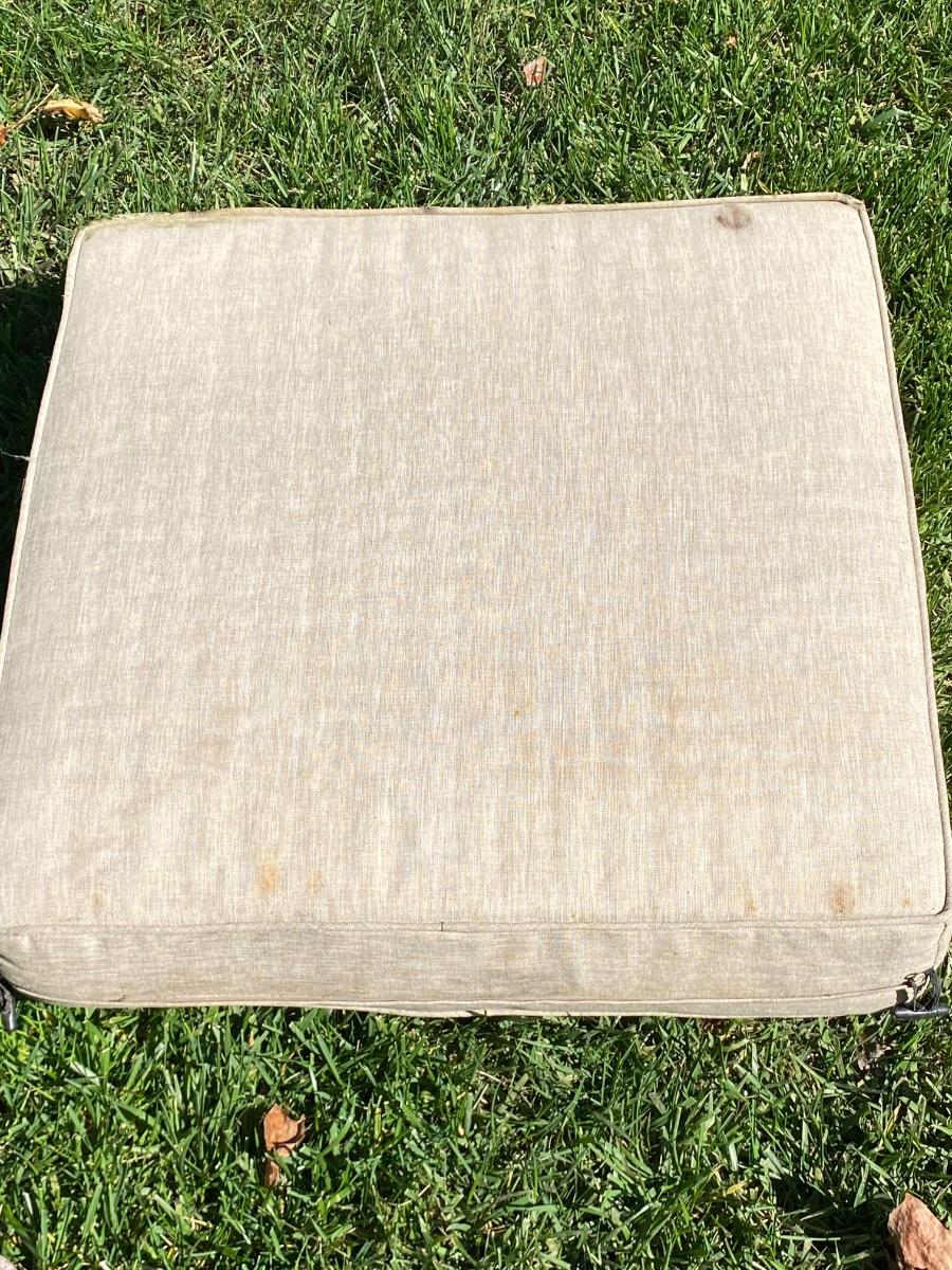 Outdoor couch is in used condition. Couch and cushions show sun damage. Please see all pictures as they are the best representation of the items. The pictures show condition, measurements if taken, and what is included in the lot. Due to the large amount that we photograph and the time frame, we are not always able to take measurements. All items unless noted, are pre-owned and have been used. If you purchased furniture, you must bring help. We do not allow one person to carry large furniture out on their own. Bring help, tools and a truck for the safety of our client’s homes, and your personal safety. Any damages that result to the property including walls, and floors due to moving of the furniture will be charged to the buyer. Company policy. Thank you.