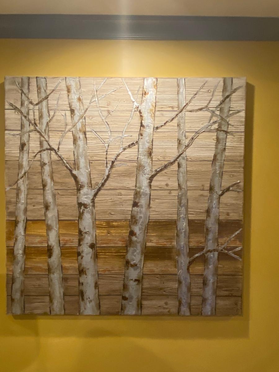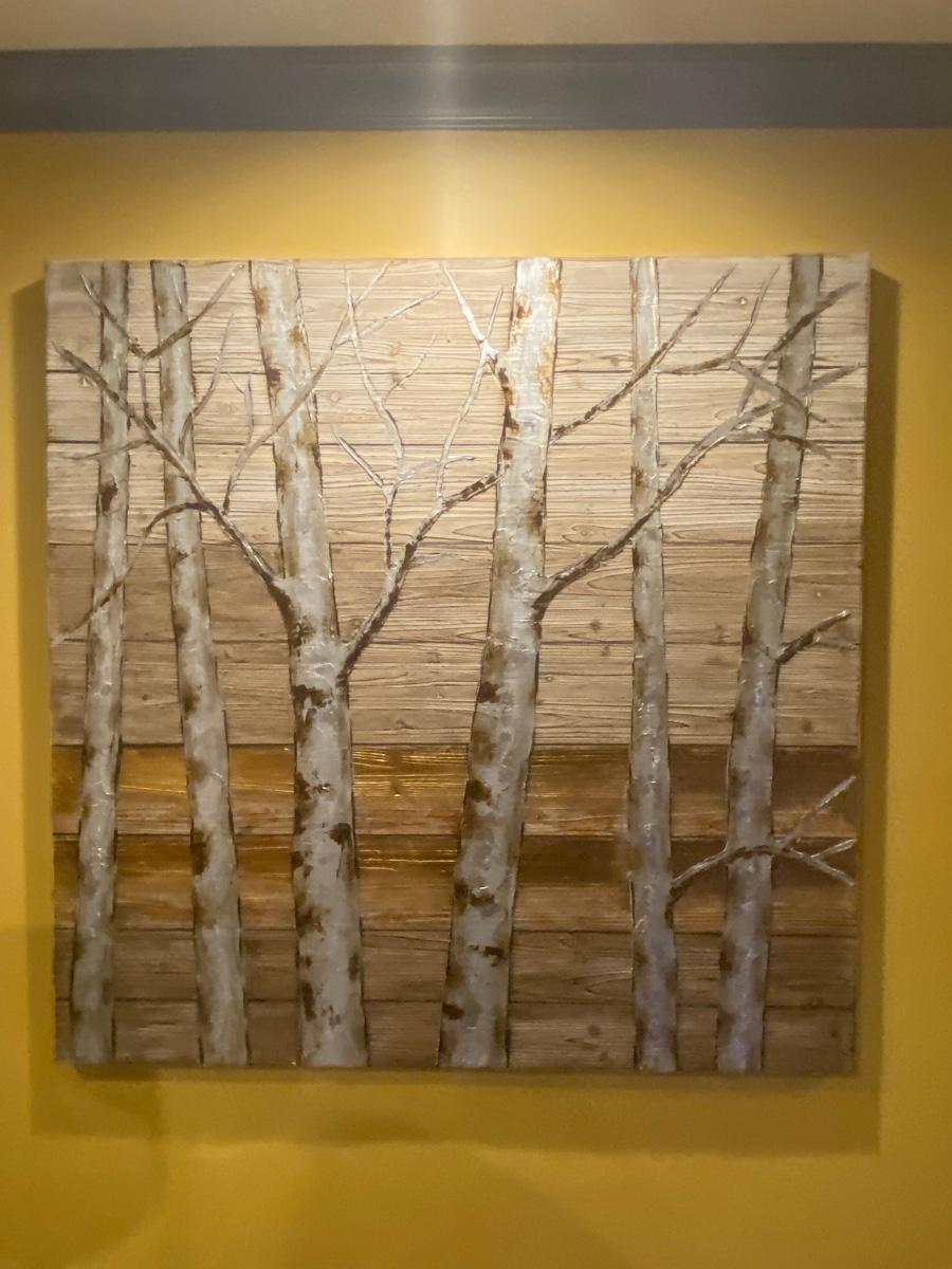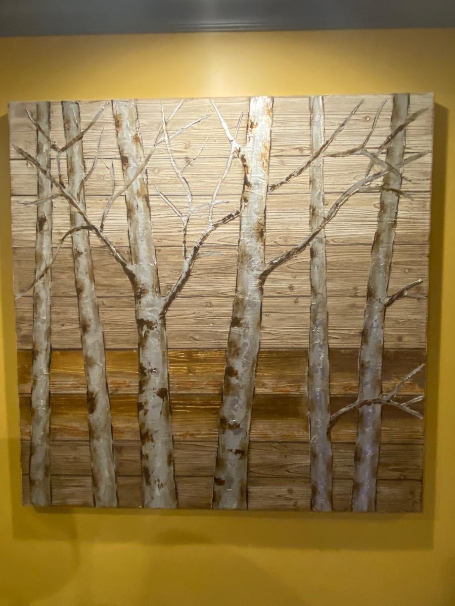 LOT 44C: Large Textured Goldtone Canvas: Birch Trees