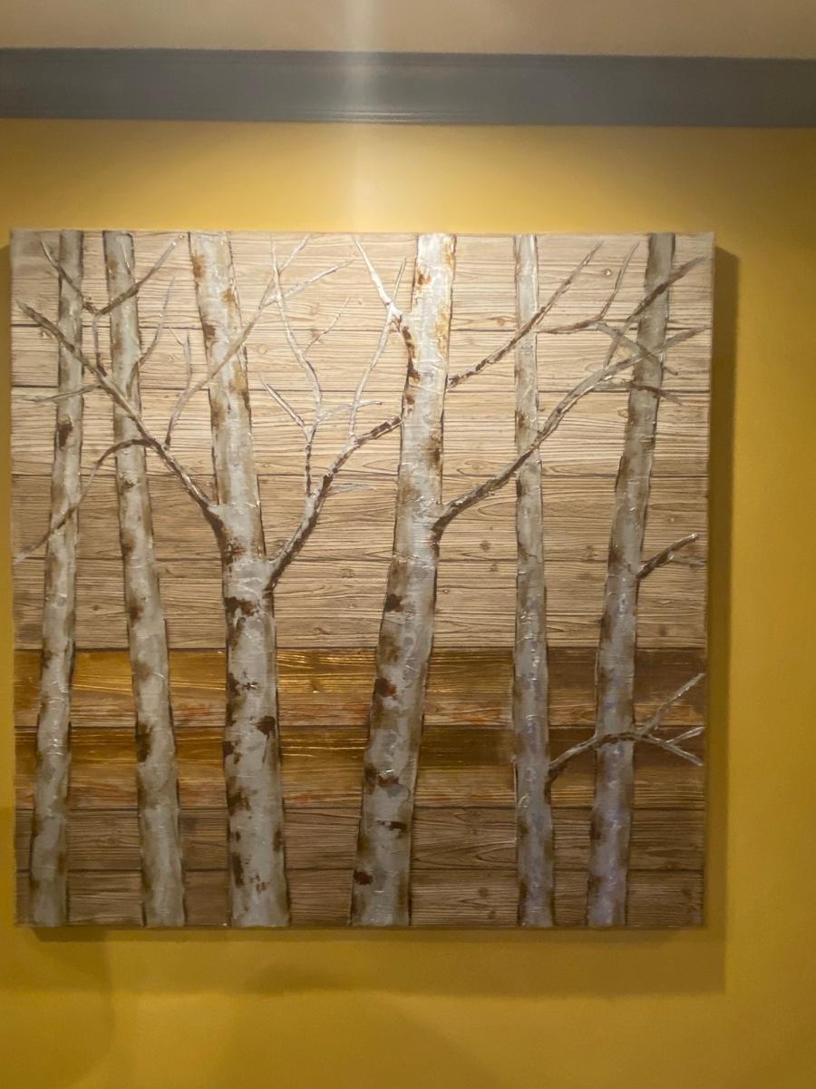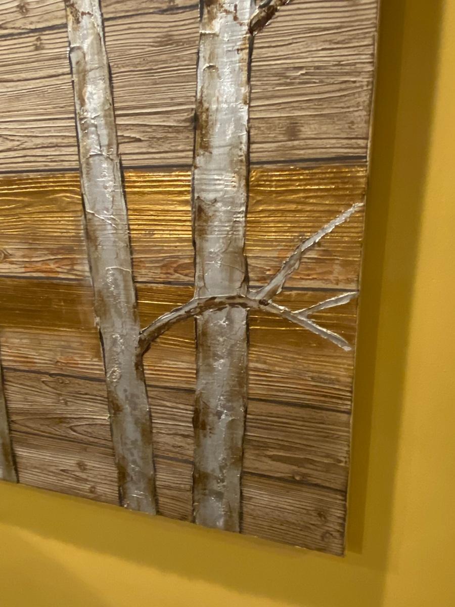LOT 44C: Large Textured  Goldtone Canvas: Birch Trees